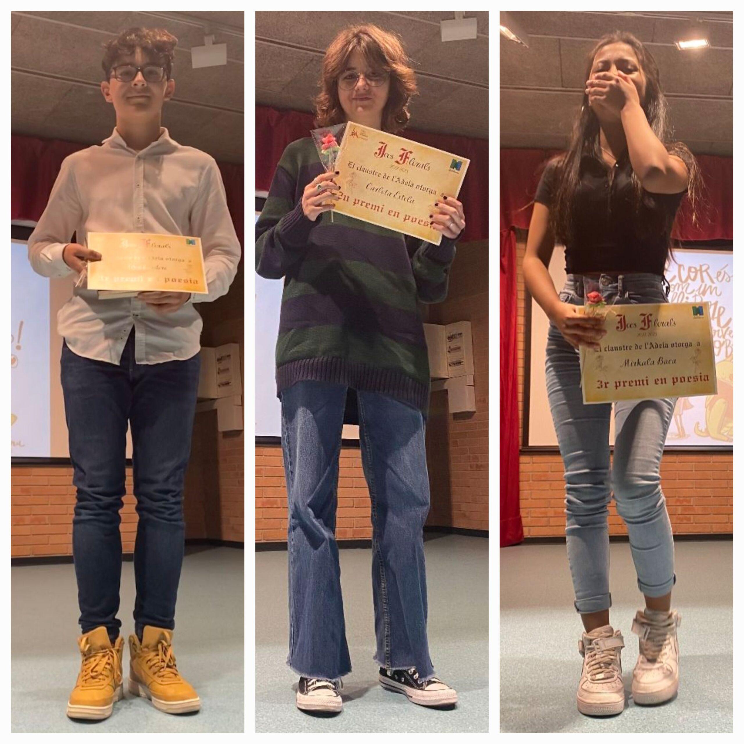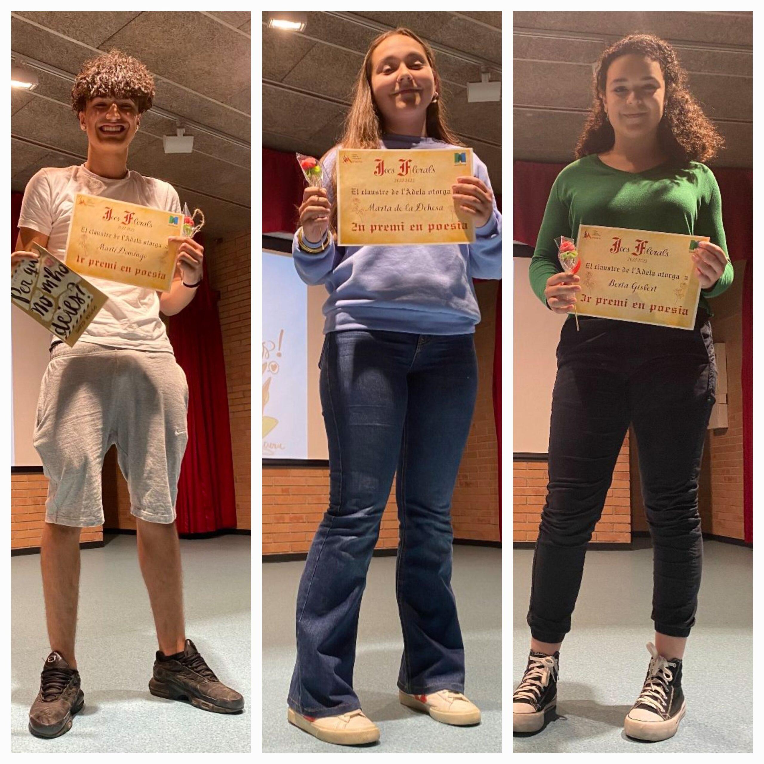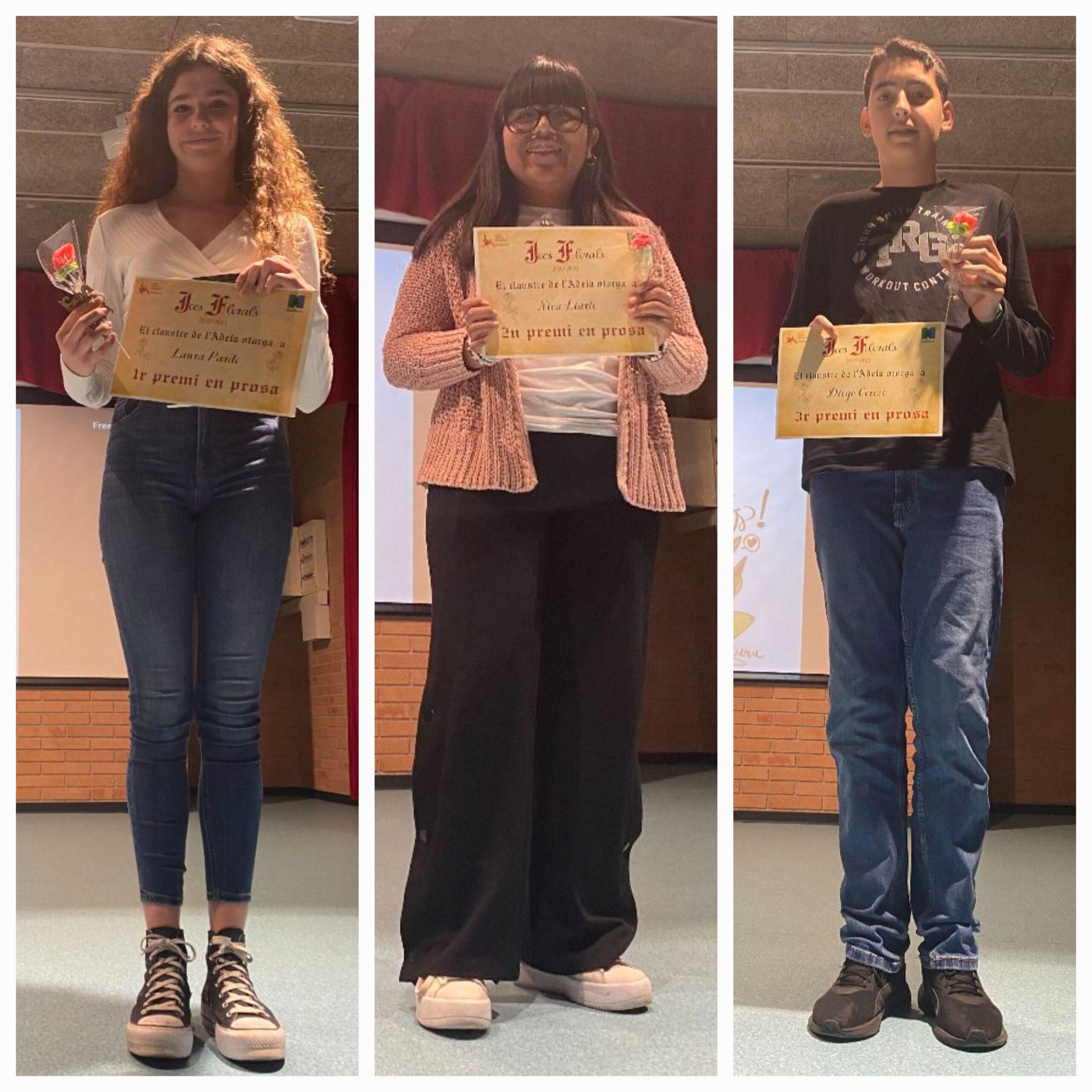 Els guanyadors i les guanyadores es van emportar un diploma i una rosa de llaminadura, feta pels companys i companyes de 4t d’ESO. A més, els primers van rebre també el tradicional llibre de Sant Jordi. Esperem que gaudeixin de la seva lectura!
