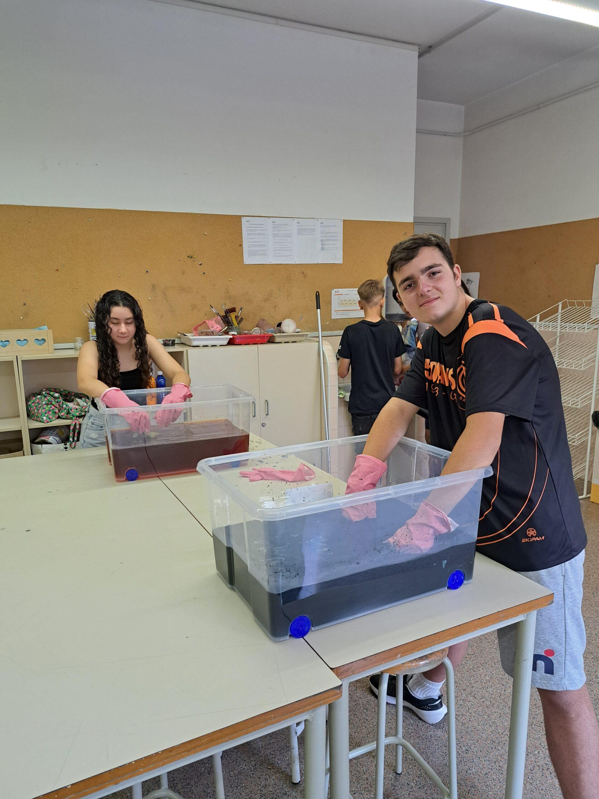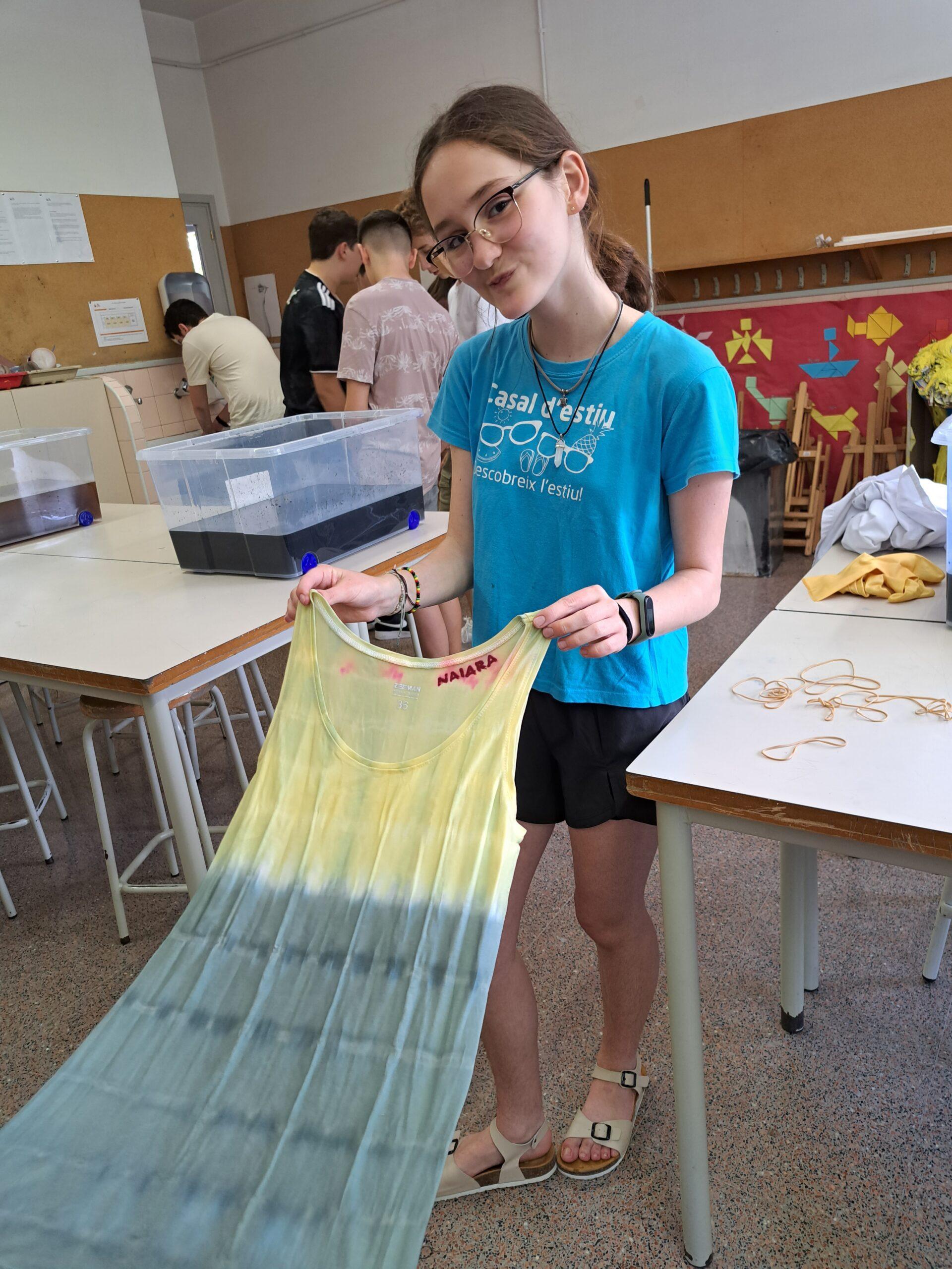 L’alumnat de 2n Eso va fer una activitat de tenyir samarretes dins el treball de síntesi.