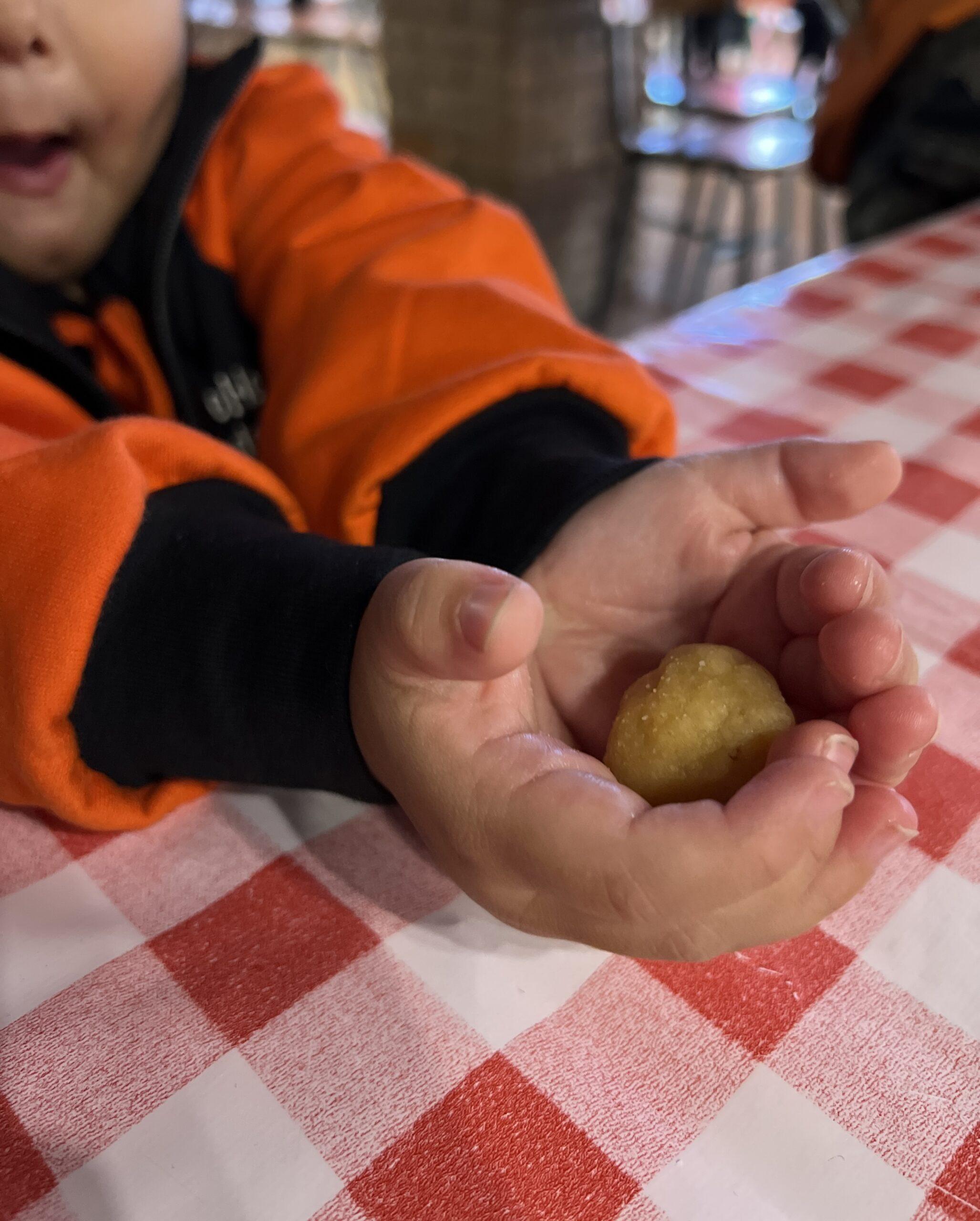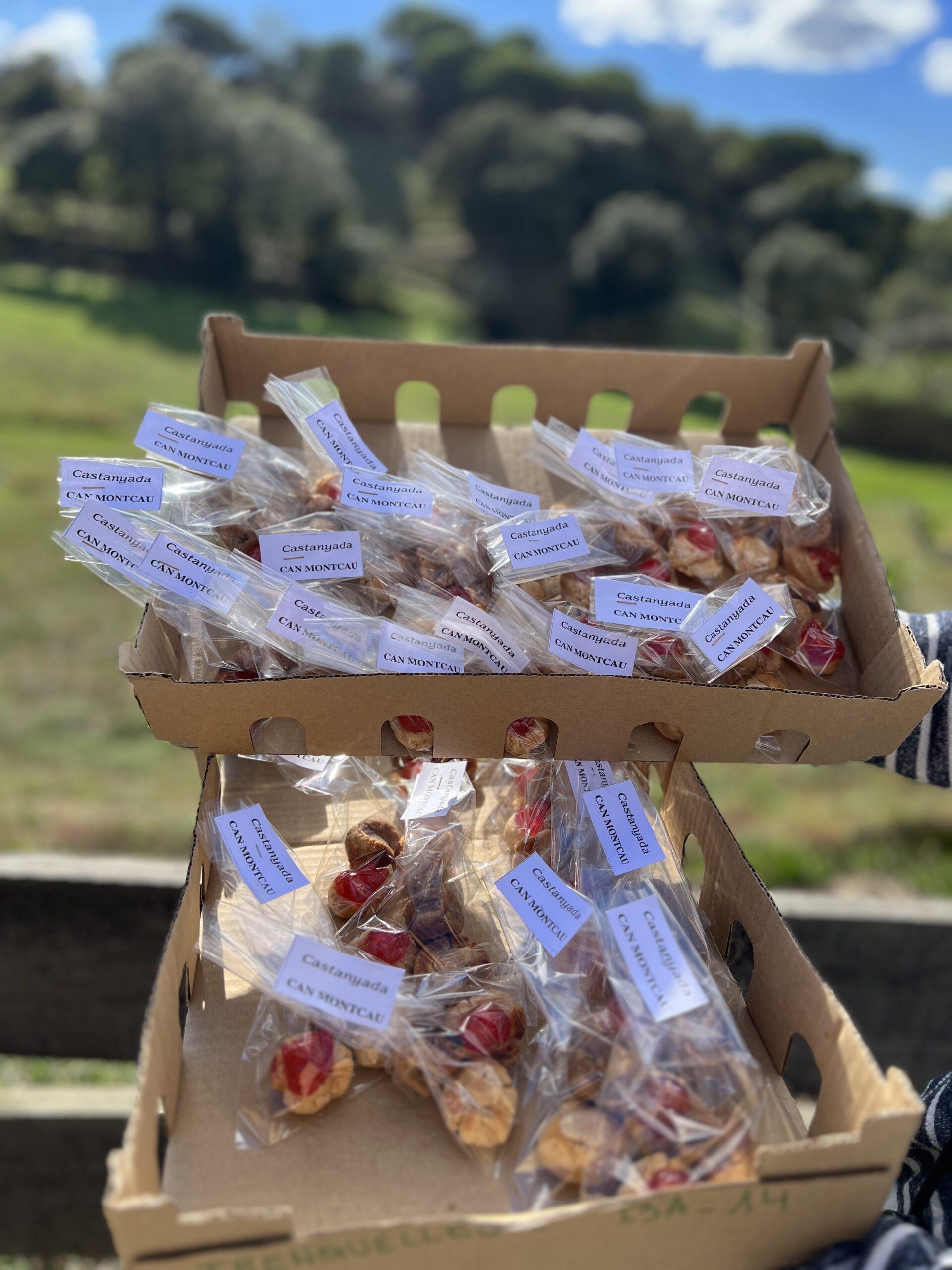 Finalment, de postres, els nens i les nenes es van poder menjar les castanyes que havien cuit amb la castanyera Maria i, a més, cada un d’ells es va poder endur una bossa amb els tres panellets que havien fet per menjar-se’ls a casa amb les seves famílies. Quin dia més bonic i dolç que vam passar!