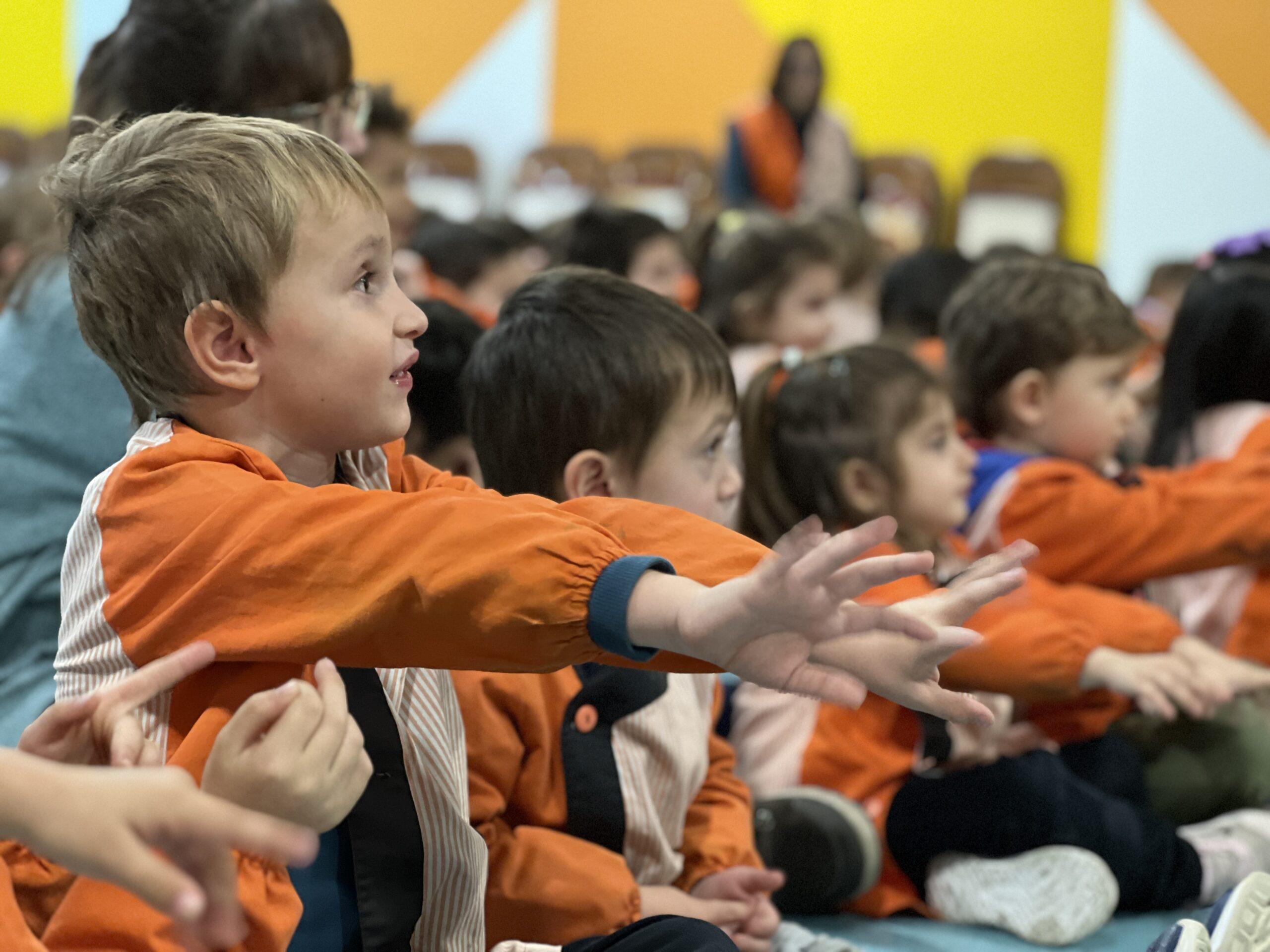 Que millor que acabar el trimestre fent volar la imaginació compartint amb els companys i companyes! Això és el que hem fet els infants d’Educació Infantil el matí del 19 de desembre gaudint i participant de l’espectacle de la companyia “Vivim del cuentu”. Amb la col·laboració dels personatges de La Caputxeta vermella, La princesa i el pèsol, En Patufet i Pinotxo, hem cantat i ballat ajudant l’Estel de Nadal a brillar ben fort per guiar cap a Betlem els tres Reis d’Orient. De segur que l’alegria i l’entusiasme que han posat tots els nens i nenes d’EI 3, EI 4 i EI 5 ha servit perquè els Tres Reis hi puguin arribar sense cap temor a perdre’s i, també tots els qui, com ells, estem disposats a posar-nos en camí amb la gran il·lusió de trobar Jesús nat.
