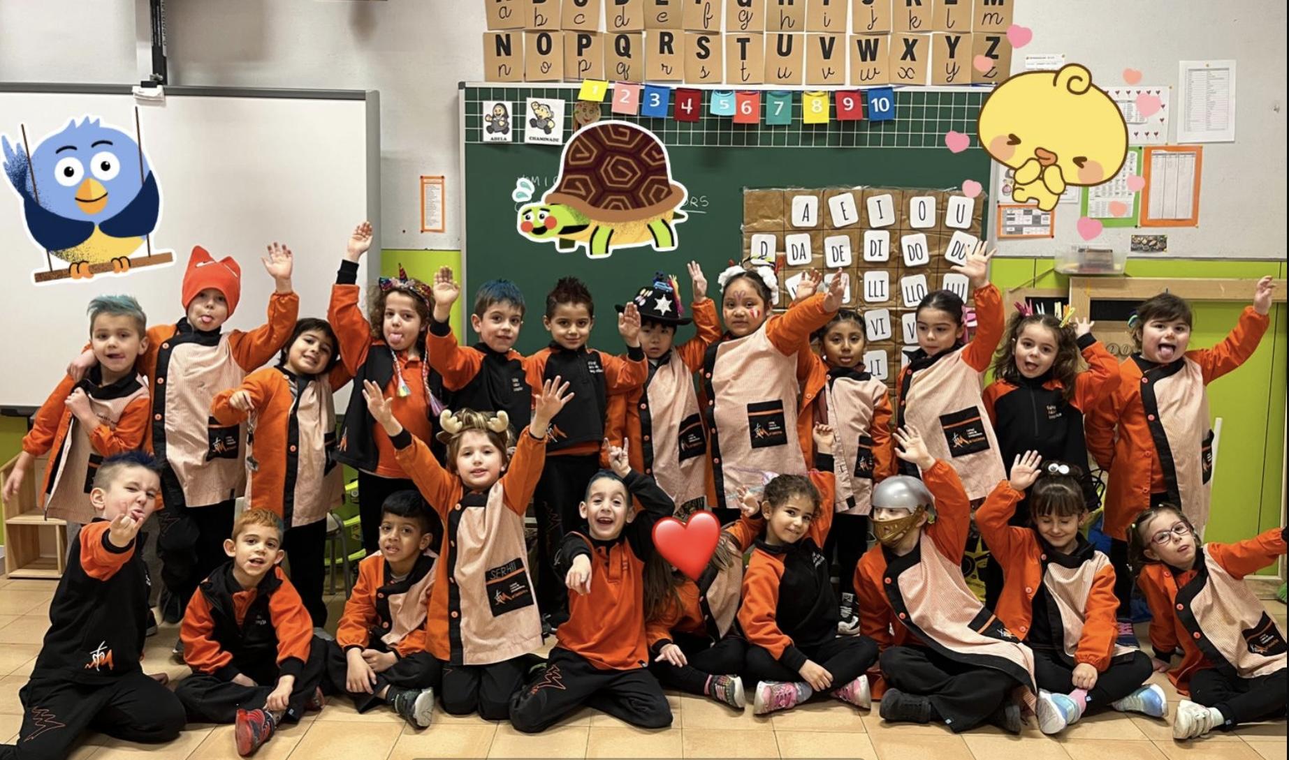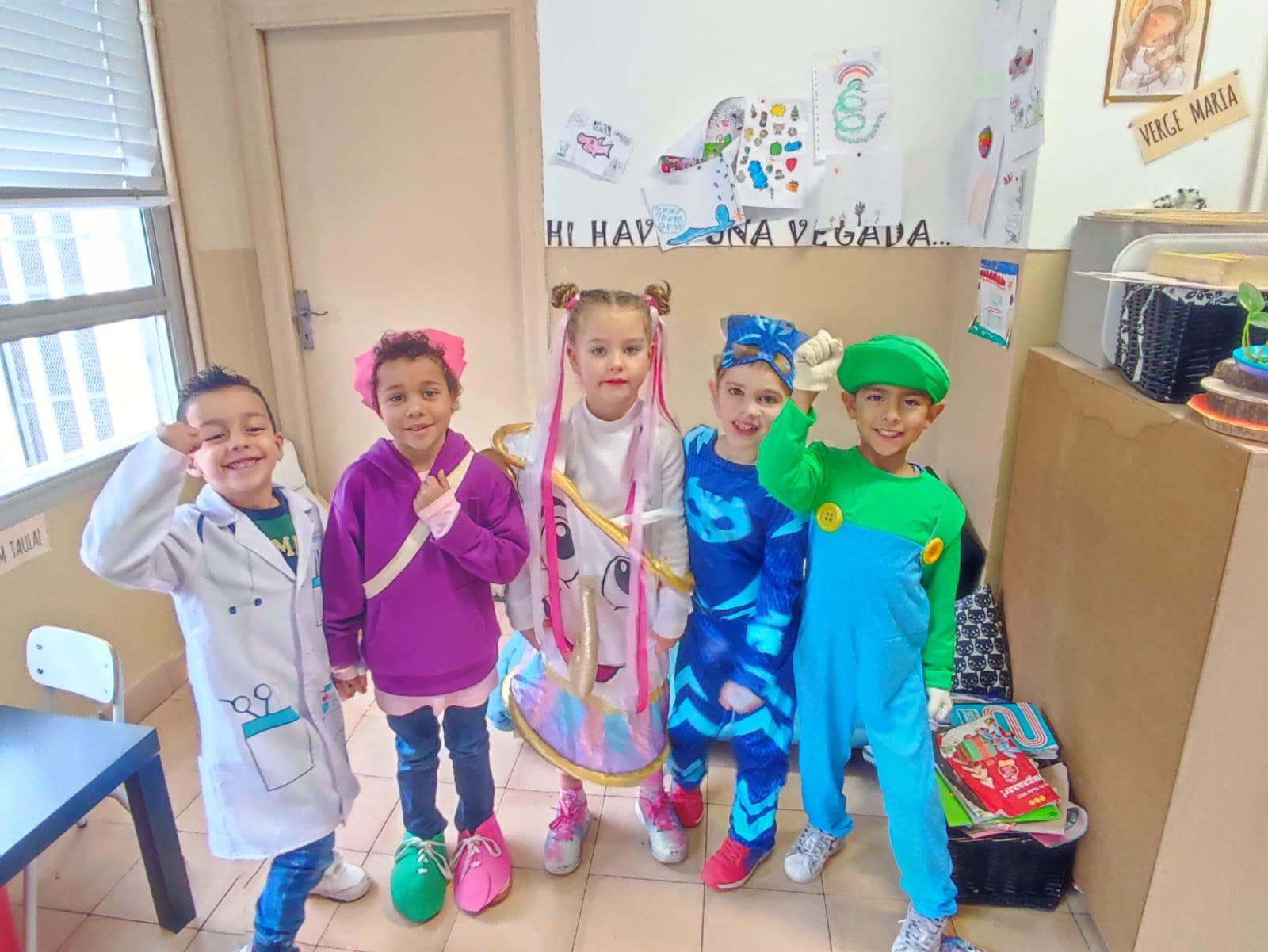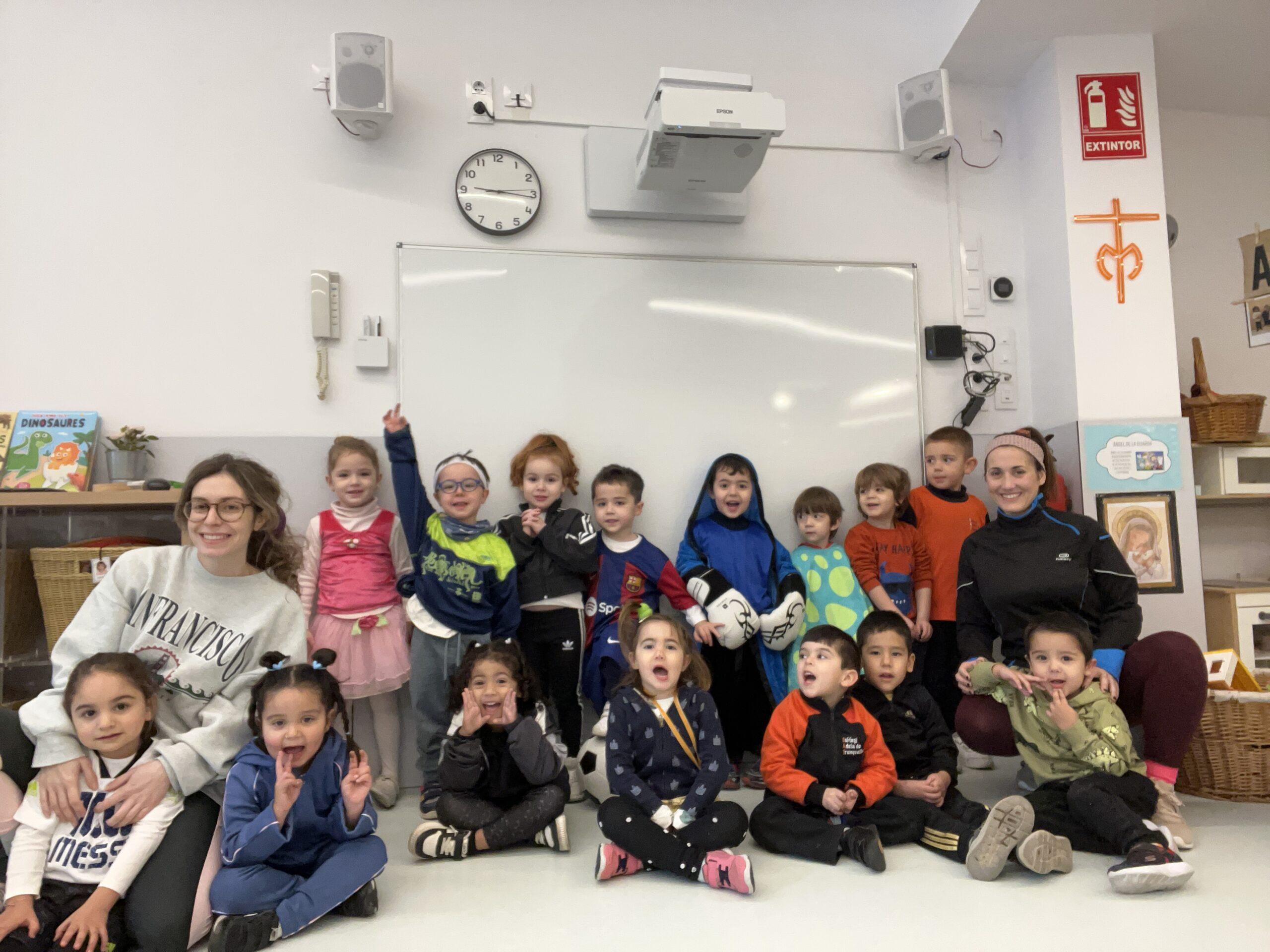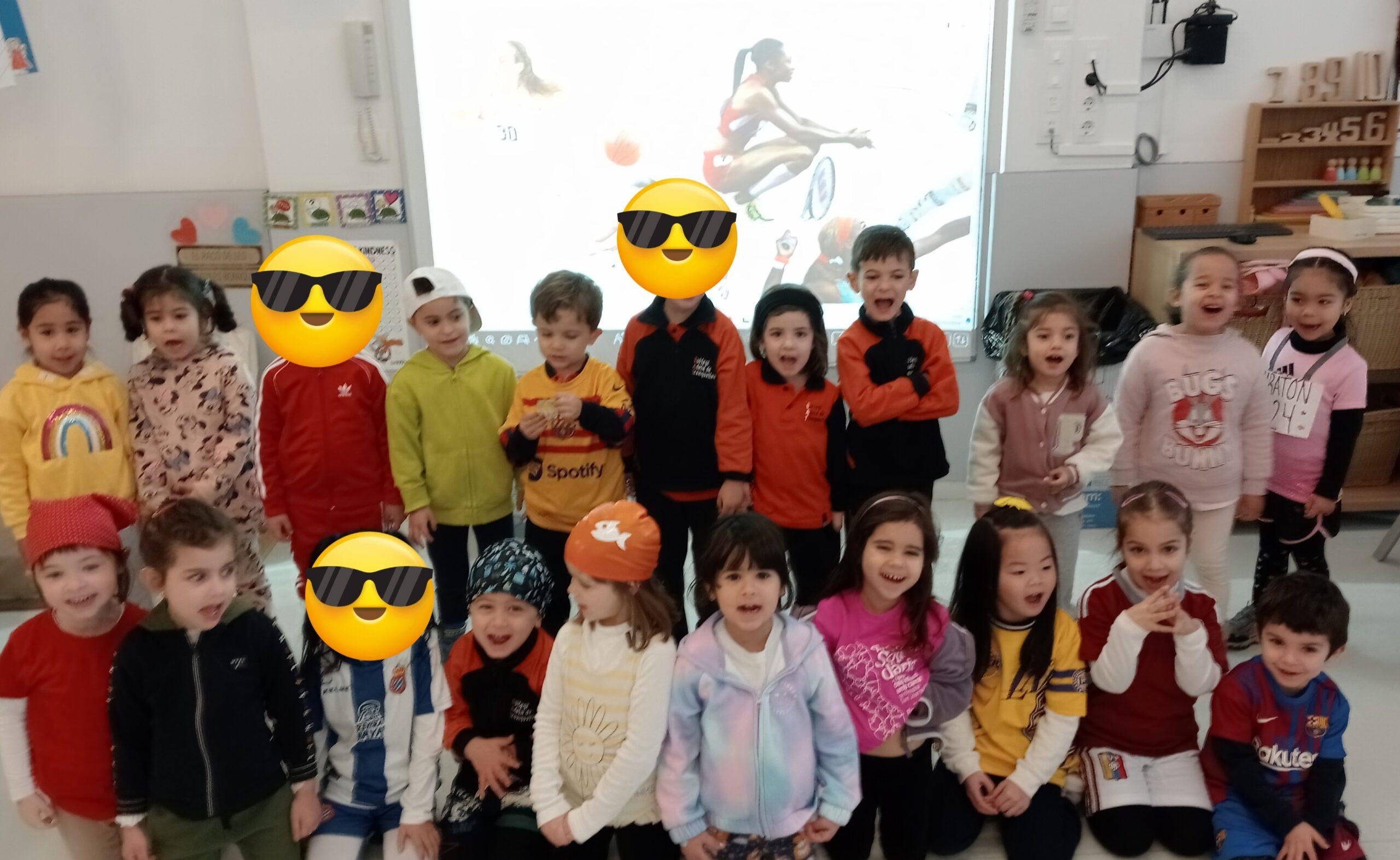 Durant tota la setmana de Carnaval, el Rei Carnestoltes va manar que cada dia de la setmana els infants i els i les docents de l’escola havíem d’anar amb una consigna diferent. Els dilluns vam haver de venir amb pijama i… quina son teníem durant tot el dia! L’endemà, el dimarts, vam portar un cap ben esbojarrat i n’hi va haver de molt originals i bonics. El dimecres vam venir vestits d’esport o amb alguna equipació que ens agradés molt i, de fet, vam tenir esports de tota mena: atletisme, boxa o natació, entre d’altres. El dijous tots i totes vam haver de venir vestits d’un sol color.