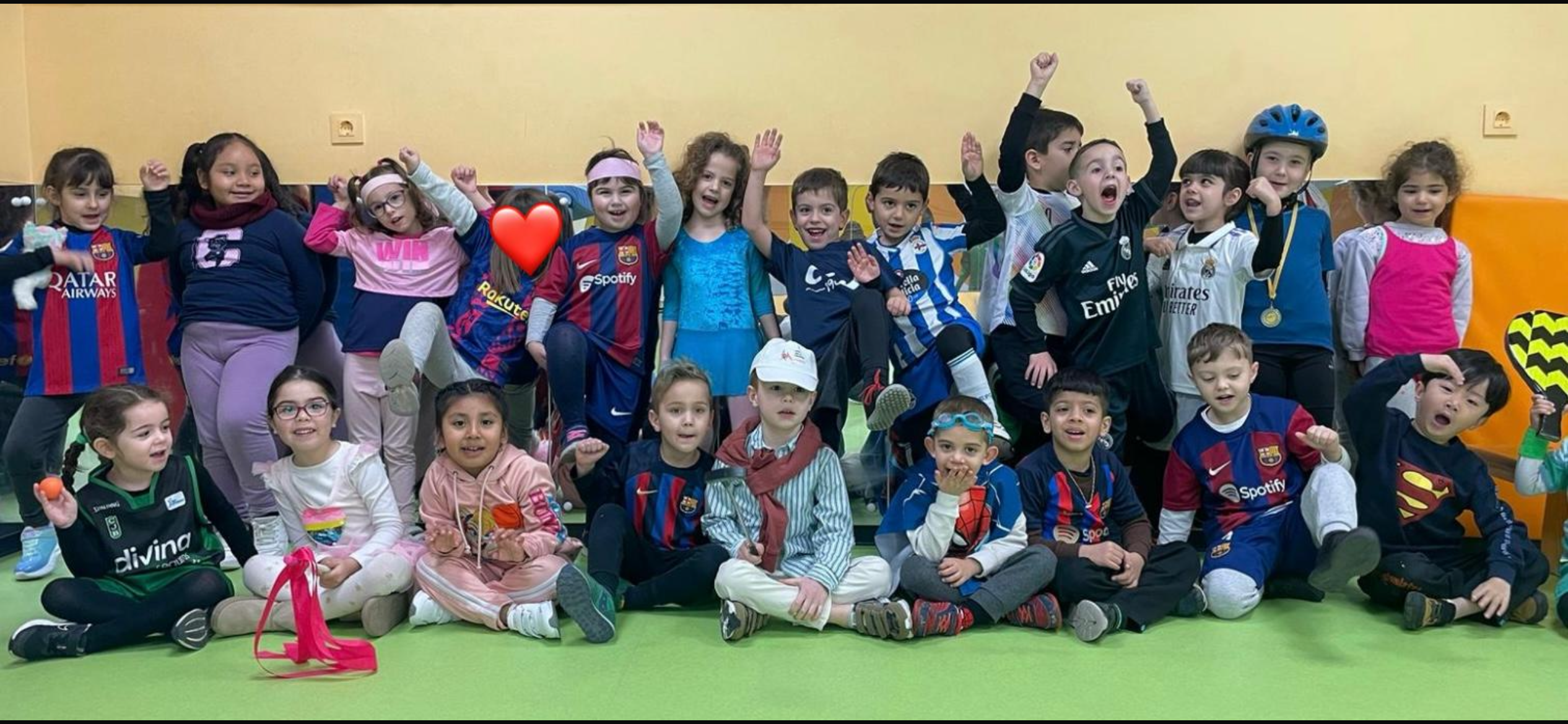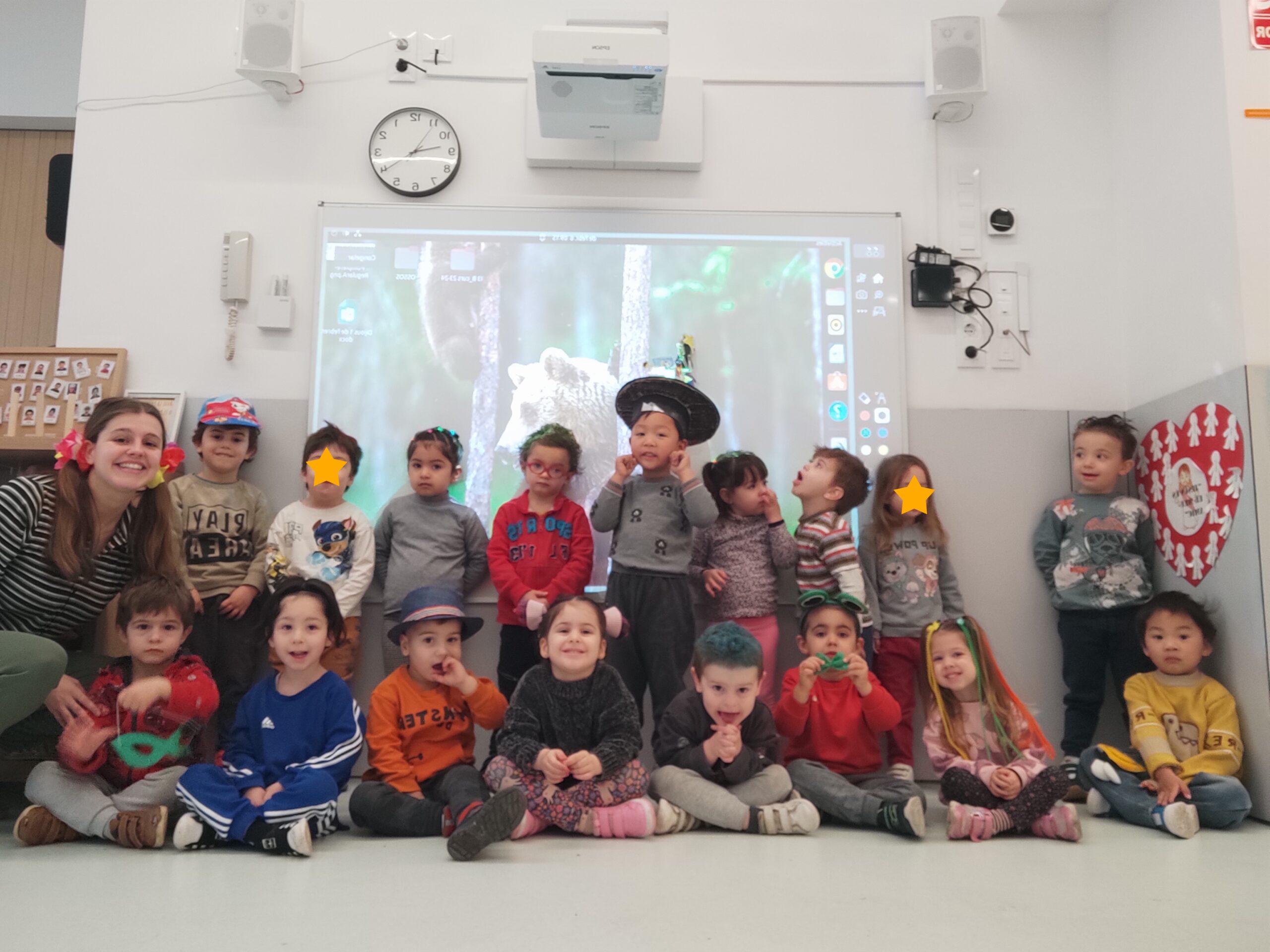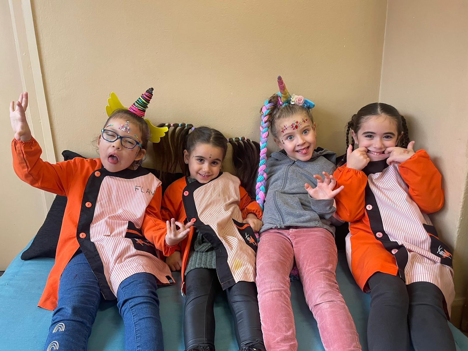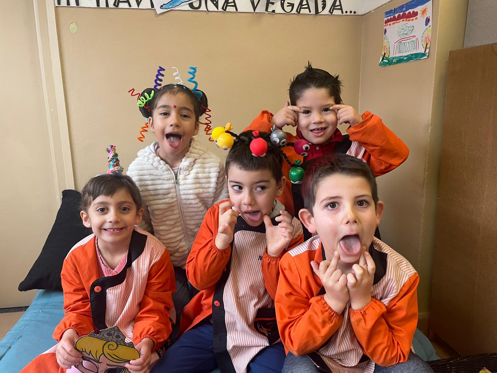 Durant tota la setmana de Carnaval, el Rei Carnestoltes va manar que cada dia de la setmana els infants i els i les docents de l’escola havíem d’anar amb una consigna diferent. Els dilluns vam haver de venir amb pijama i… quina son teníem durant tot el dia! L’endemà, el dimarts, vam portar un cap ben esbojarrat i n’hi va haver de molt originals i bonics. El dimecres vam venir vestits d’esport o amb alguna equipació que ens agradés molt i, de fet, vam tenir esports de tota mena: atletisme, boxa o natació, entre d’altres. El dijous tots i totes vam haver de venir vestits d’un sol color.