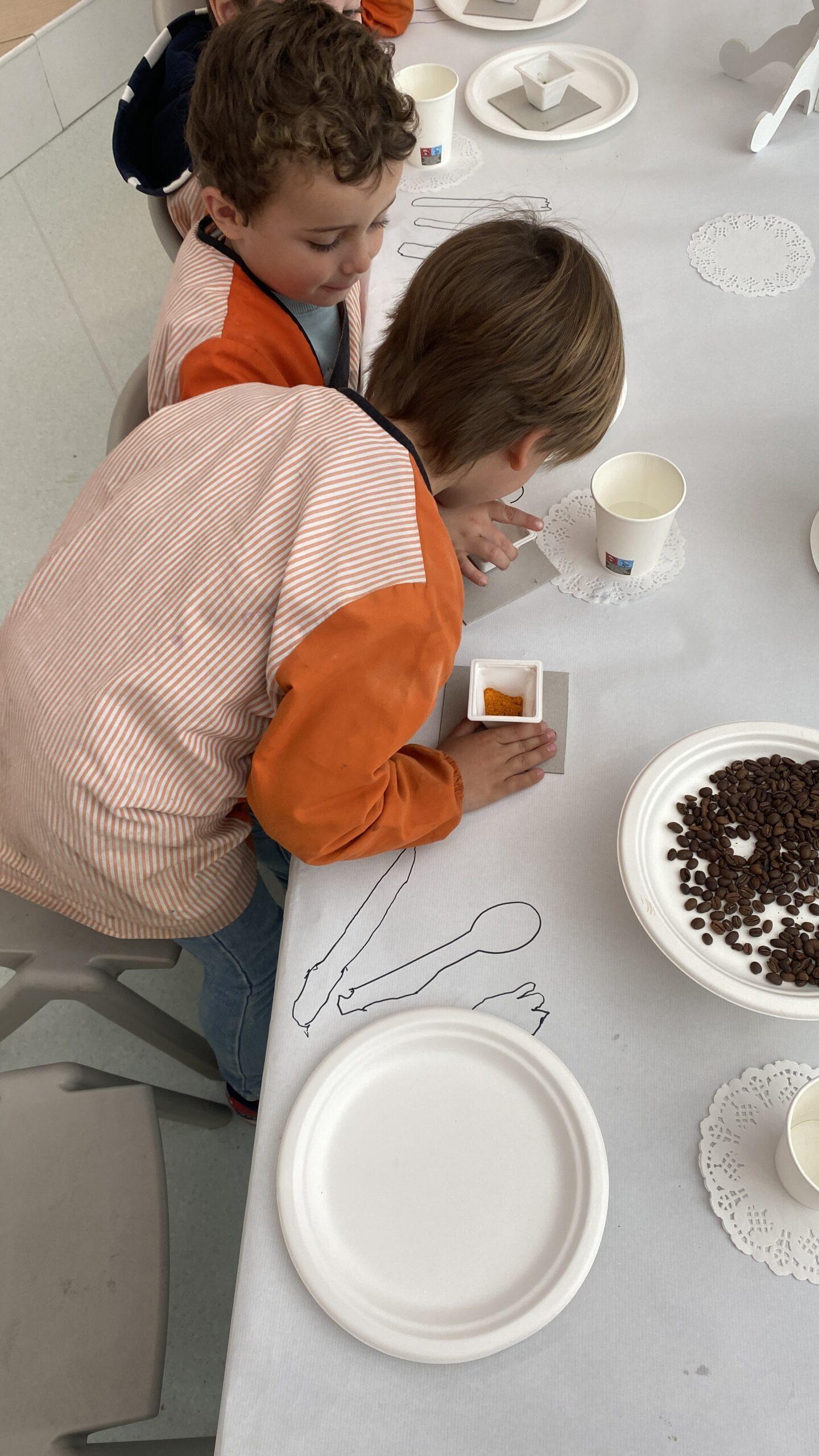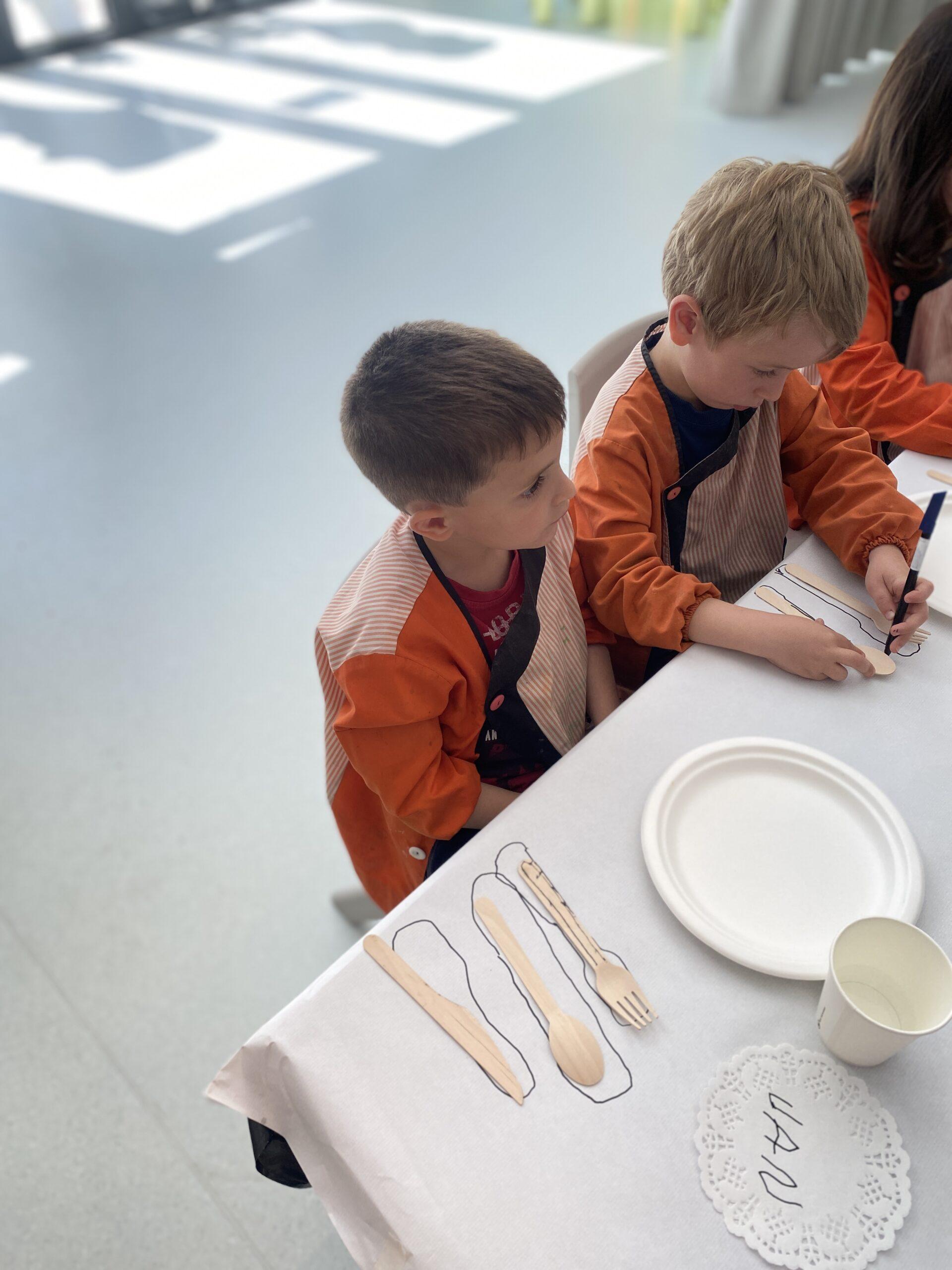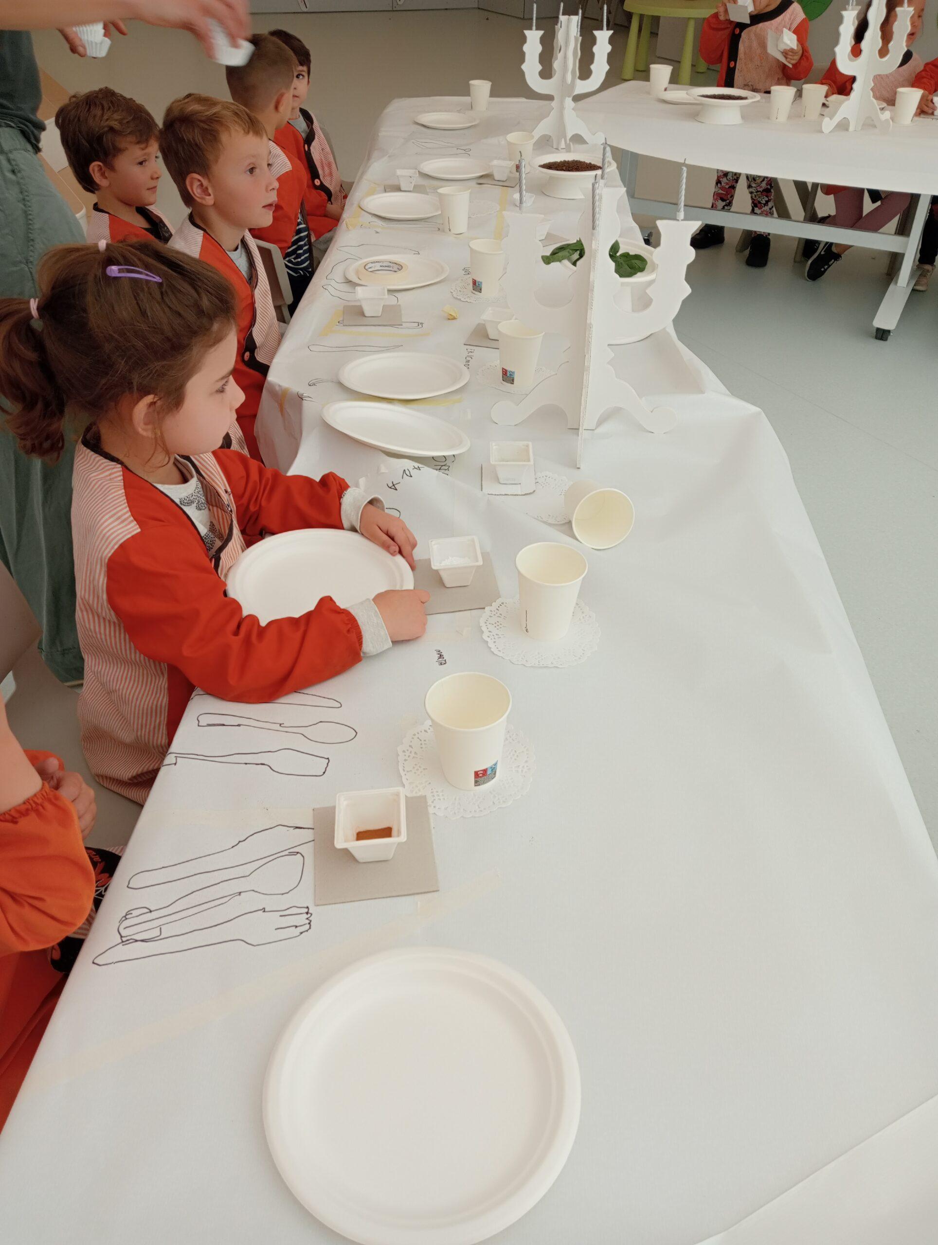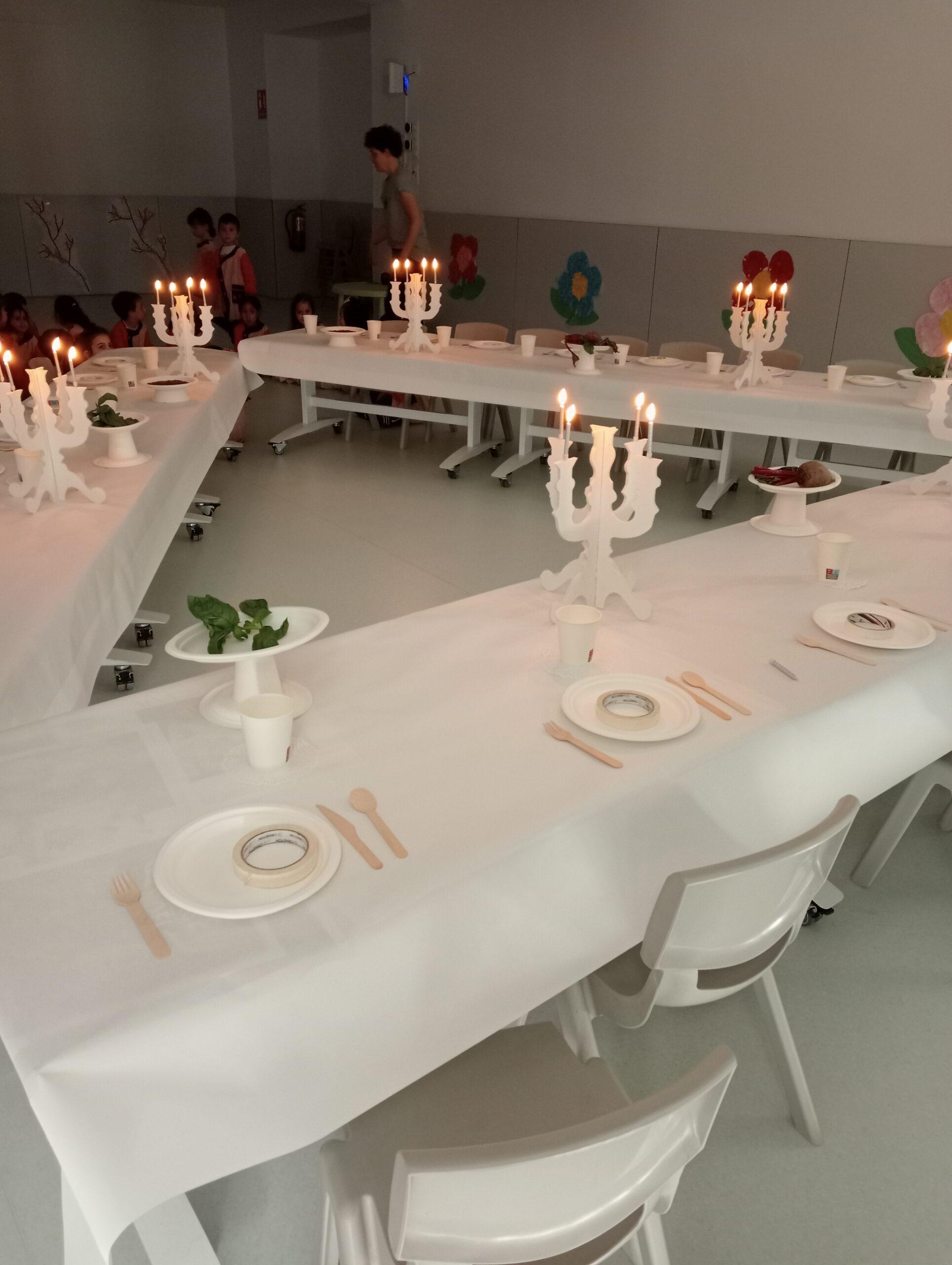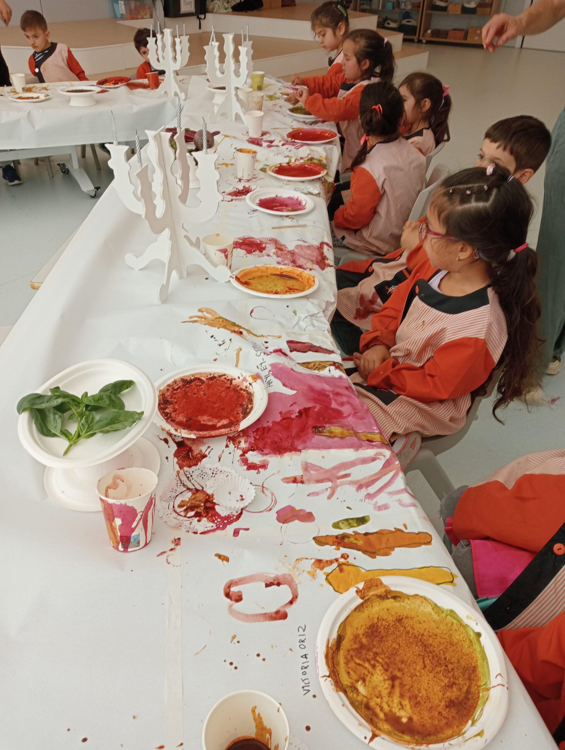 Ens hem endinsat en la seva obra “The dinner party’ i l’equip de Koala for Kids ha ambientat La Plaça d’Educació Infantil representant la taula del sopar. Hem resseguit uns coberts de fusta que, posteriorment, hem pintat amb pintures elaborades amb elements naturals i espècies com ara cúrcuma, remolatxa o safrà. A més, totes aquestes les hem barrejat amb sucre perquè els colors agafin consistència.