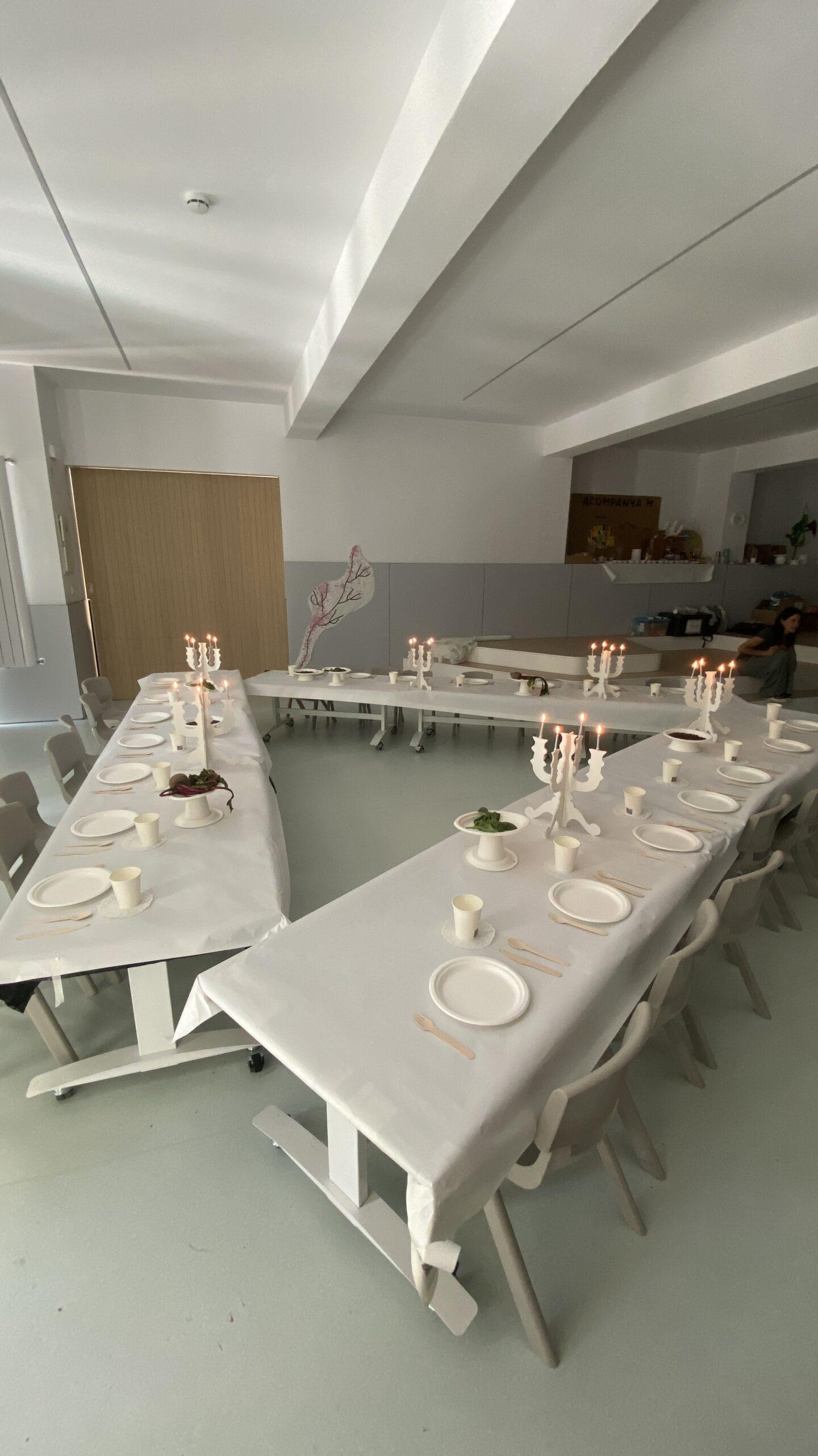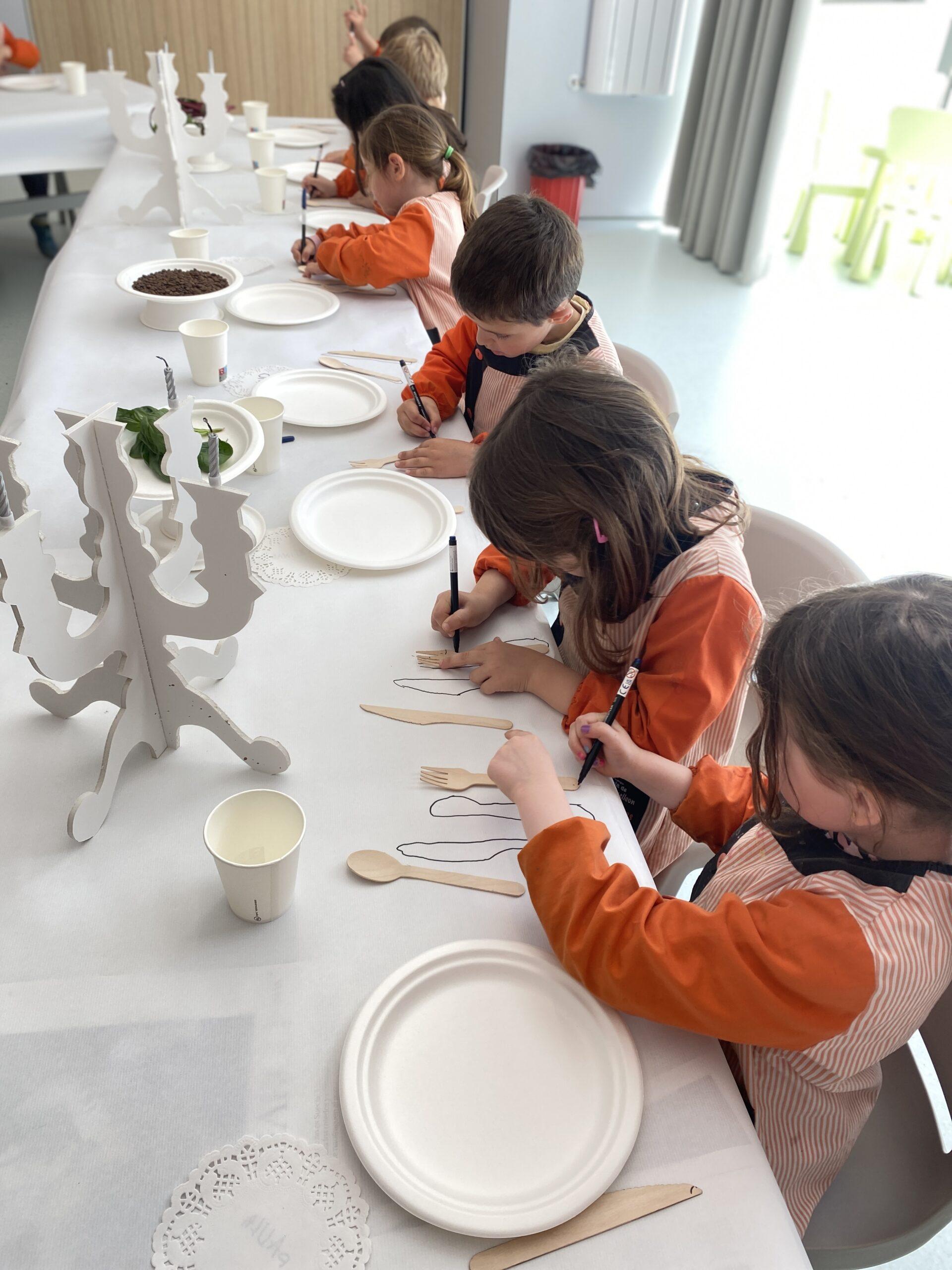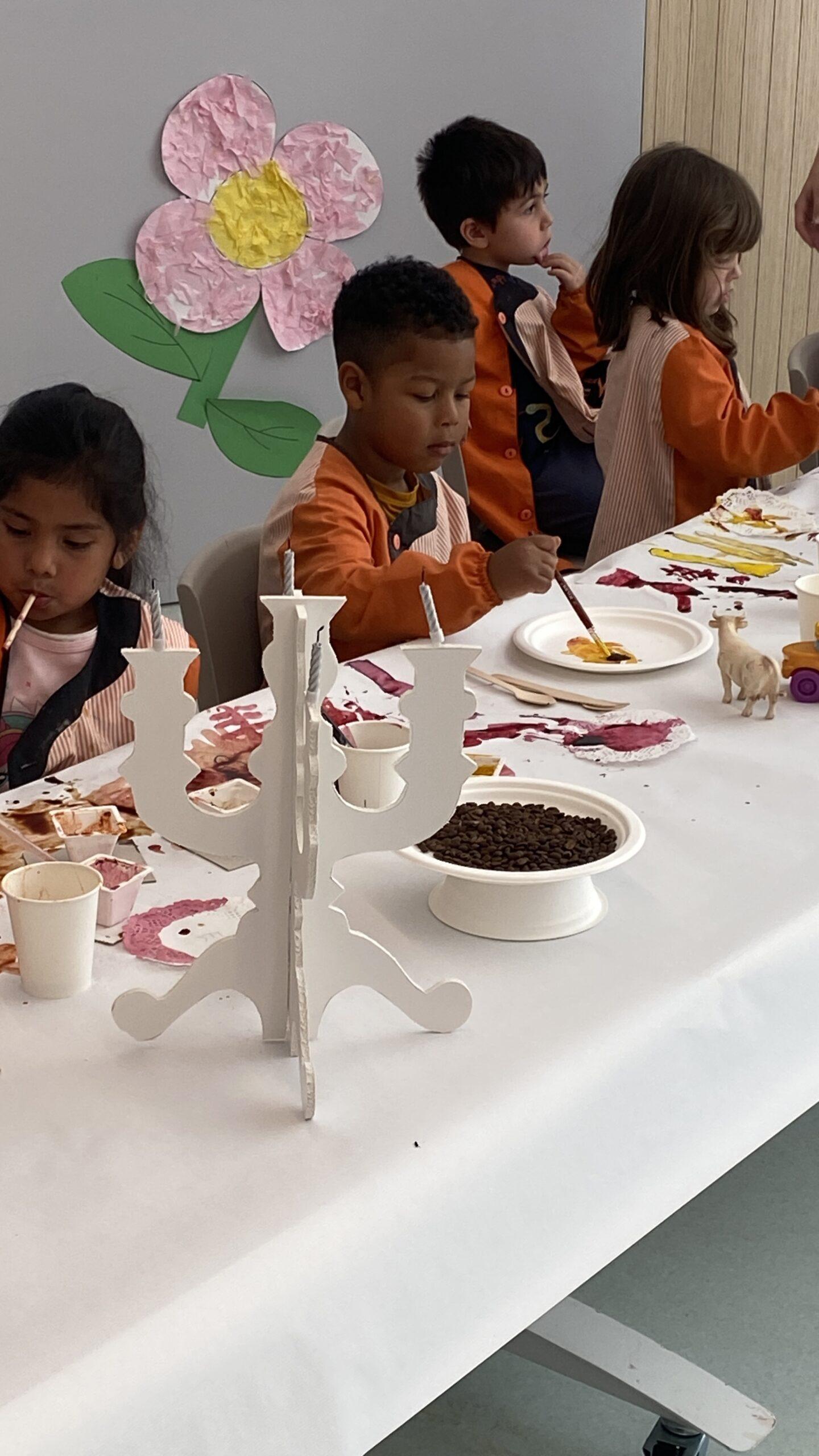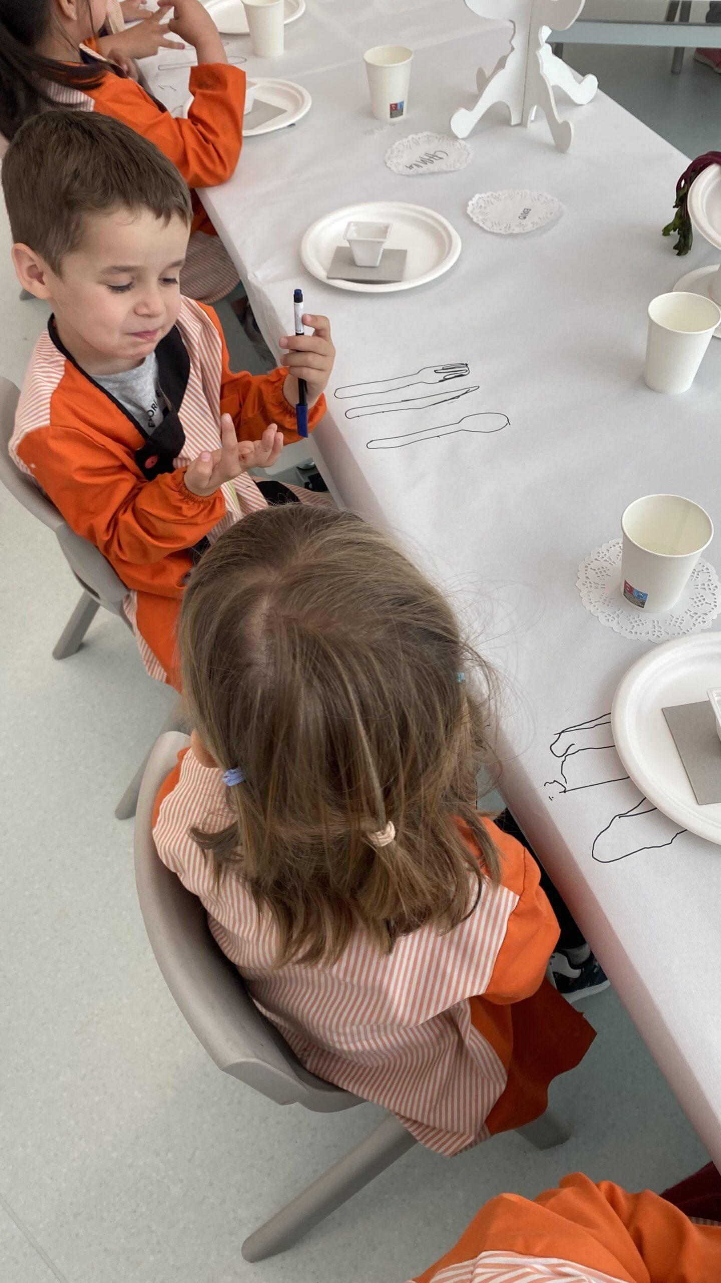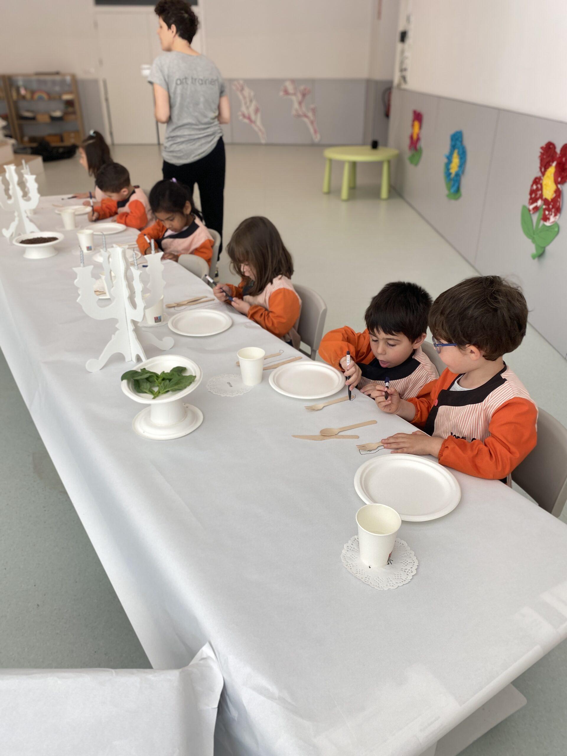 Ens hem endinsat en la seva obra “The dinner party’ i l’equip de Koala for Kids ha ambientat La Plaça d’Educació Infantil representant la taula del sopar. Hem resseguit uns coberts de fusta que, posteriorment, hem pintat amb pintures elaborades amb elements naturals i espècies com ara cúrcuma, remolatxa o safrà. A més, totes aquestes les hem barrejat amb sucre perquè els colors agafin consistència.