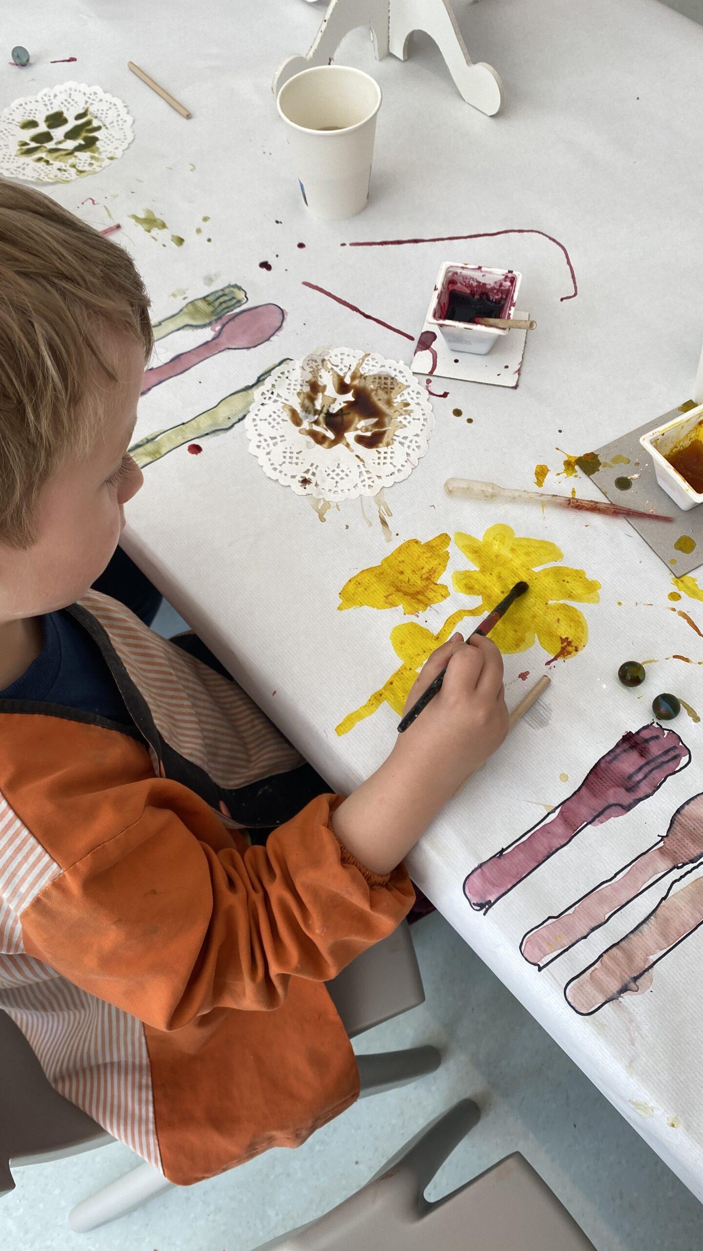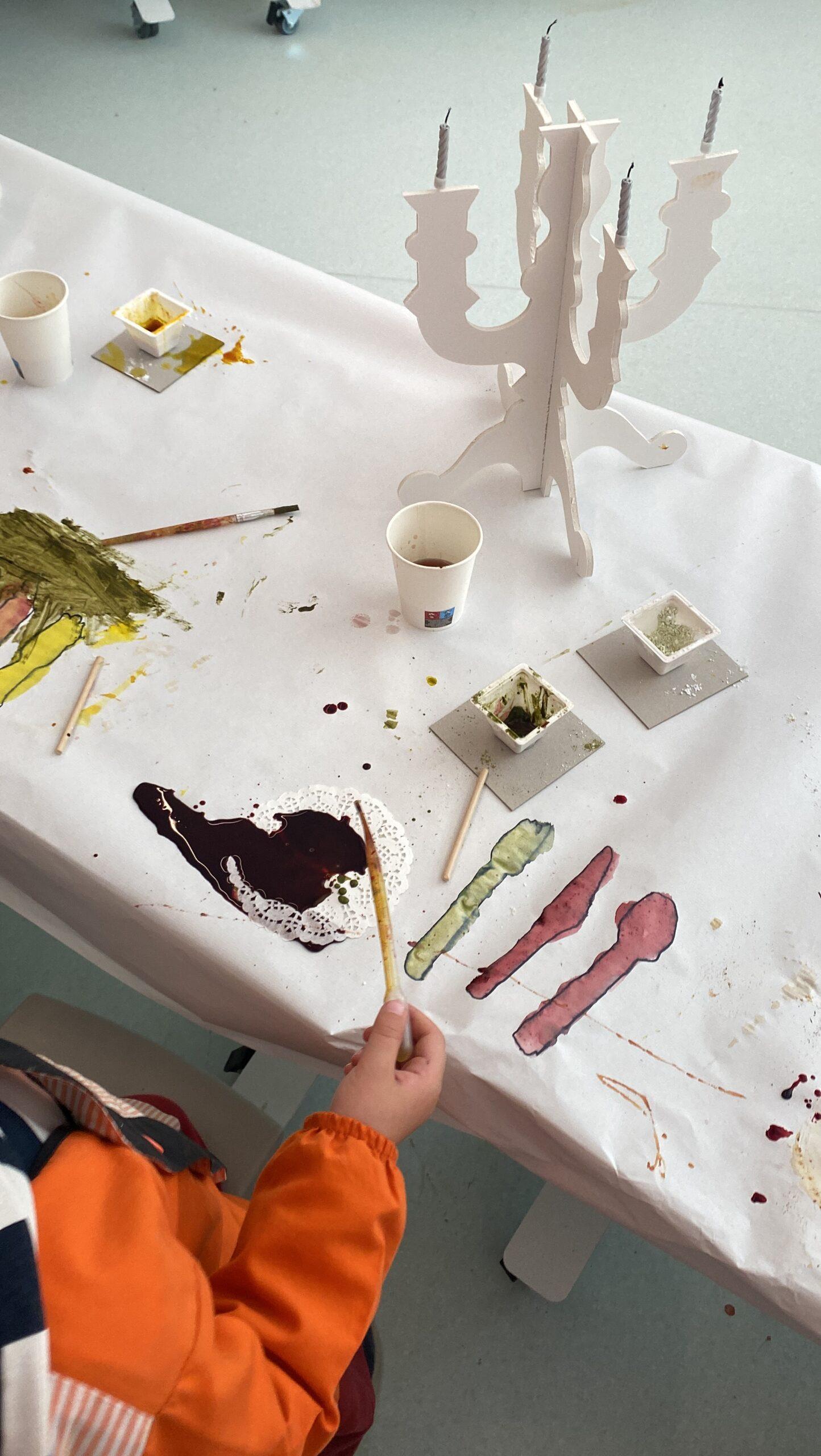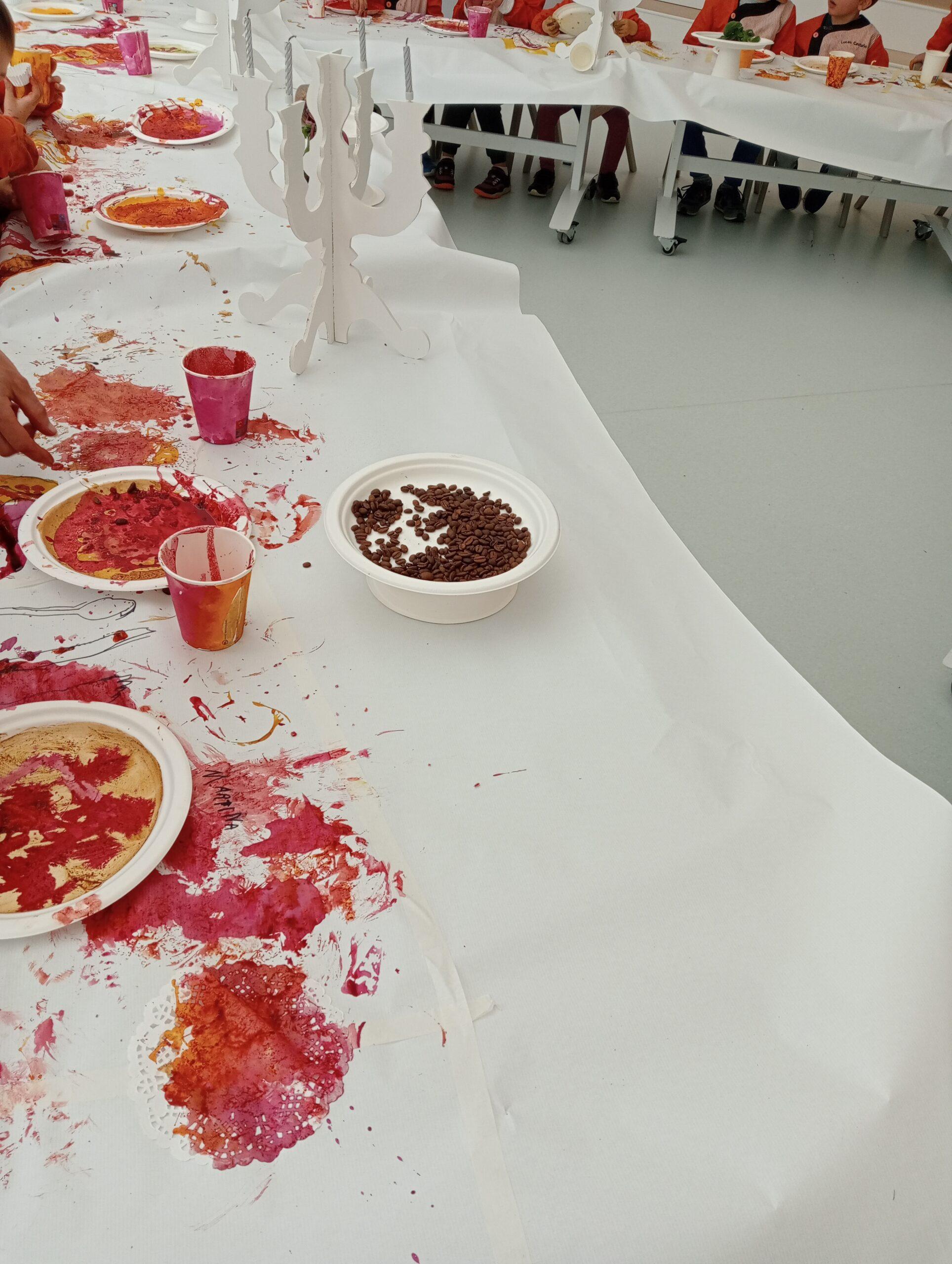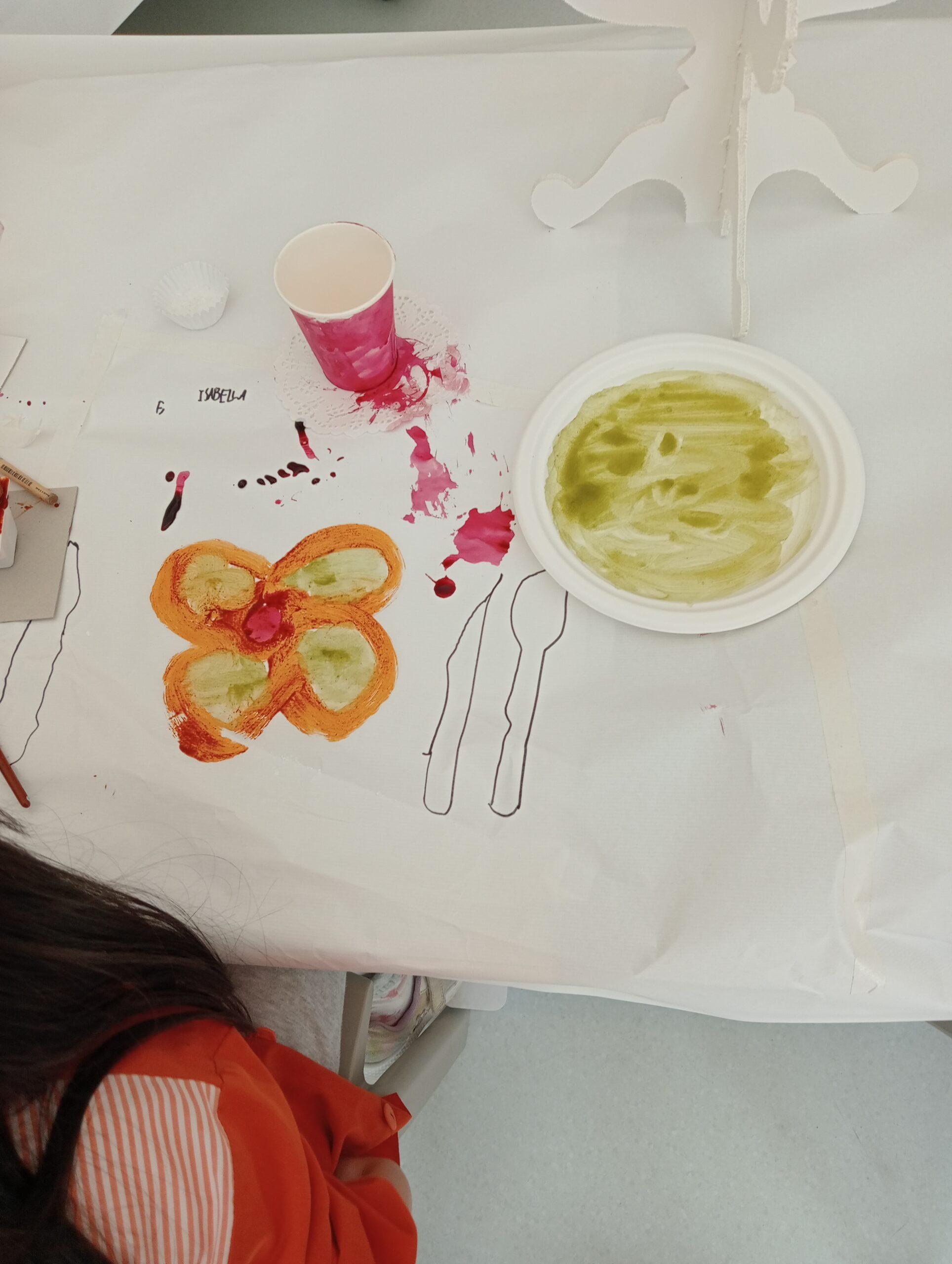També hem pintat diferents elements (estovalles, plats…) amb pinzells, pipetes i bales.