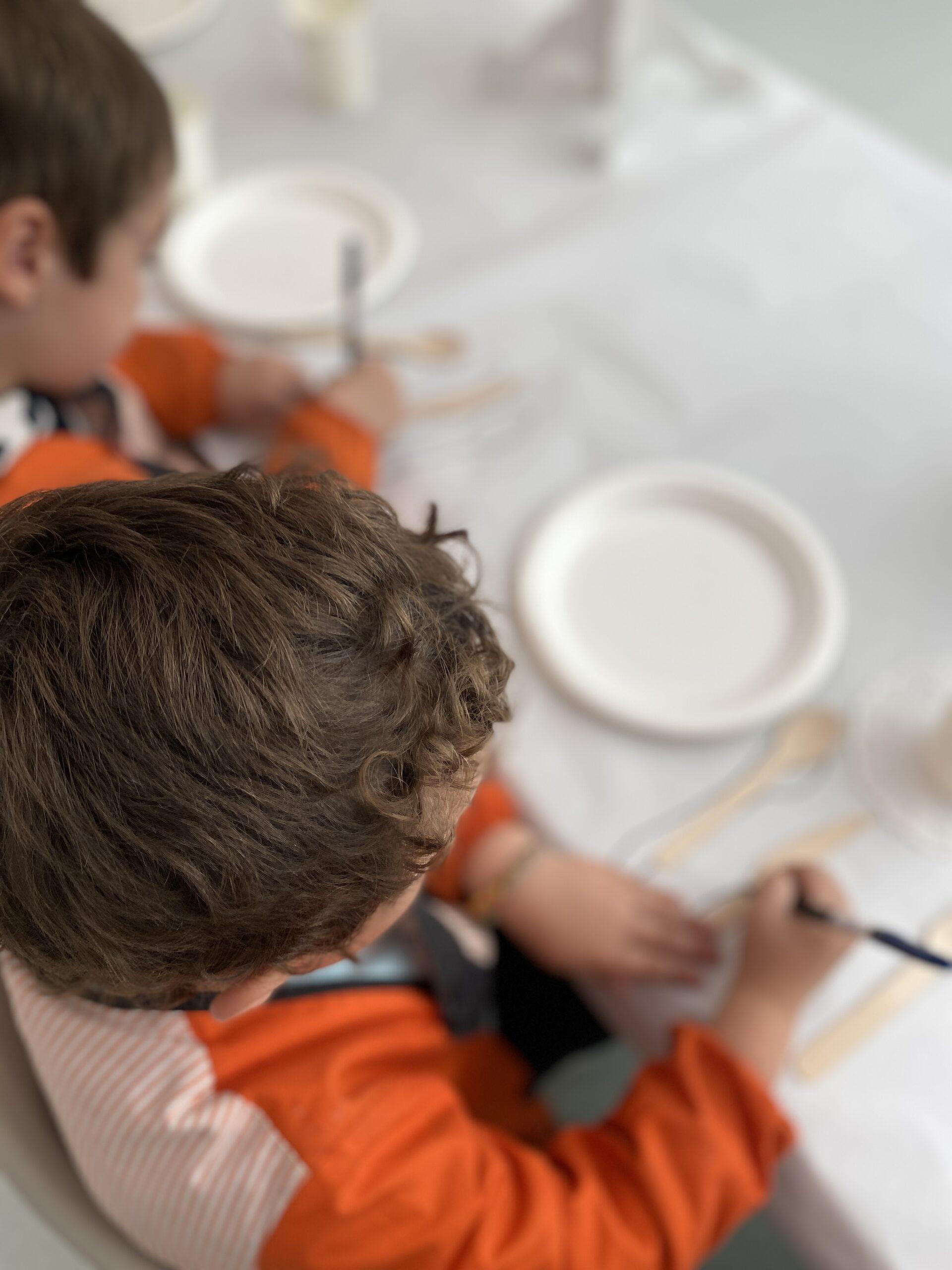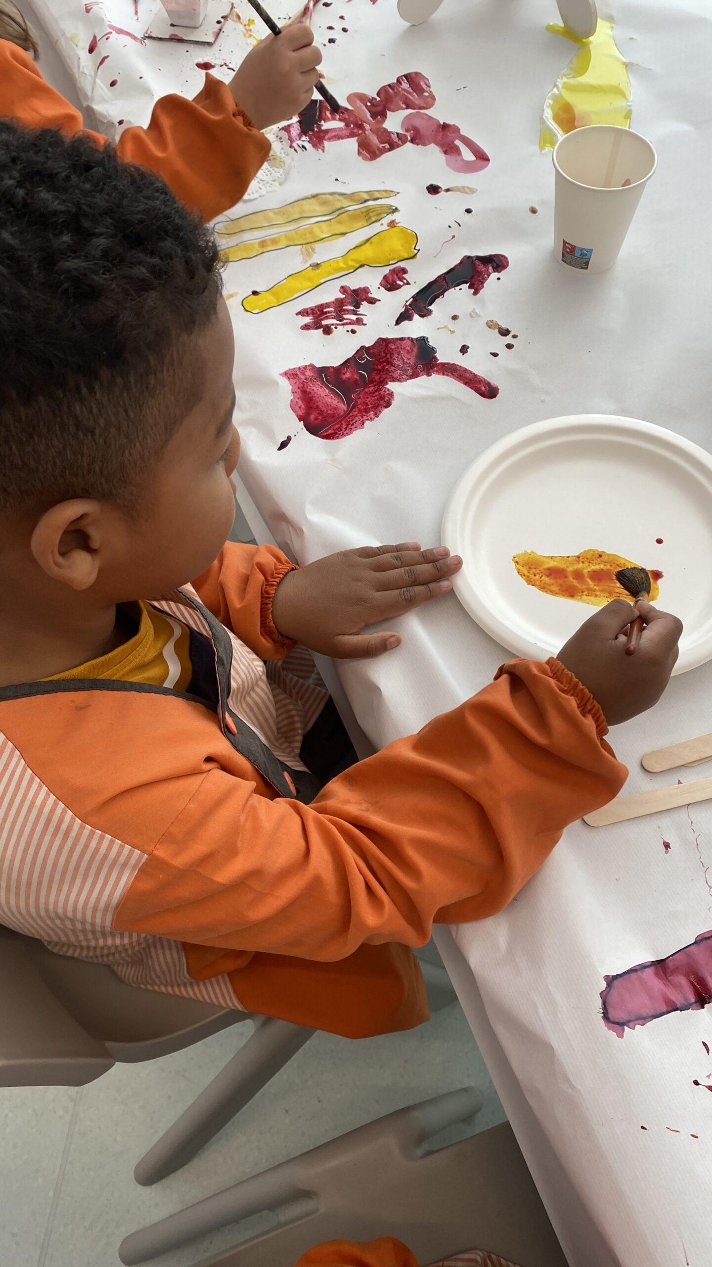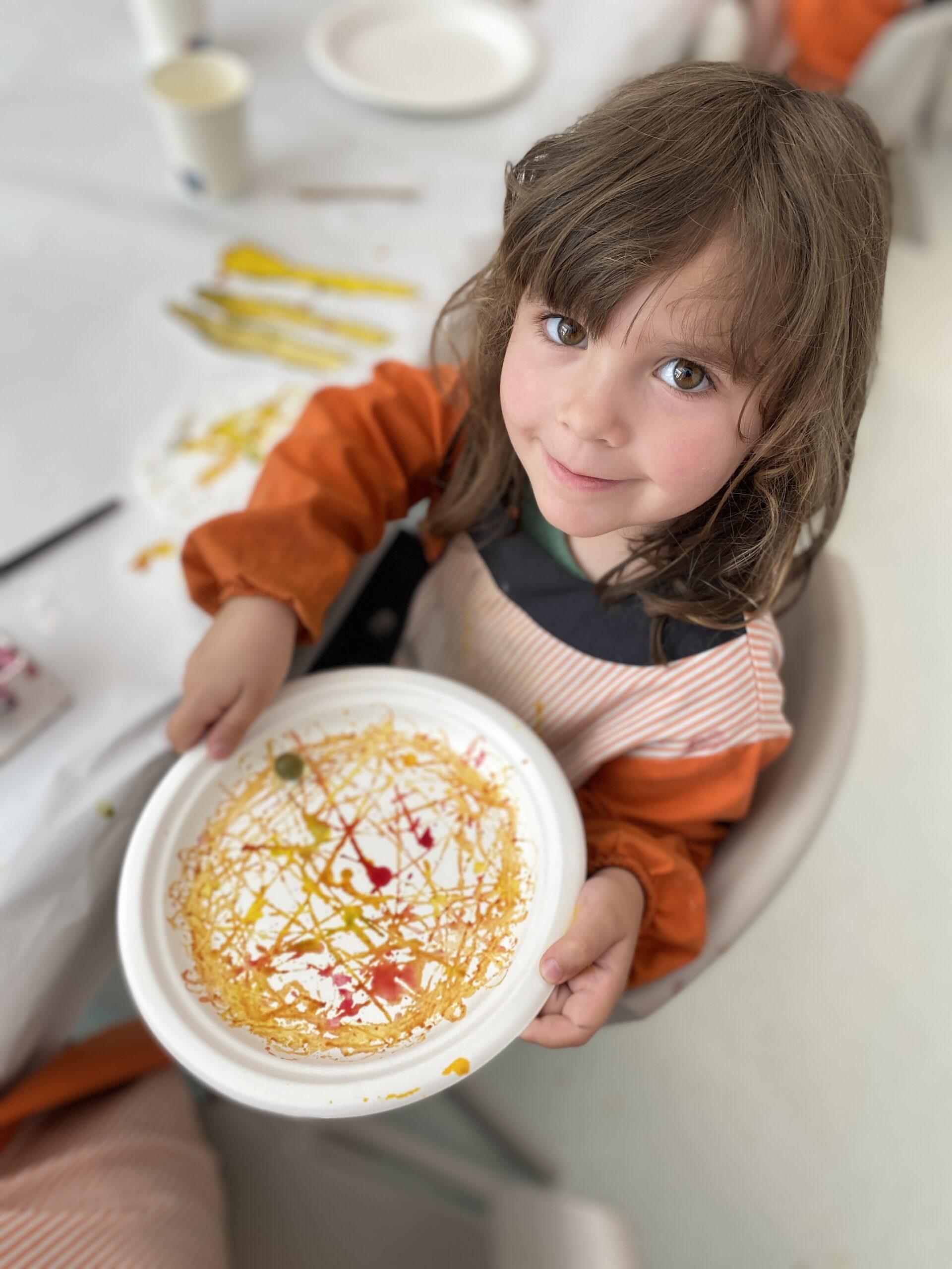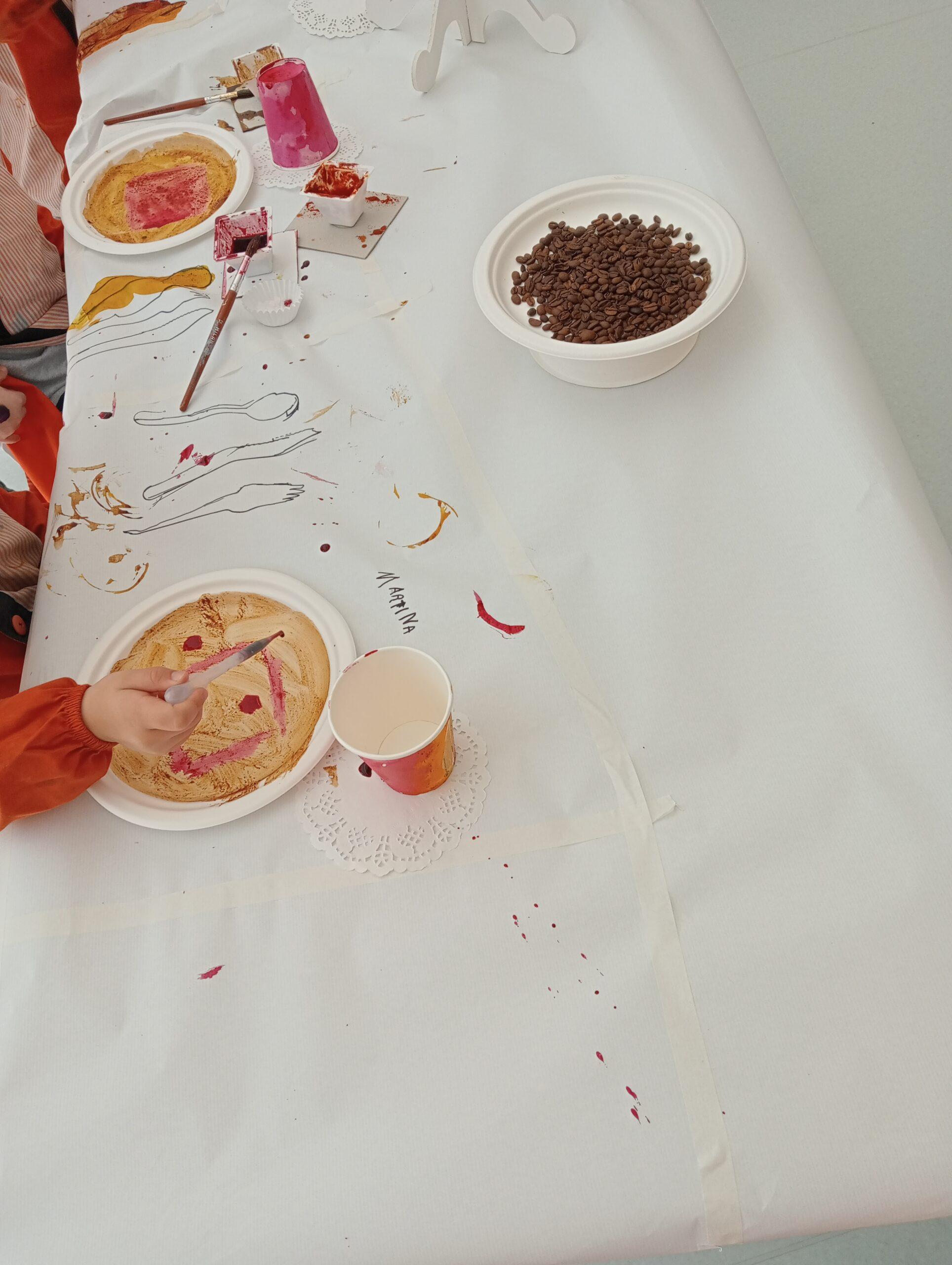 També hem pintat diferents elements (estovalles, plats…) amb pinzells, pipetes i bales.