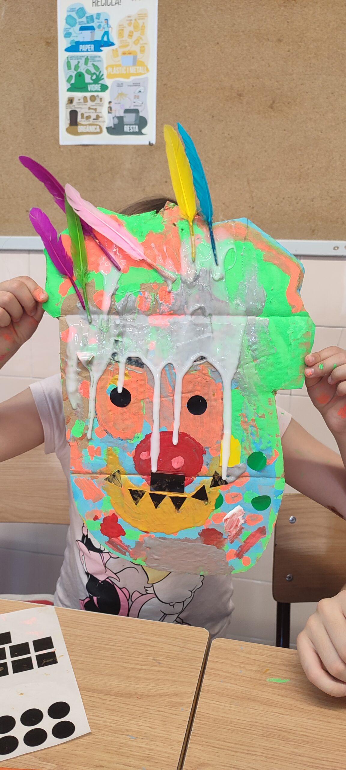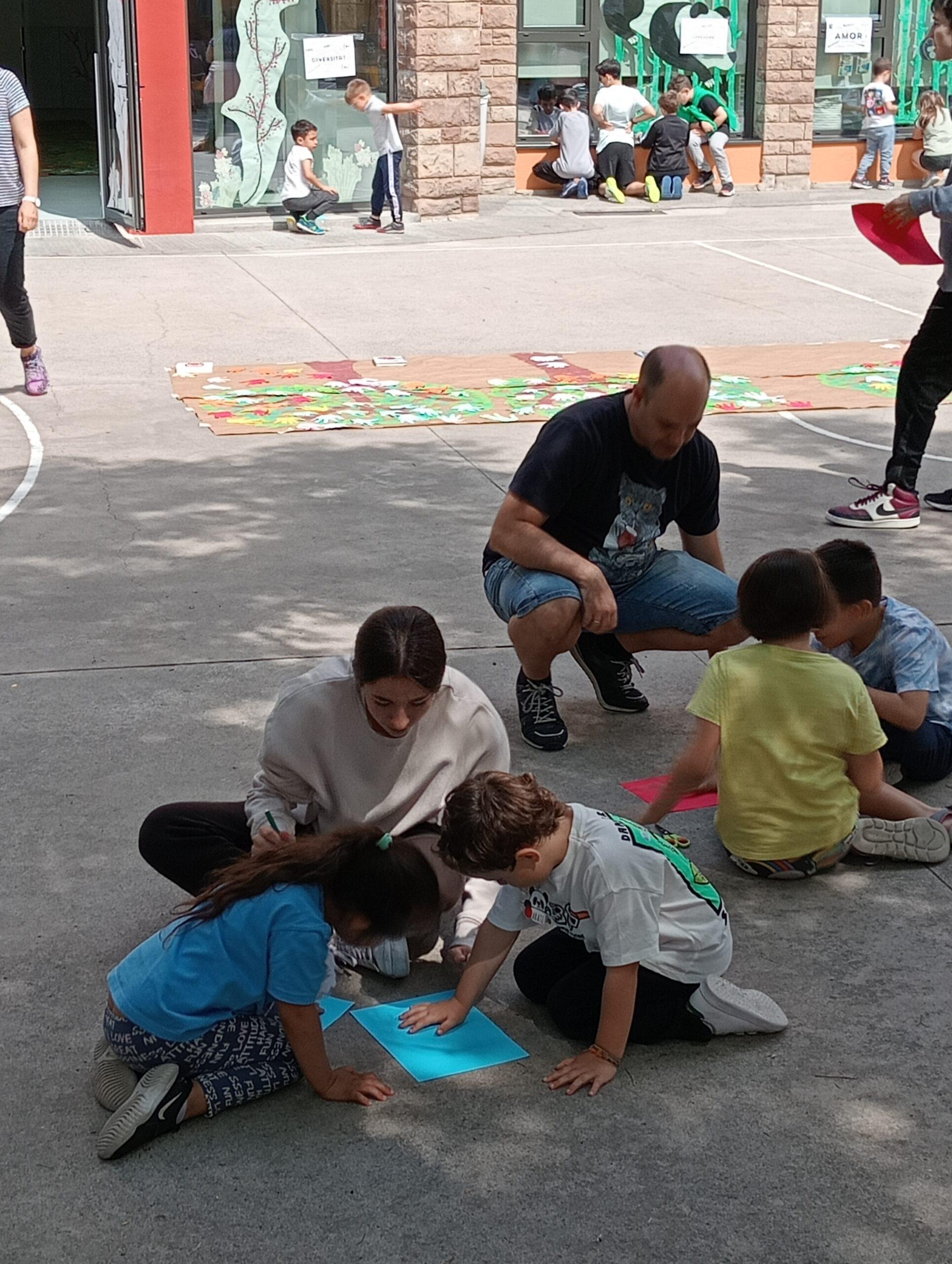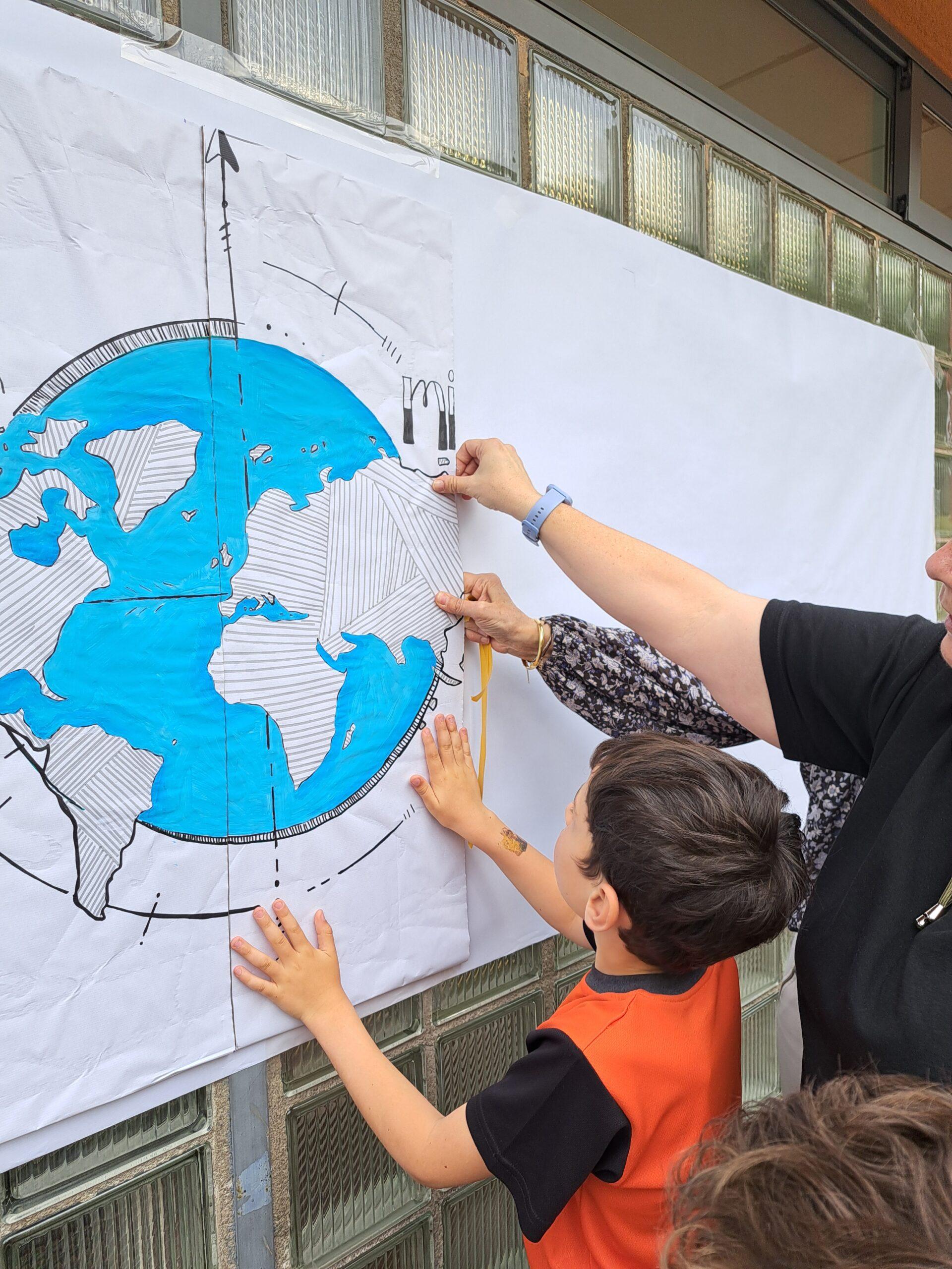 A mig matí es van crear grups amb infants de tots els nivells de l’escola que van anar passant pels tallers ambientats en quatre continents: Àfrica, Amèrica, Europa i Àsia. En el cas d’Àfrica, els infants van per elaborar màscares africanes tot deixant volar la seva imaginació. Respecte al taller d’Amèrica, es va centrar en l’art musical i, en concret, amb l’estil “merengue”, on l’alumnat va poder gaudir d’una coreografia creada per l’alumnat de Secundària. Seguidament, el taller d’Europa es va centrar en una recepta d’un postre típic d’Anglaterra: el Plum Cake. Finalment, i pel que fa al taller d’Àsia, es va crear un mural de la diversitat a través de les siluetes de les mans dels infants per, posteriorment, escriure una paraula bonica i enganxar-la al mural. Aquest anava precedit del lema “Aquestes mans no són el futur, són el present”.