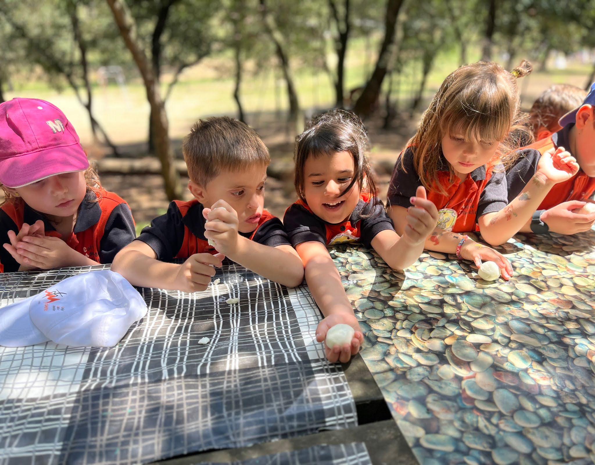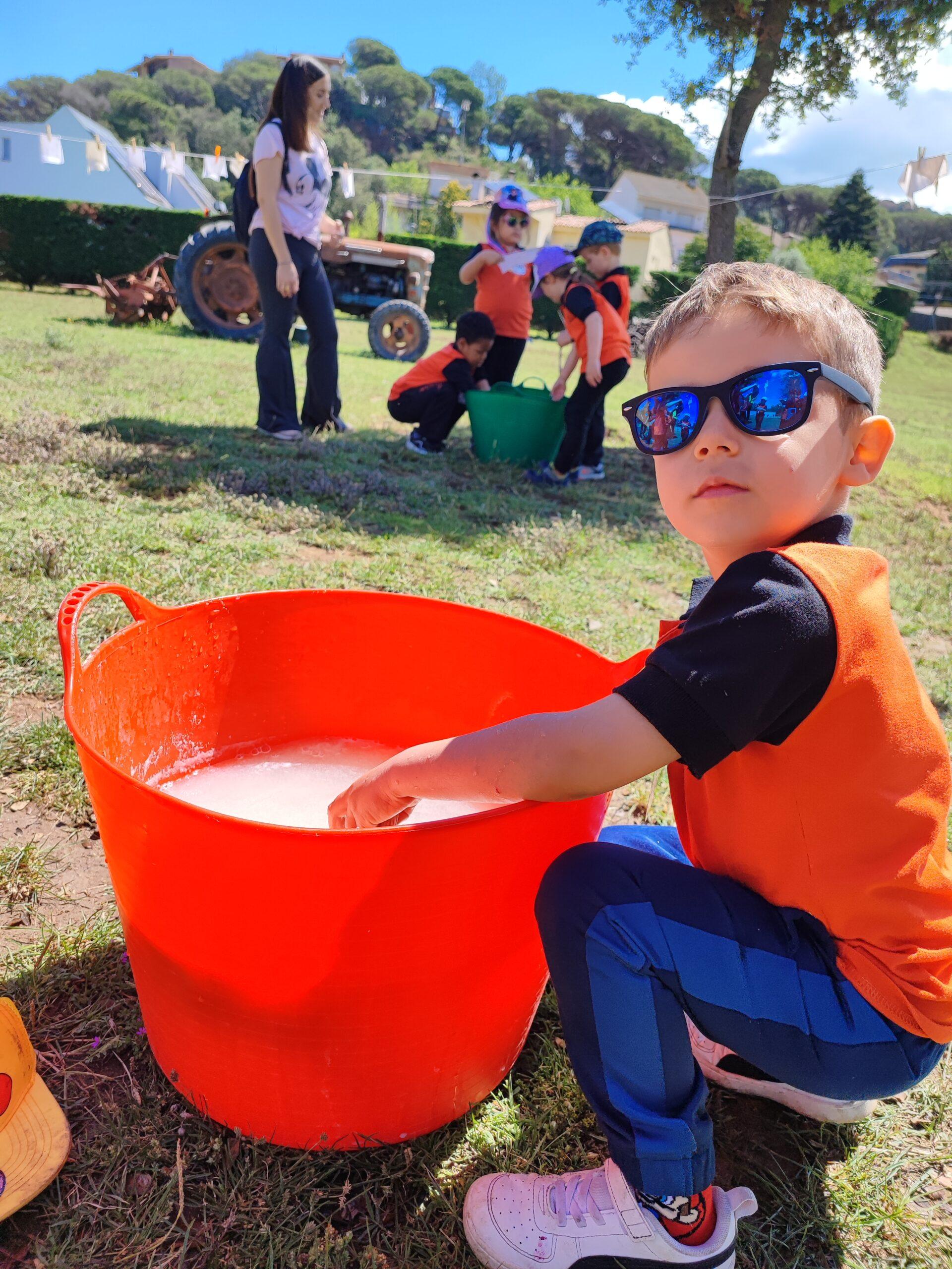 Els nens i nenes de quatre anys van elaborar sabó artesanal amb oli, sabó líquid i farina de blat de moro. Van fer unes boletes amb aquesta barreja i les van posar dins una capseta que ells mateixos van decorar i que, després, es van endur a casa.