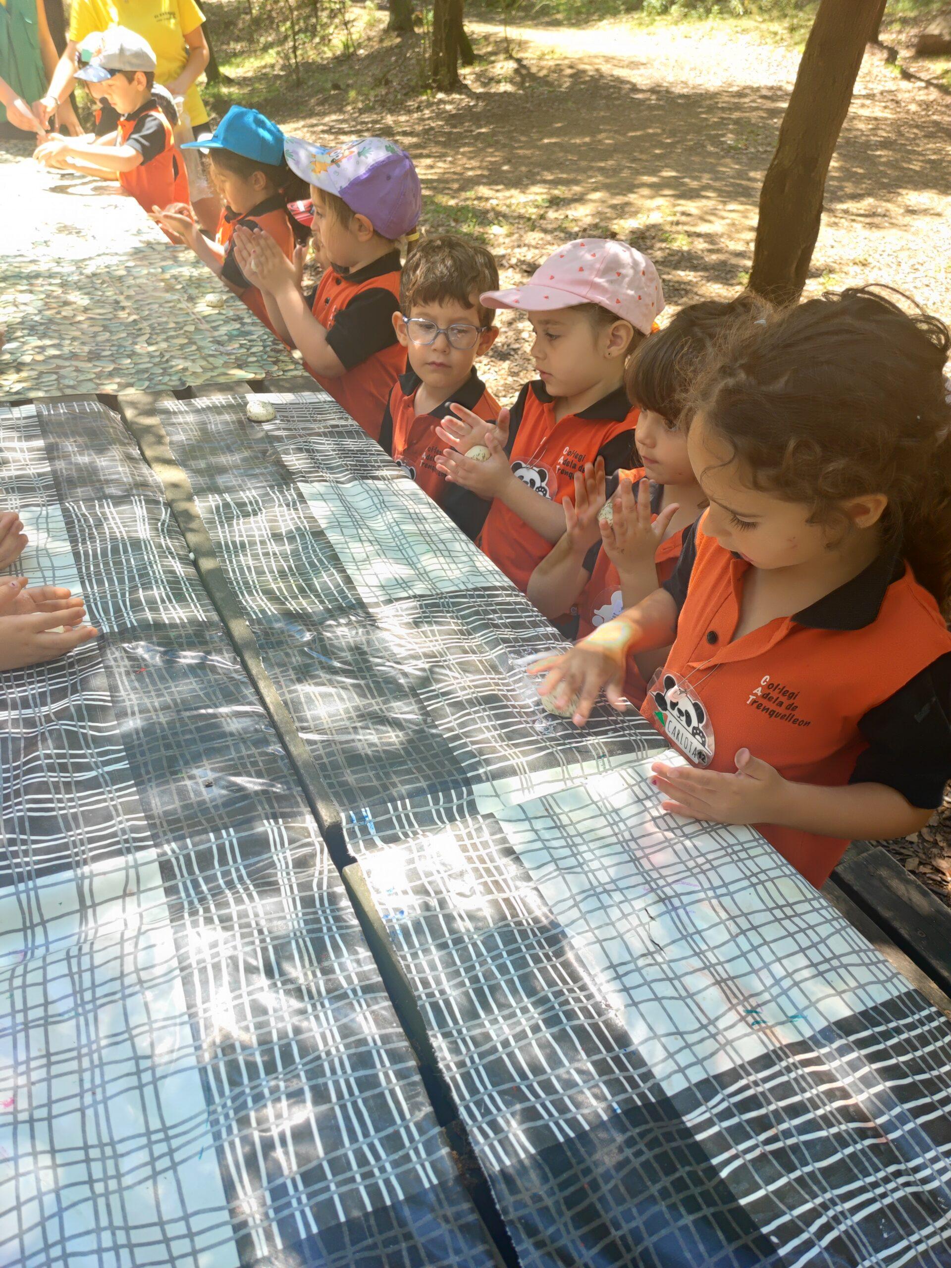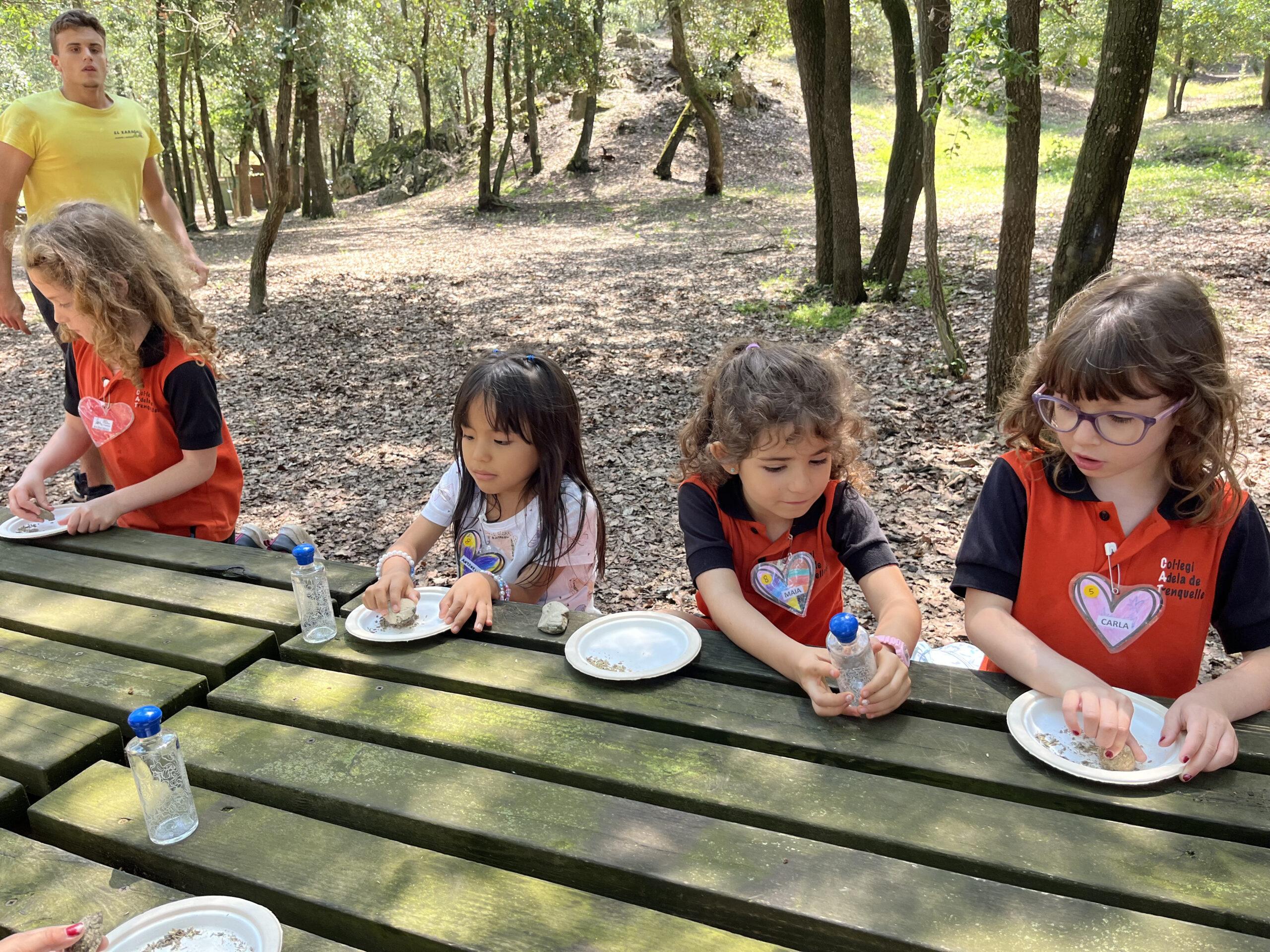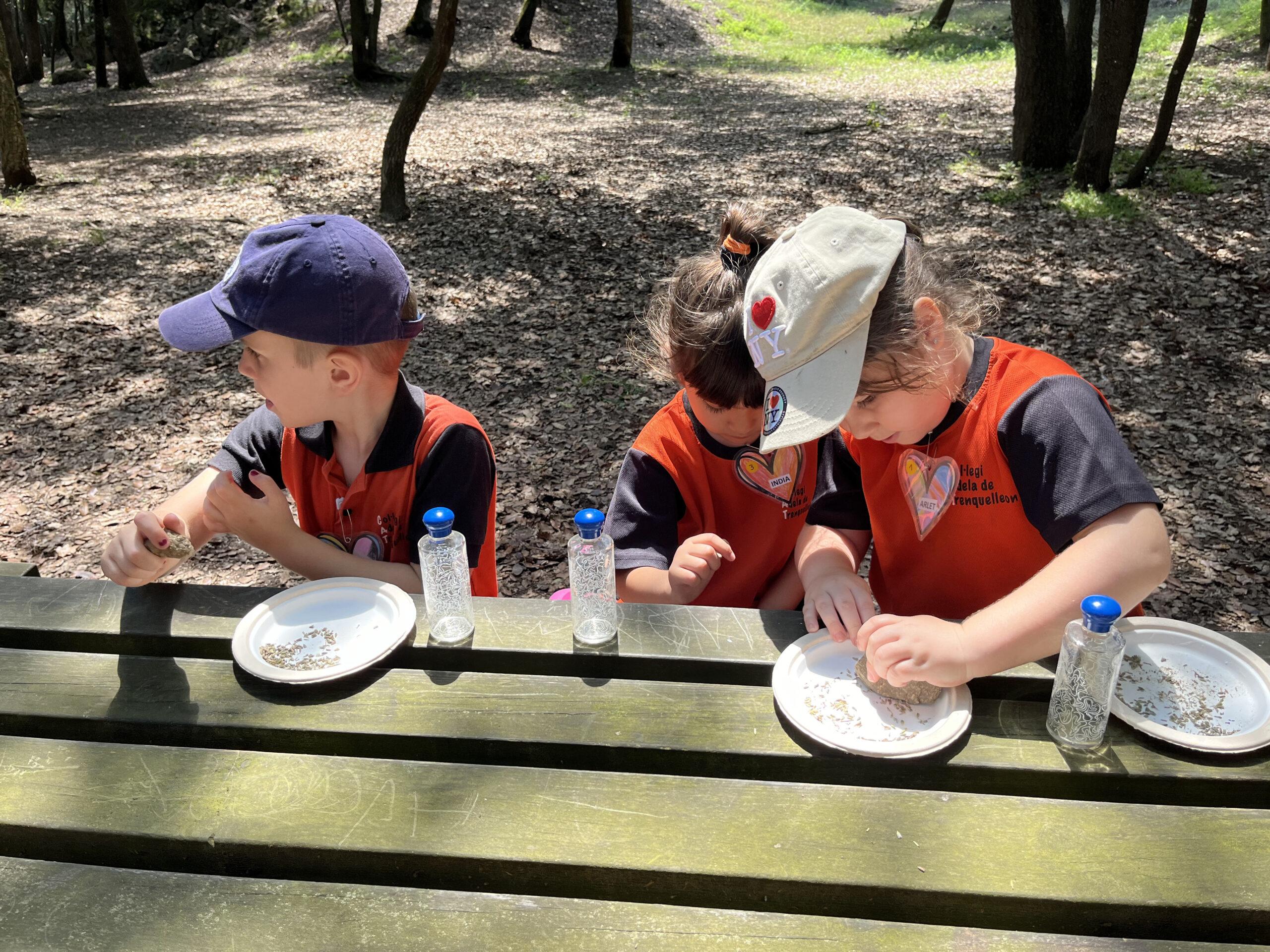 Finalment, els més grans de l’etapa van fer un recorregut pel bosc i van trobar i olorar plantes aromàtiques com farigola, espígol, menta i romaní. Seguidament, van recollir farigola i fulles de menta, les van barrejar amb aigua i alcohol i, amb aquesta combinació, tot això es va transformar en una colònia que ben segur els deixarà a tots i a totes ben perfumats i perfumades.
