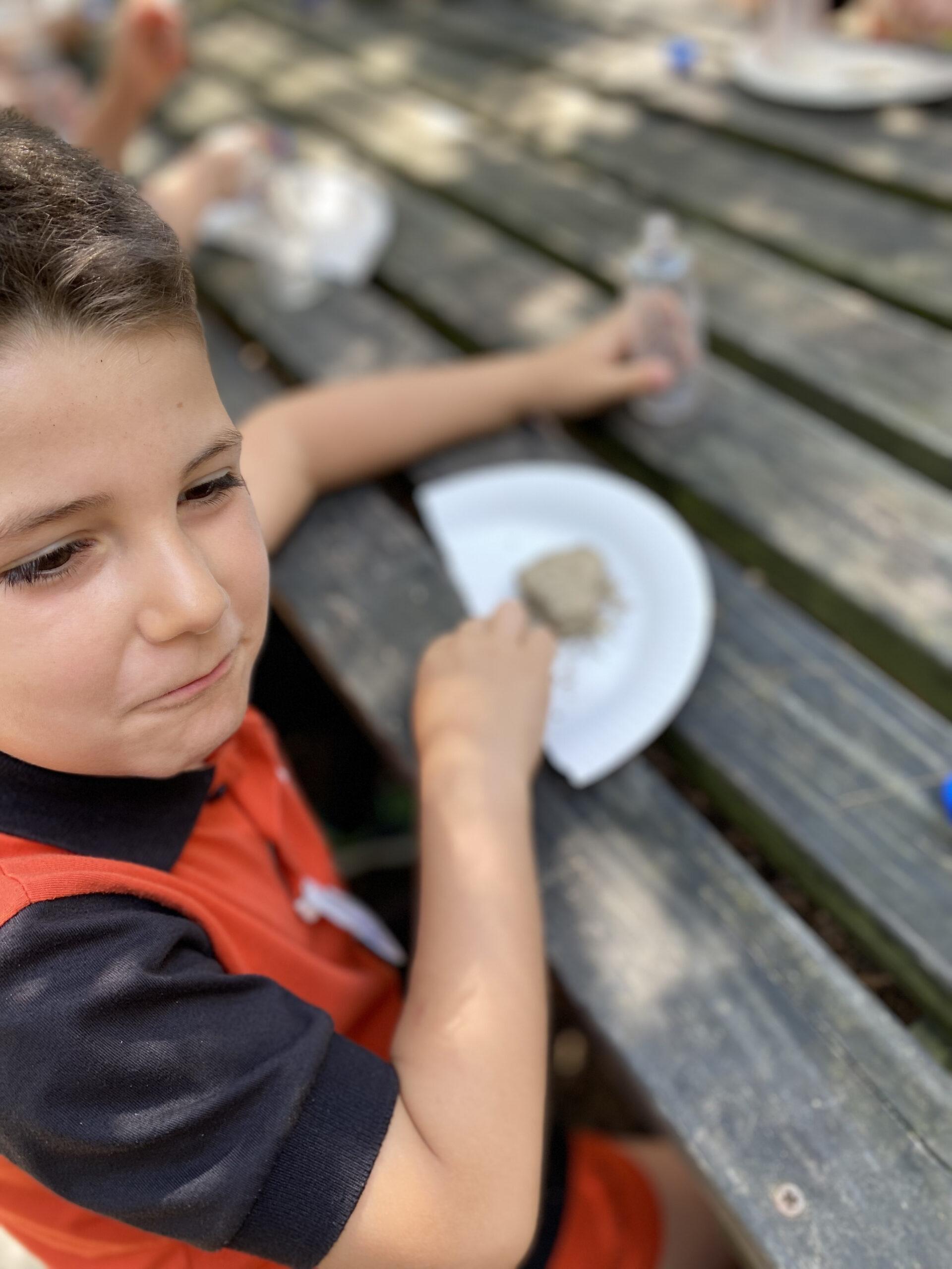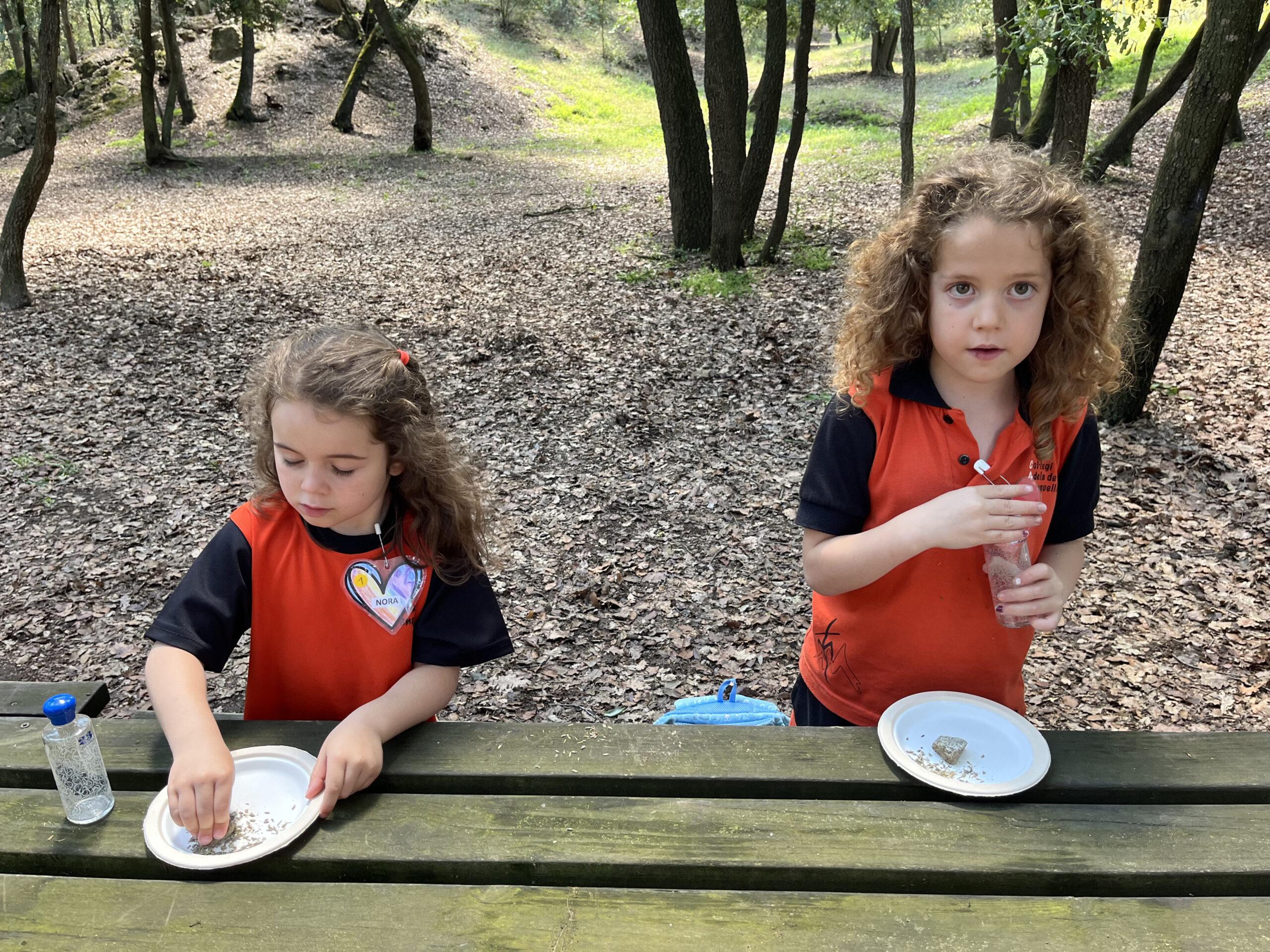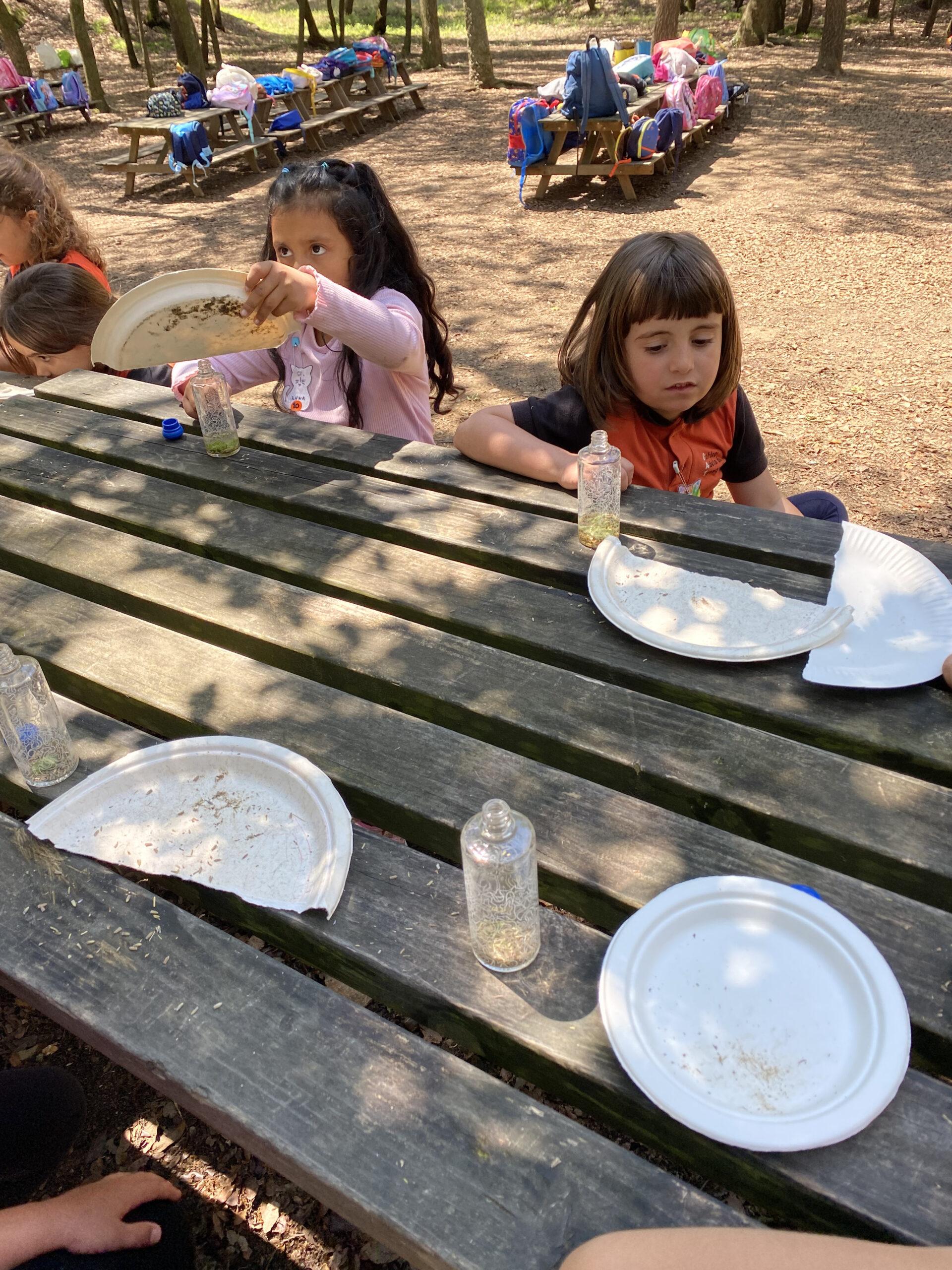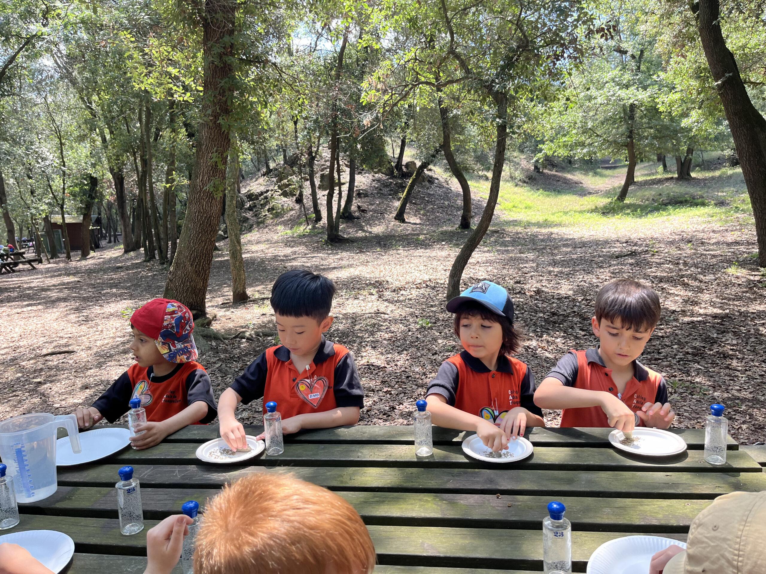 Finalment, els més grans de l’etapa van fer un recorregut pel bosc i van trobar i olorar plantes aromàtiques com farigola, espígol, menta i romaní. Seguidament, van recollir farigola i fulles de menta, les van barrejar amb aigua i alcohol i, amb aquesta combinació, tot això es va transformar en una colònia que ben segur els deixarà a tots i a totes ben perfumats i perfumades.