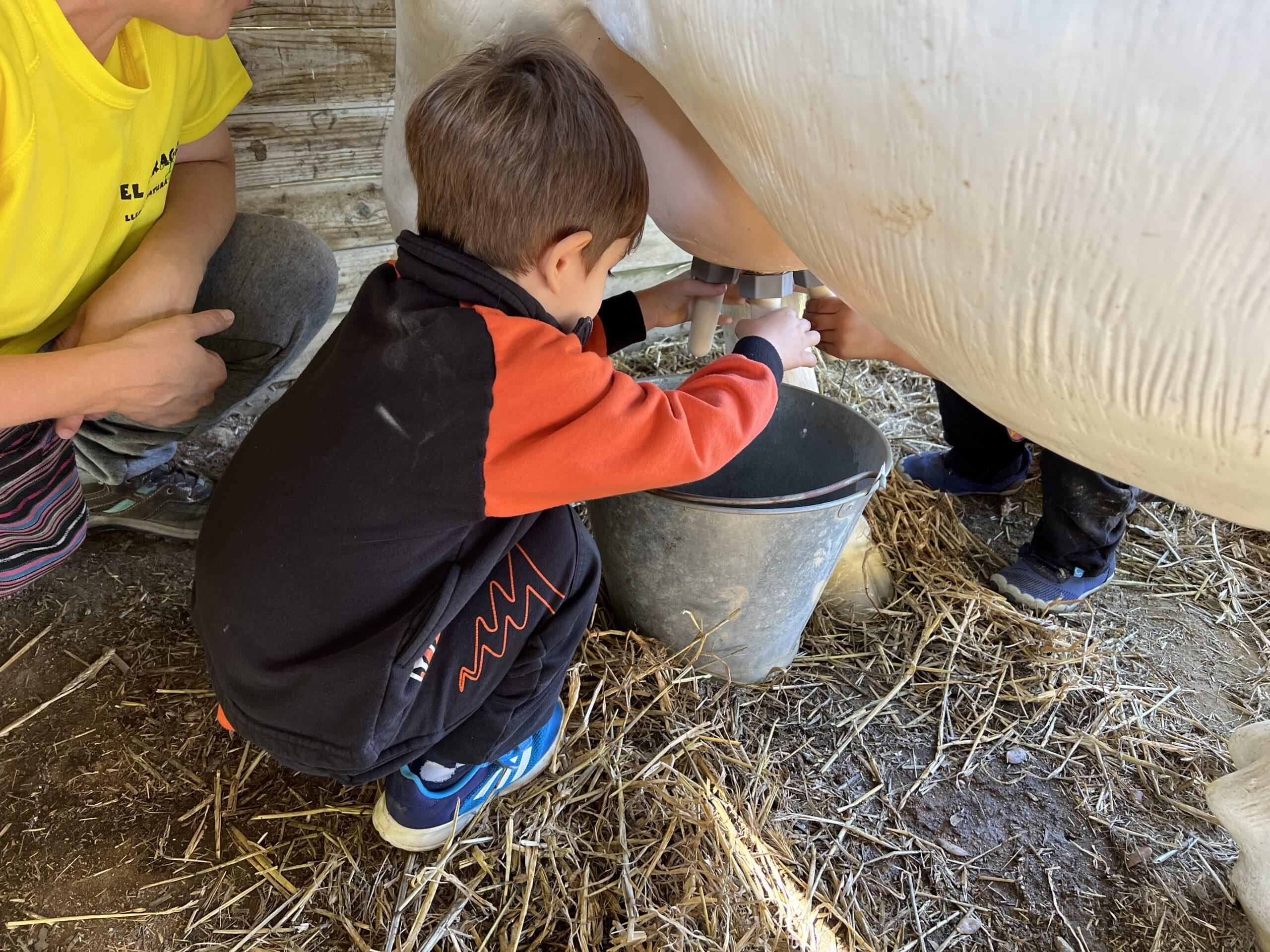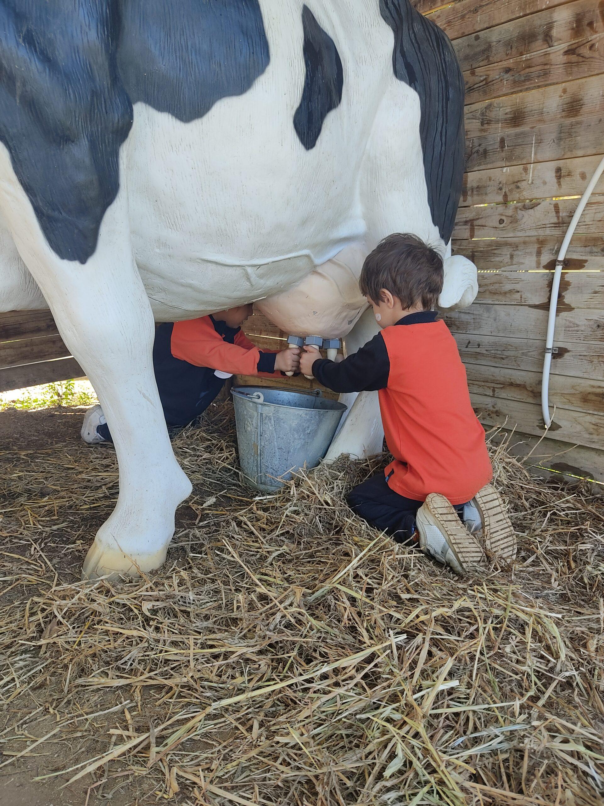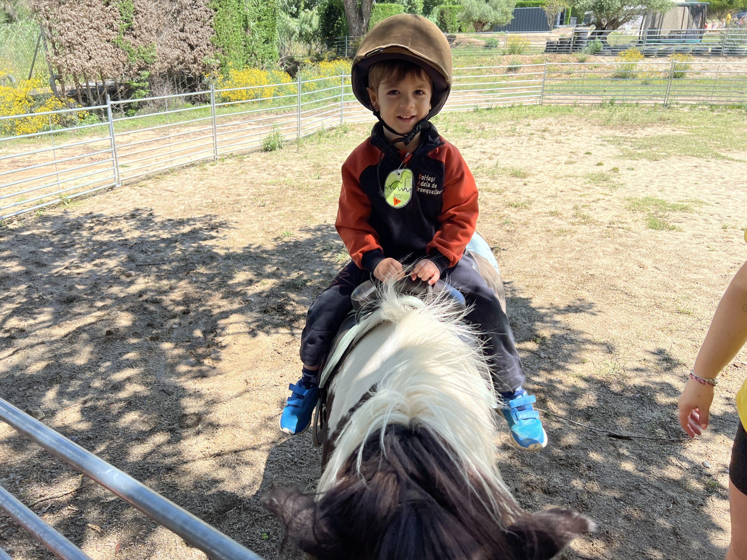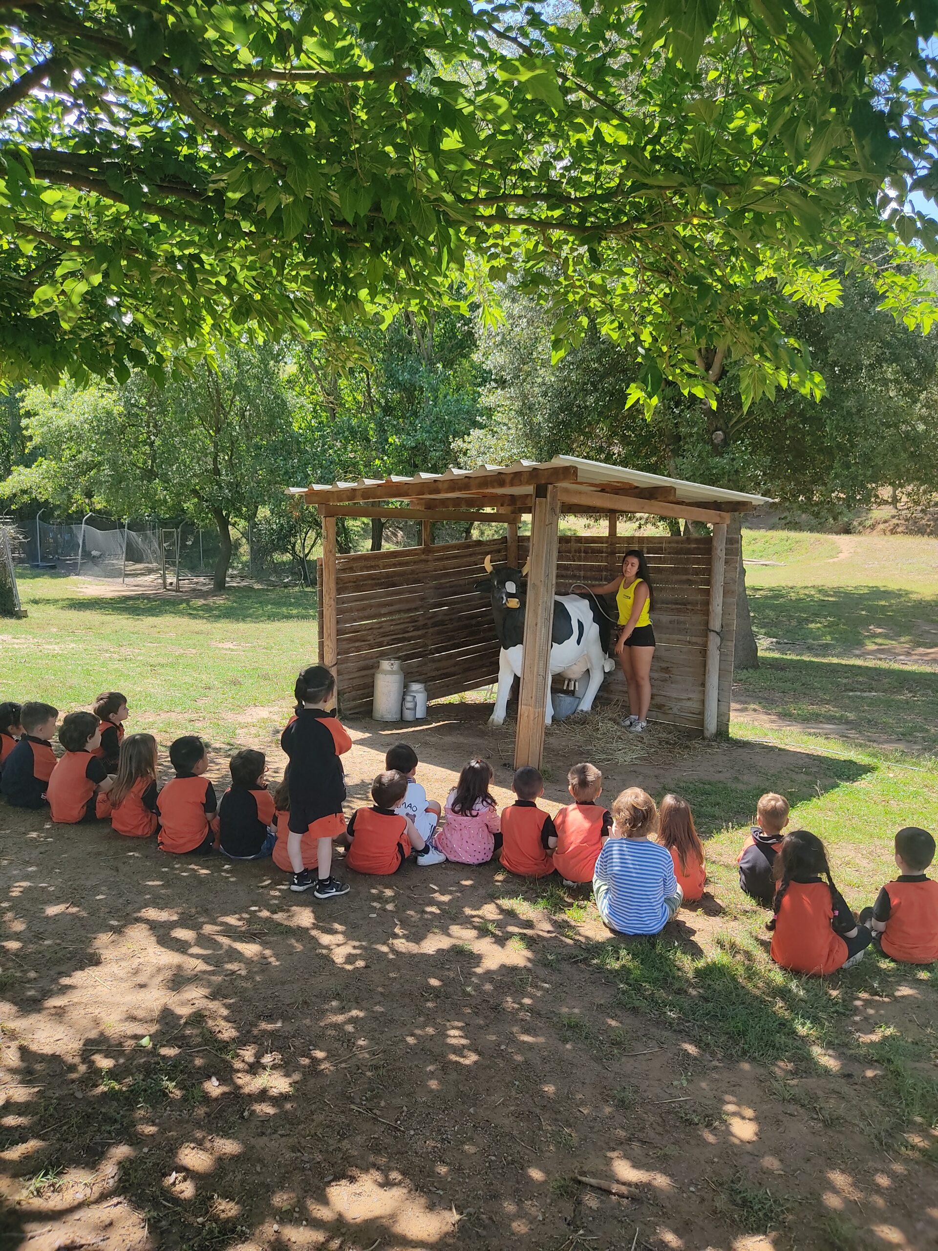 Els infants d’I3 van visitar els animals de granja: oques, porcs, cabres, cavalls, gallines… i, fins i tot, van poder passejar en poni i munyir una vaca, això sí, estava molt quieta perquè tot i que semblava de veritat, no ho era pas.
