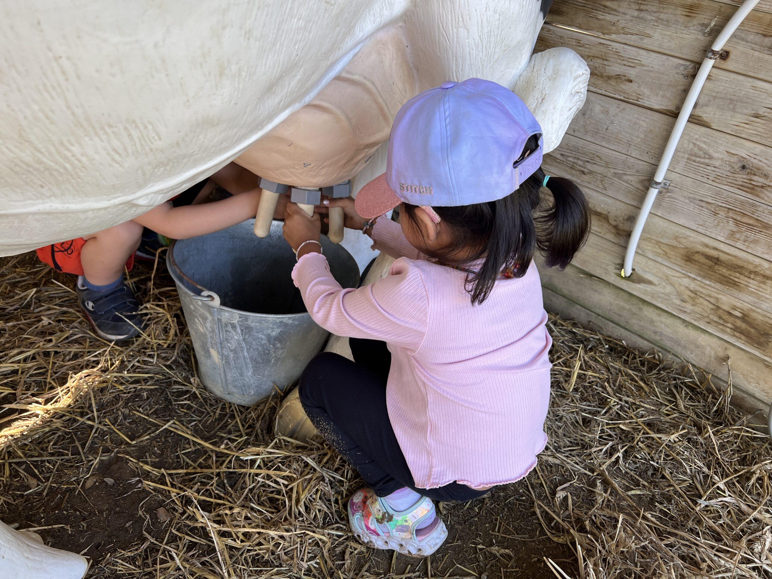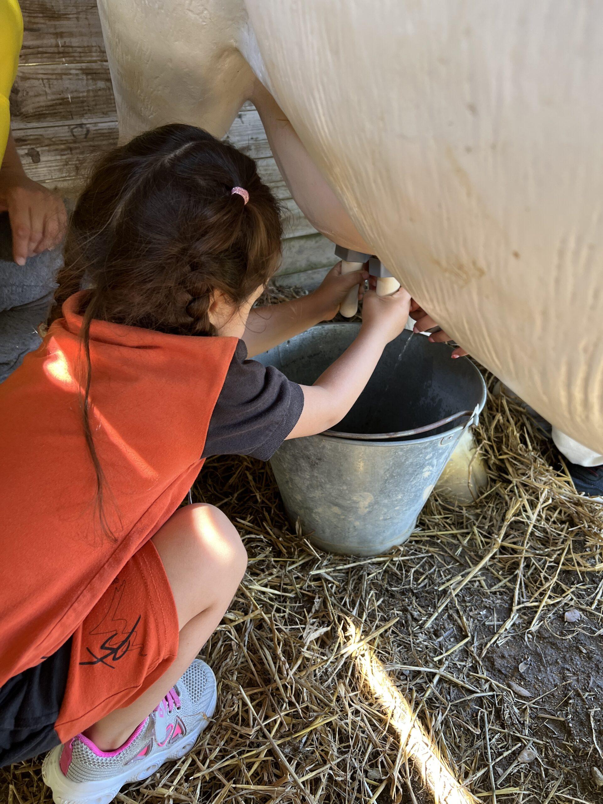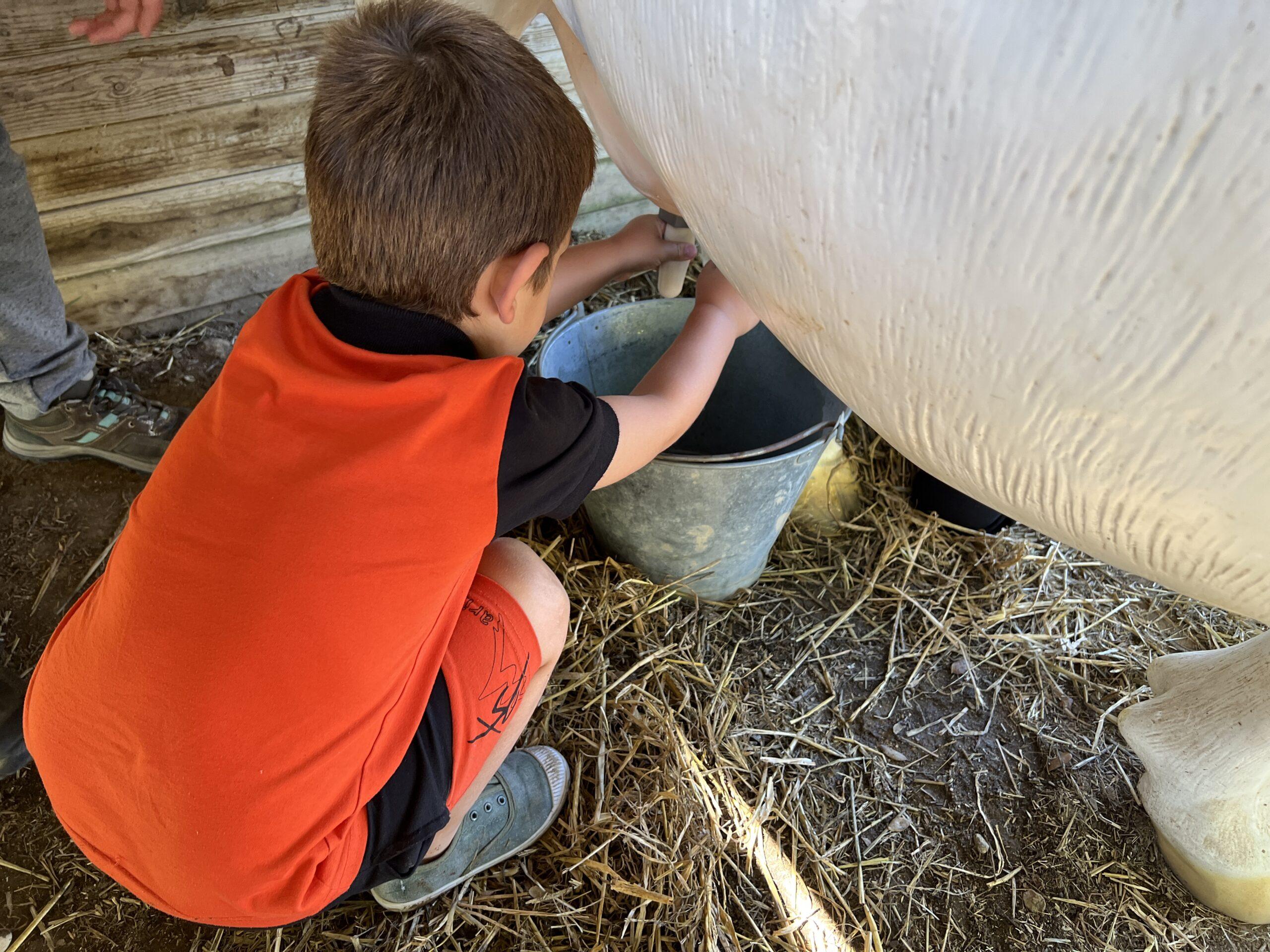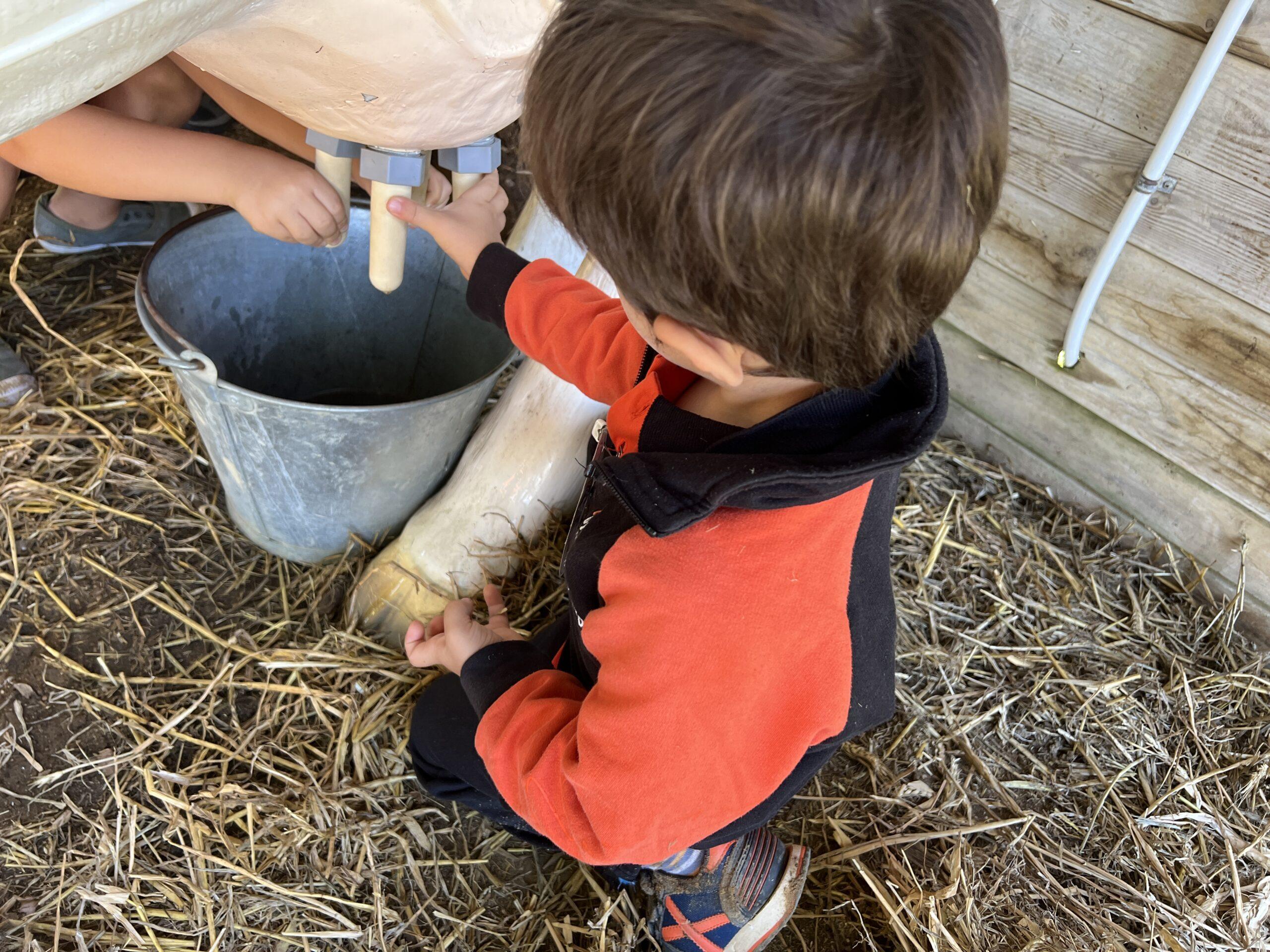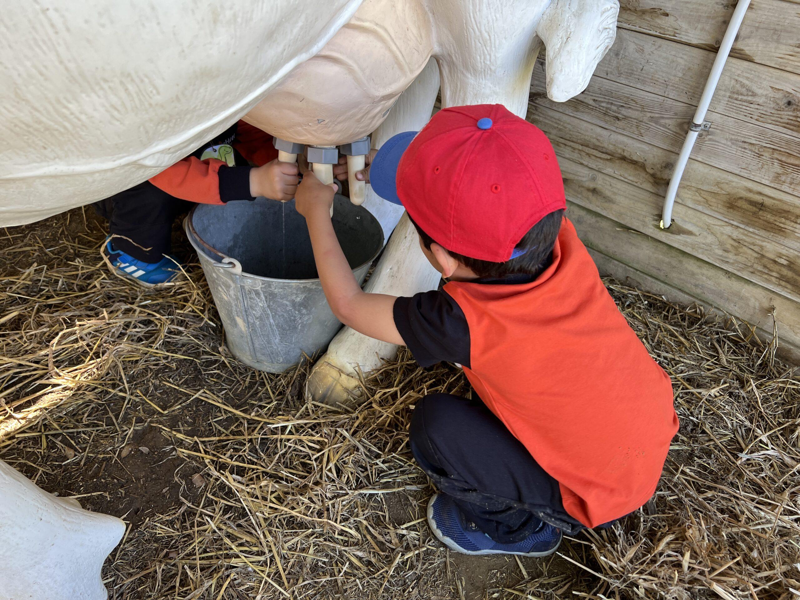 Els infants d’I3 van visitar els animals de granja: oques, porcs, cabres, cavalls, gallines… i, fins i tot, van poder passejar en poni i munyir una vaca, això sí, estava molt quieta perquè tot i que semblava de veritat, no ho era pas.
