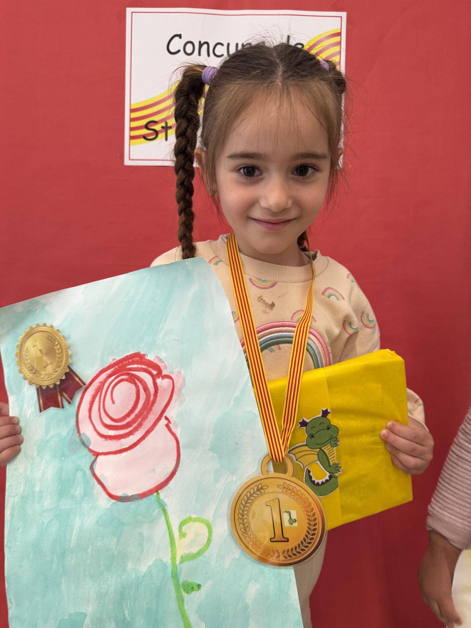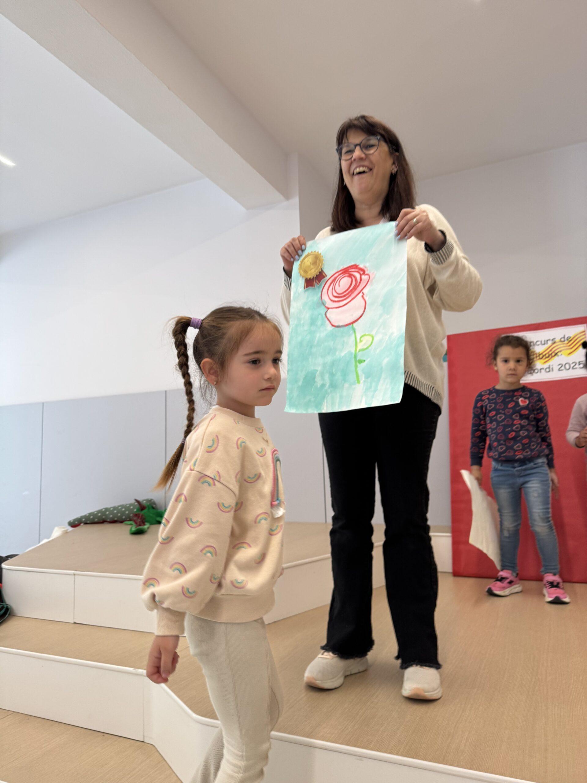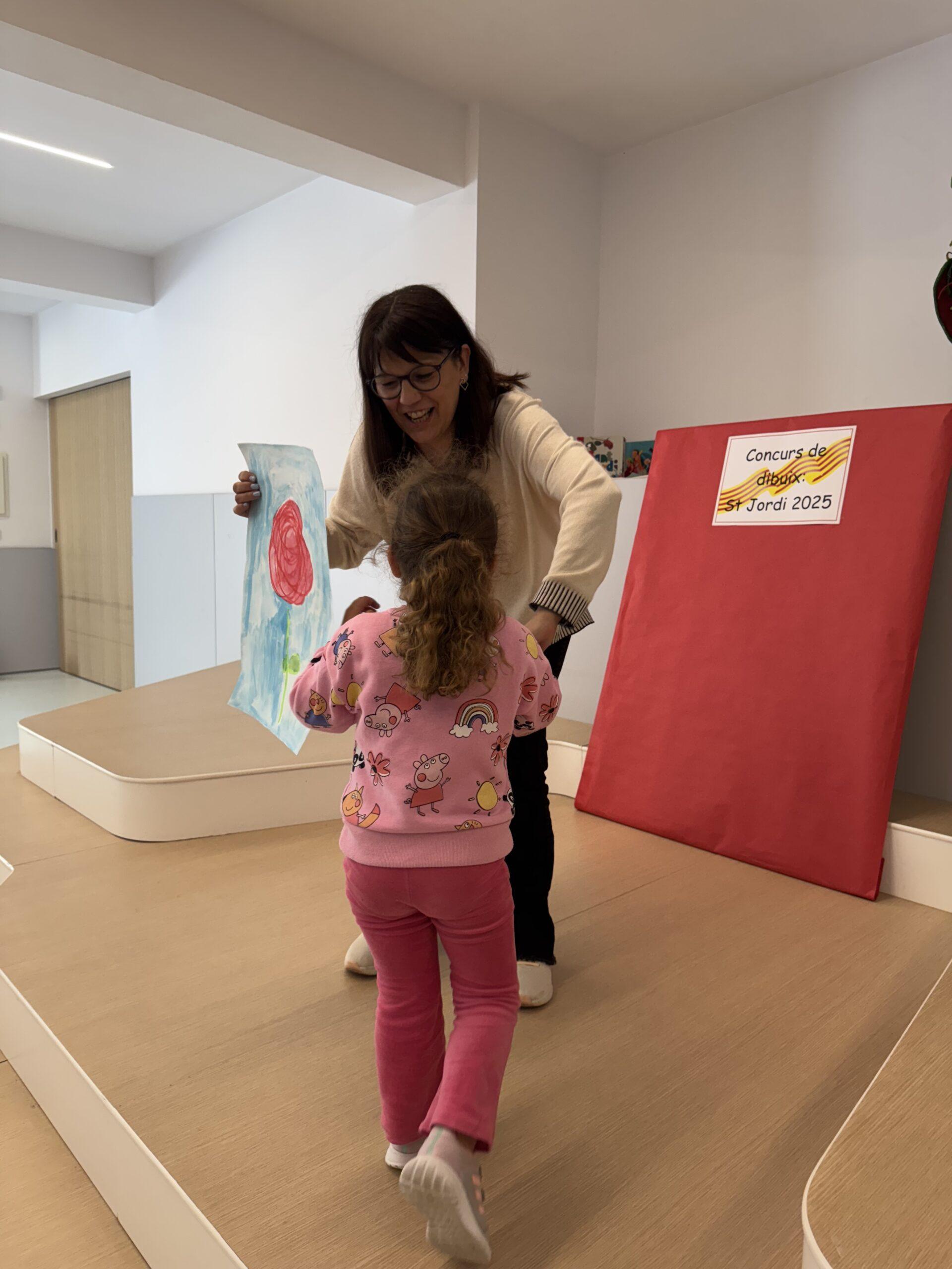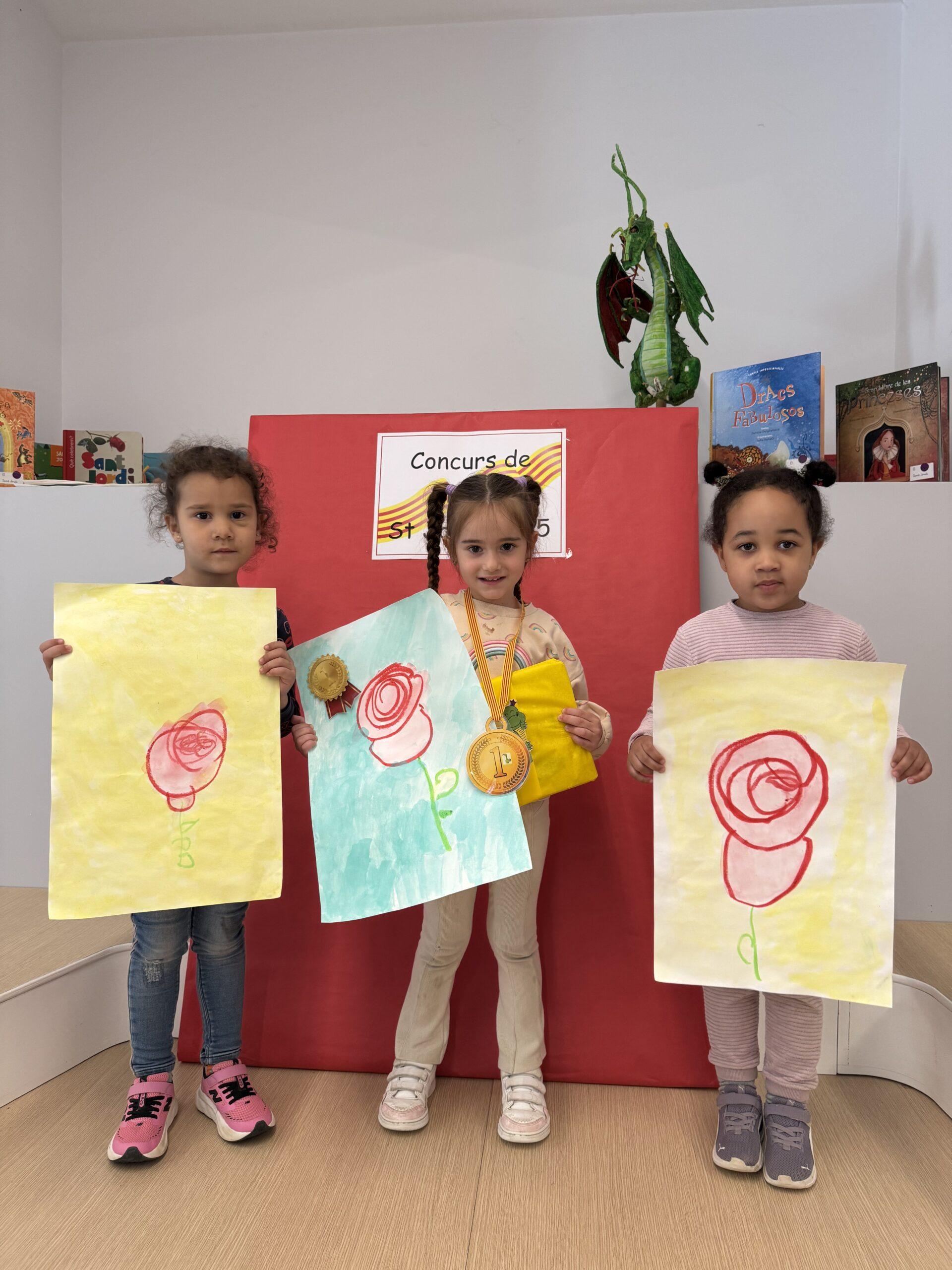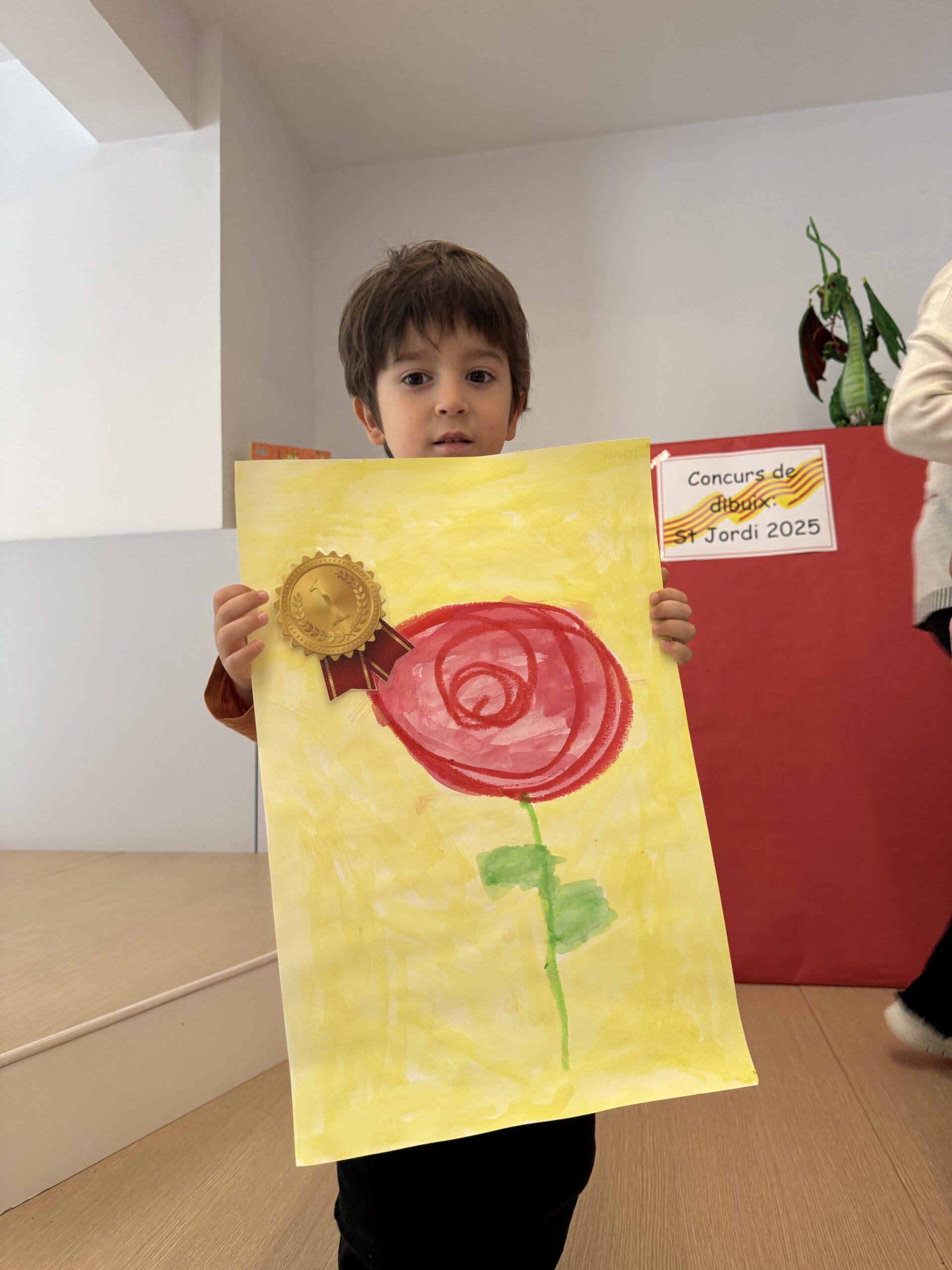 Per finalitzar amb el dia, tot l’alumnat d’aquesta etapa es va reunir a La Plaça. Allà van tenir lloc els Jocs Florals d’Infantil on les guanyadores i els guanyadors del concurs de dibuix de cada classe van sortir a recollir la seva medalla i un llibre per a la classe. Per acabar, els infants més grans del cicle, els d’I5, van fer una representació de la llegenda de Sant Jordi que va donar per acabat un dels dies més bonics de l’any.