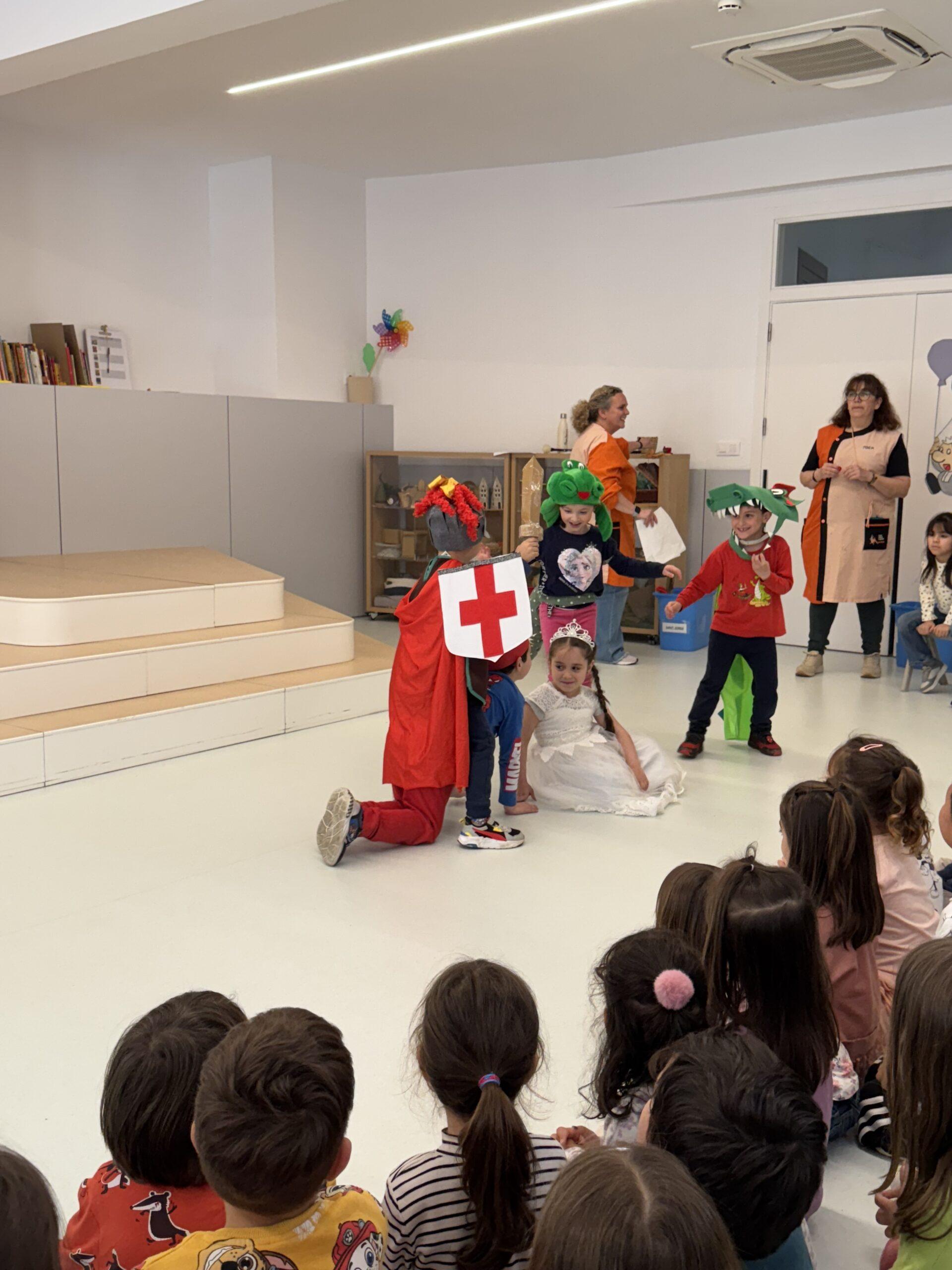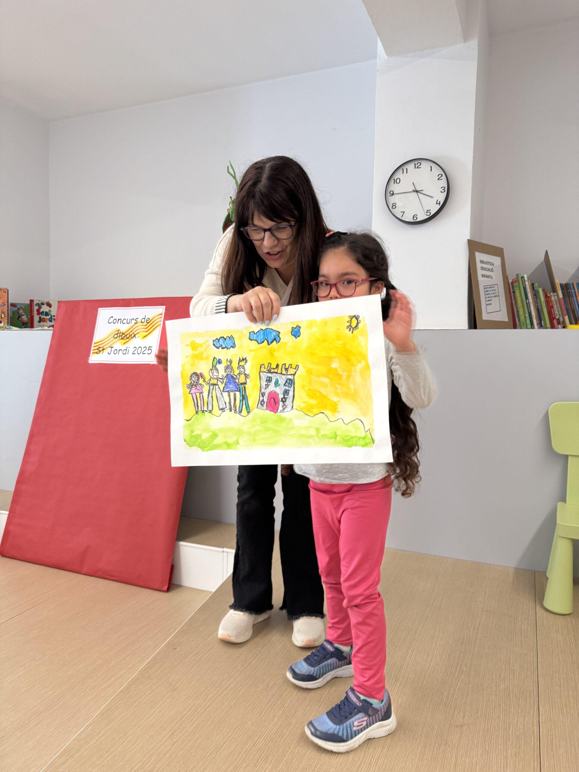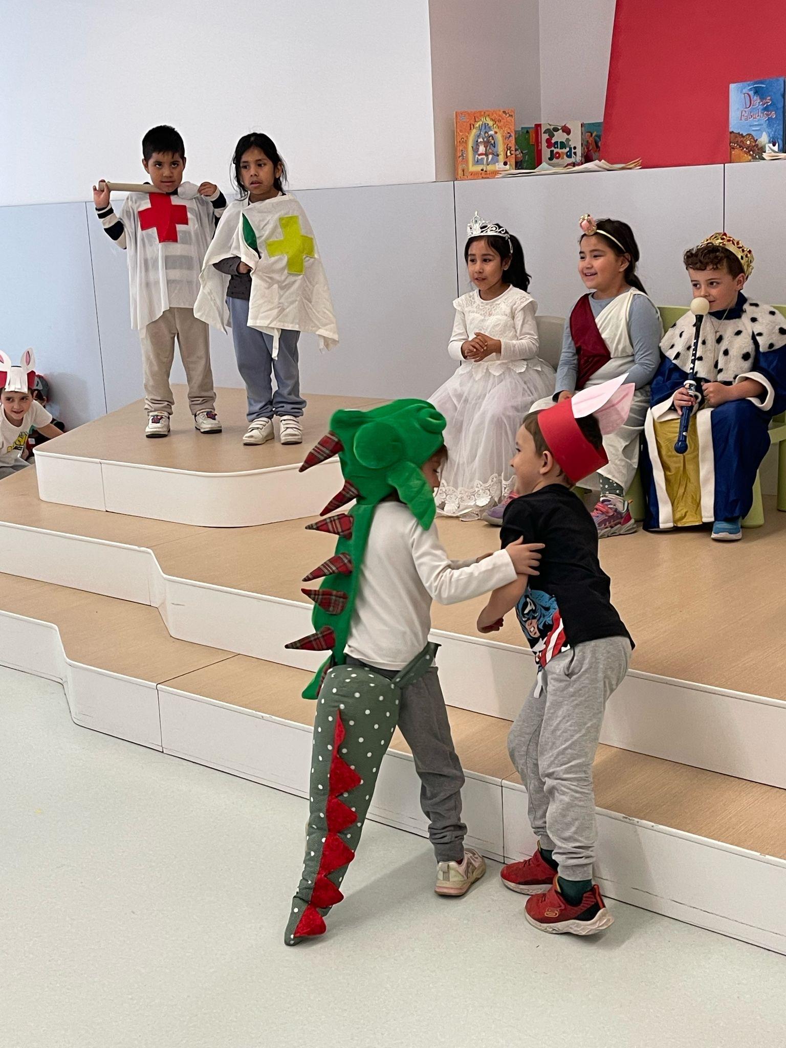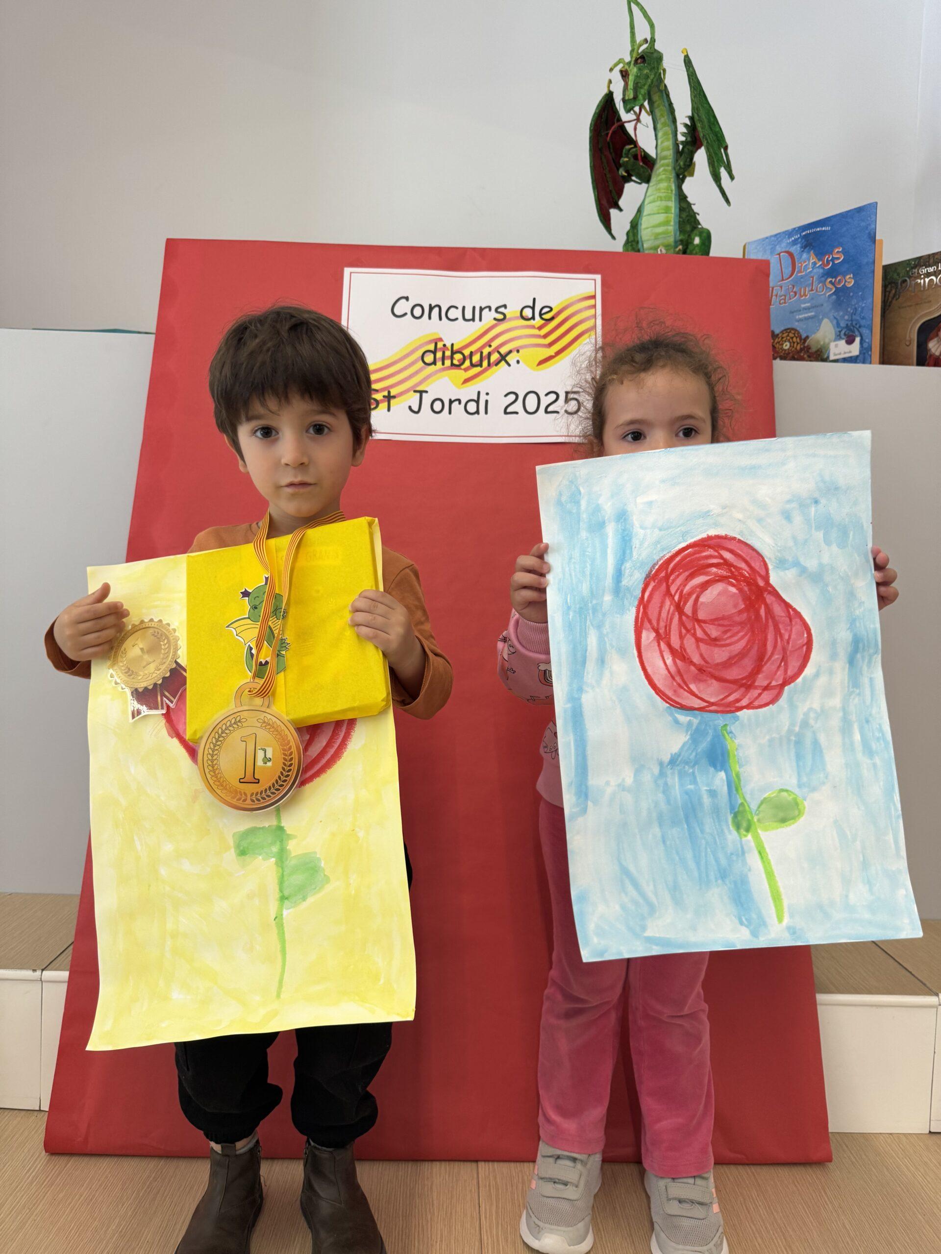 Per finalitzar amb el dia, tot l’alumnat d’aquesta etapa es va reunir a La Plaça. Allà van tenir lloc els Jocs Florals d’Infantil on les guanyadores i els guanyadors del concurs de dibuix de cada classe van sortir a recollir la seva medalla i un llibre per a la classe. Per acabar, els infants més grans del cicle, els d’I5, van fer una representació de la llegenda de Sant Jordi que va donar per acabat un dels dies més bonics de l’any.