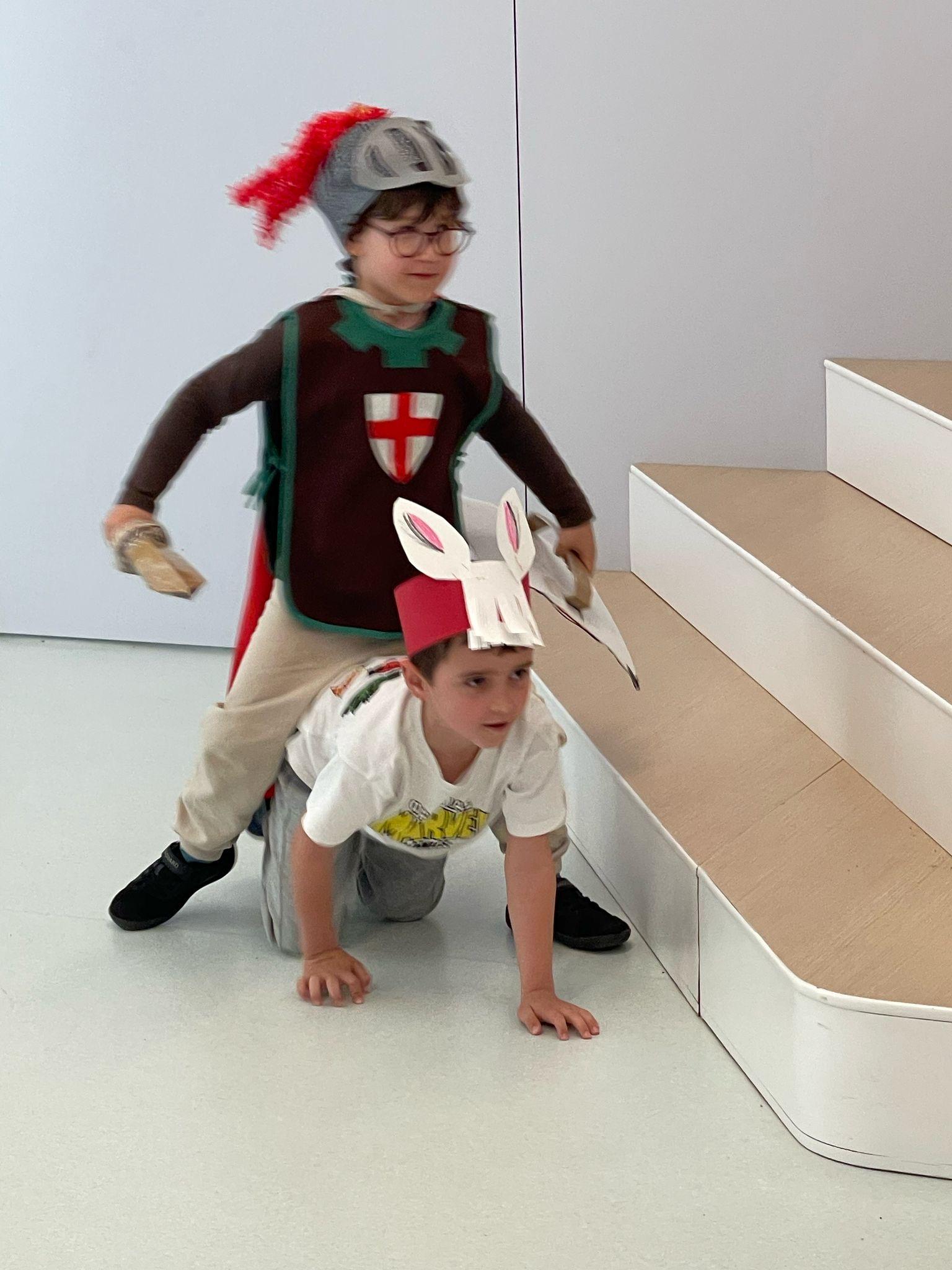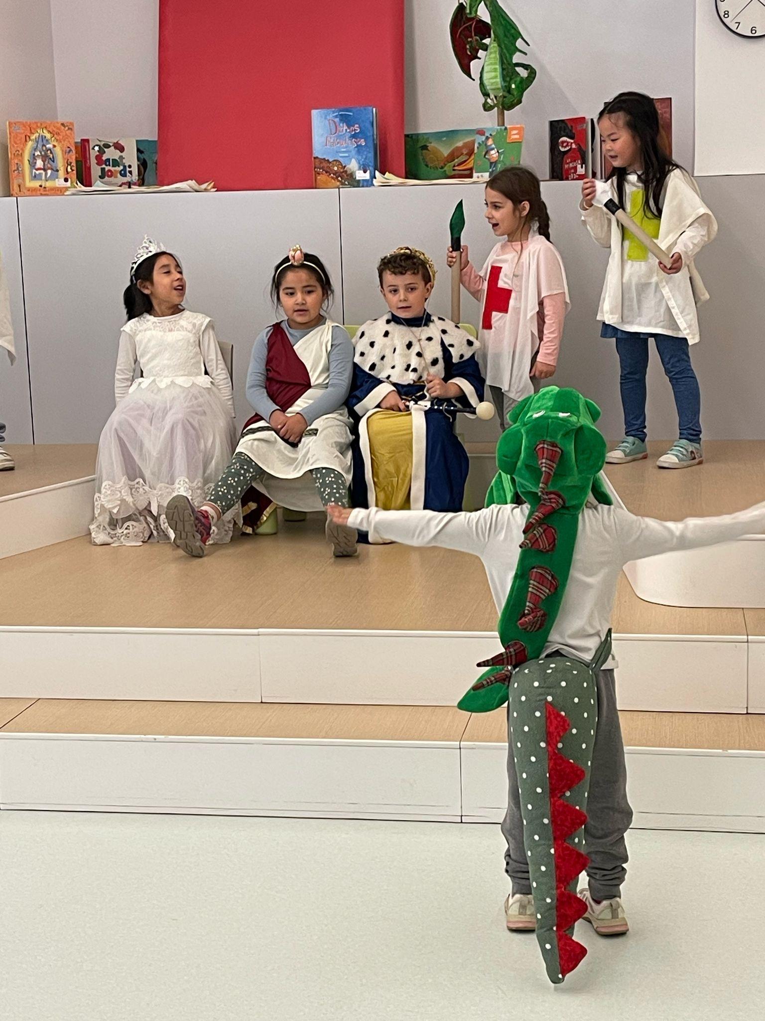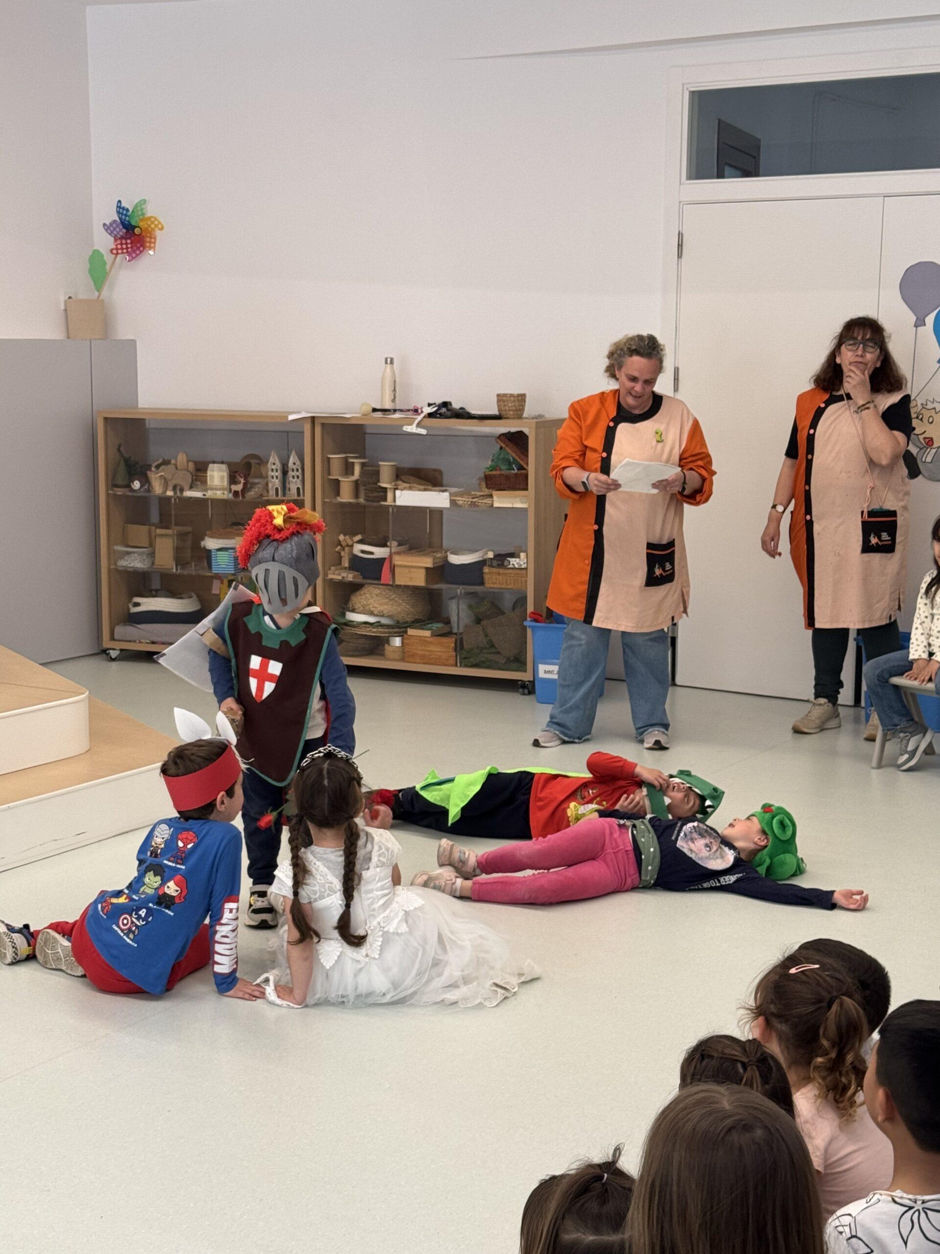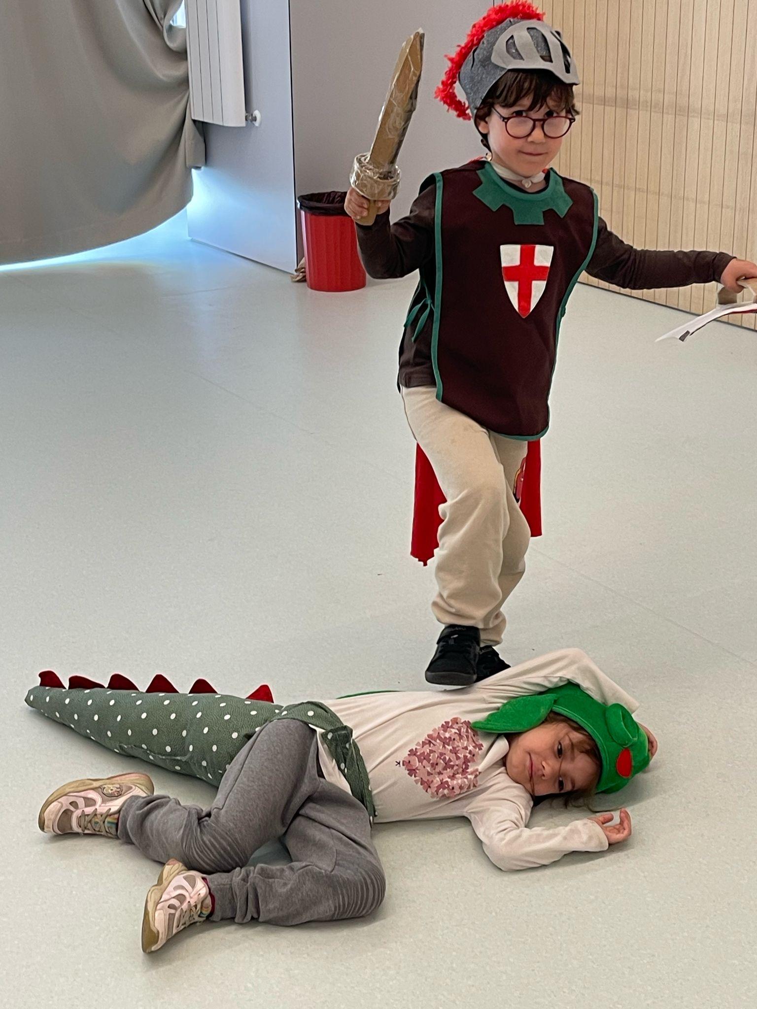 Per finalitzar amb el dia, tot l’alumnat d’aquesta etapa es va reunir a La Plaça. Allà van tenir lloc els Jocs Florals d’Infantil on les guanyadores i els guanyadors del concurs de dibuix de cada classe van sortir a recollir la seva medalla i un llibre per a la classe. Per acabar, els infants més grans del cicle, els d’I5, van fer una representació de la llegenda de Sant Jordi que va donar per acabat un dels dies més bonics de l’any.