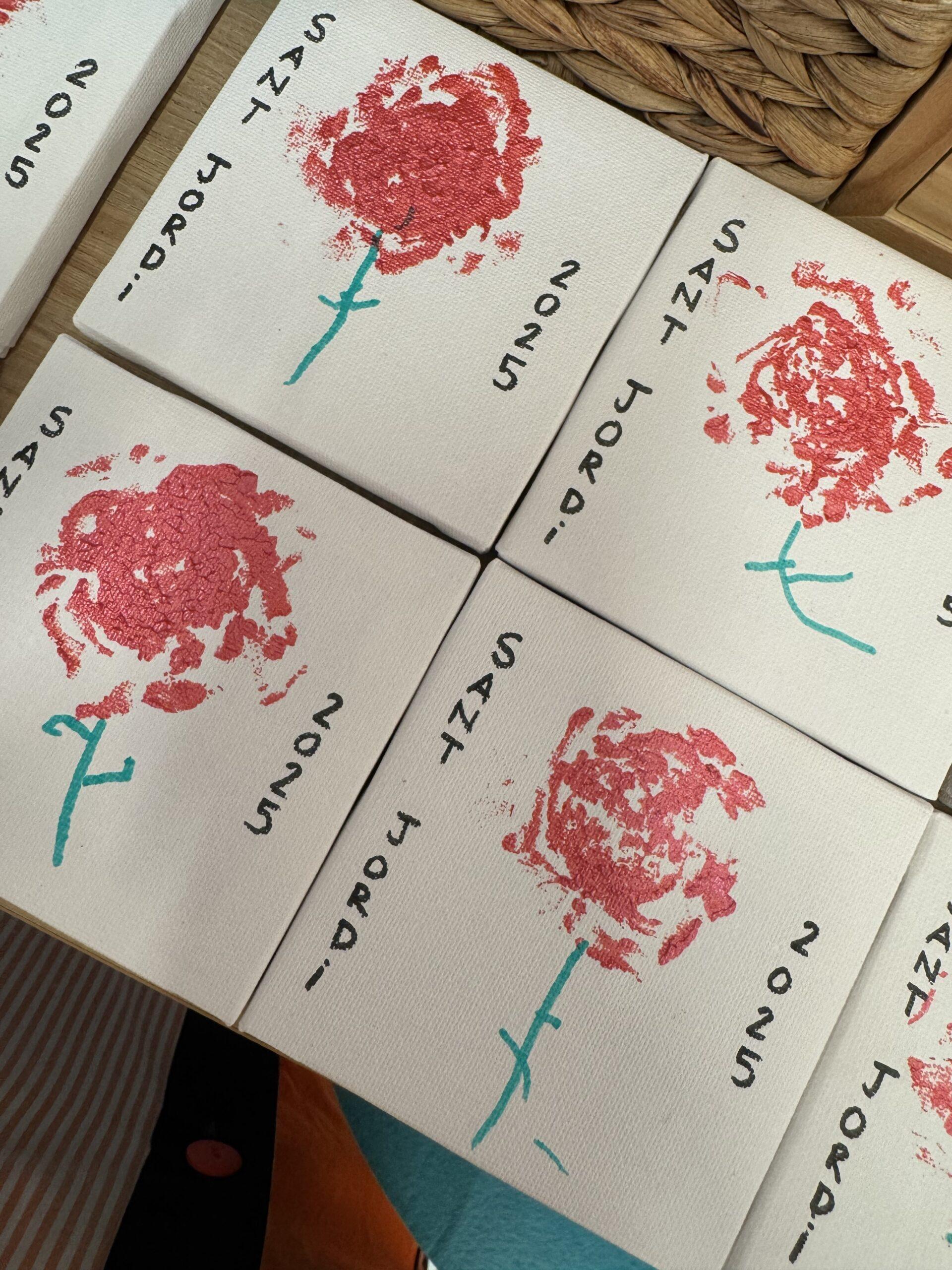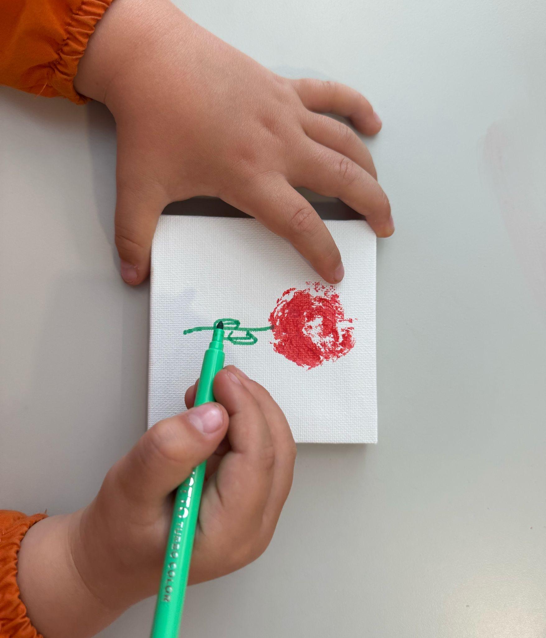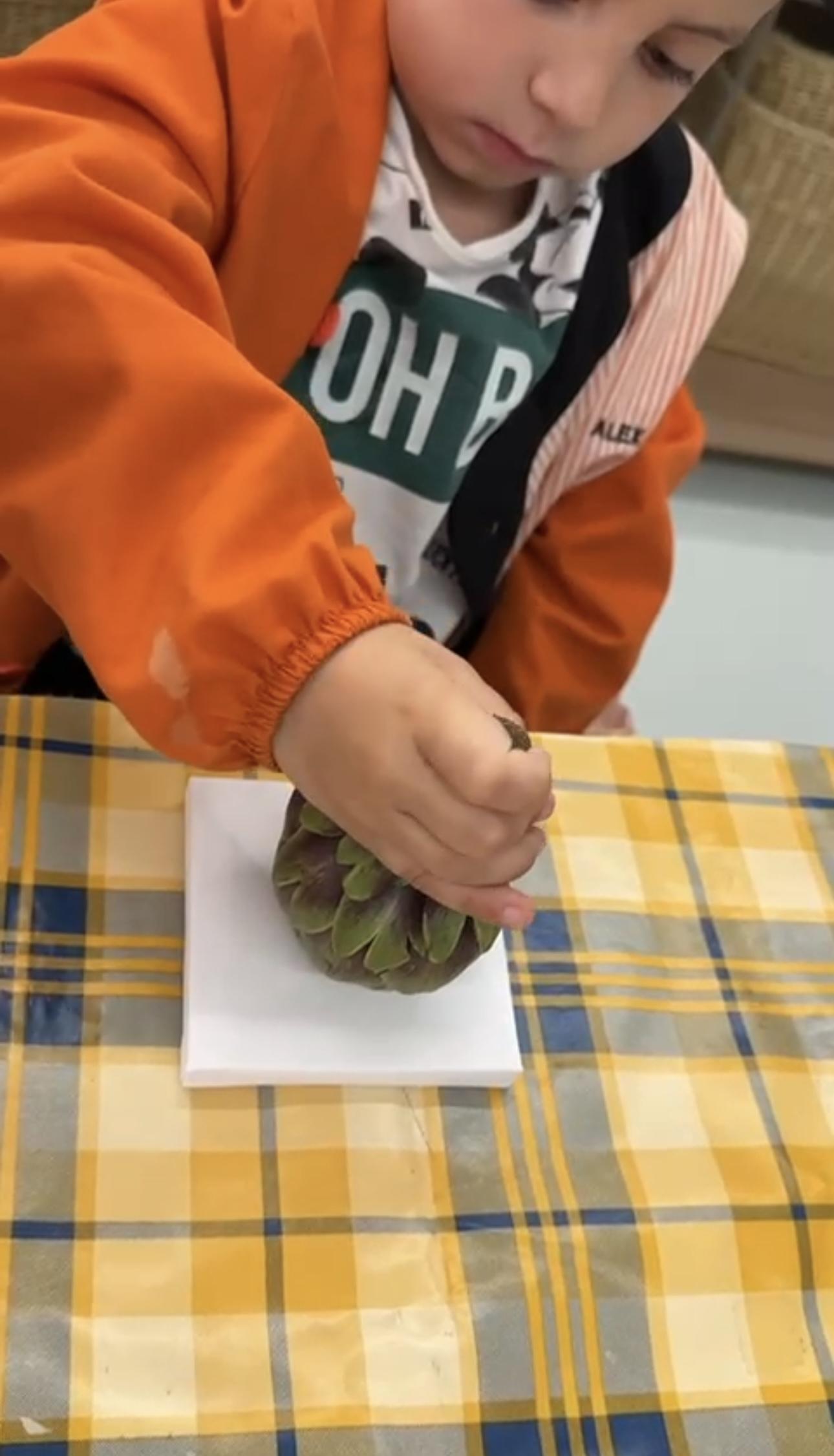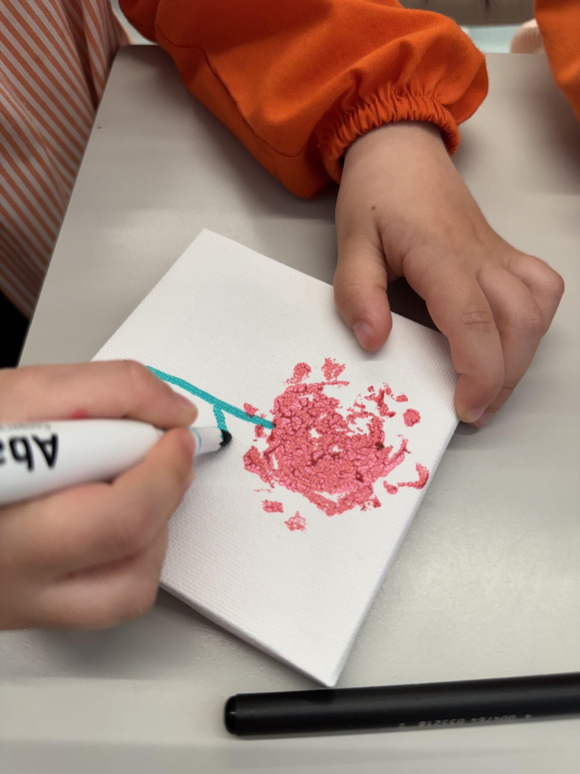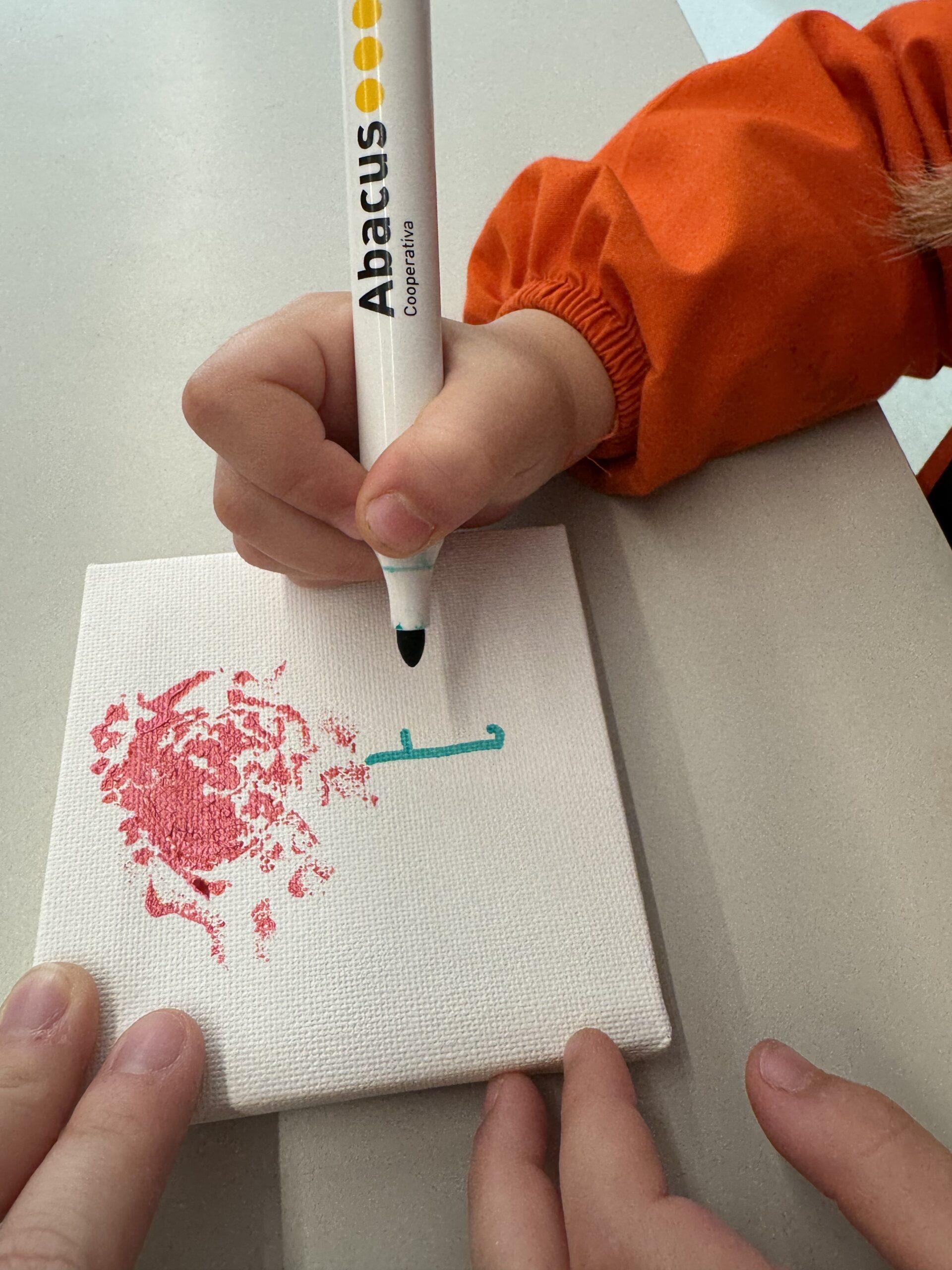 I3 i I4 van estampar una carxofa i després van acabar de fer la tija amb retolador. En canvi, els nens i nenes d’I5 ho van fer amb una plantilla i van escriure-hi “Sant Jordi”. Va quedar un detall molt bonic!