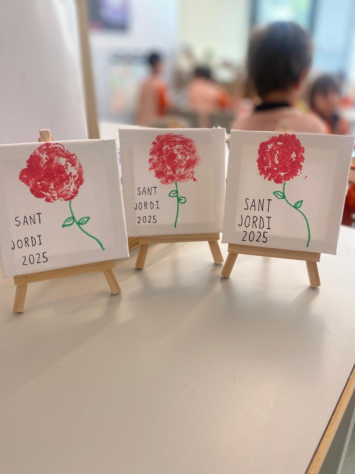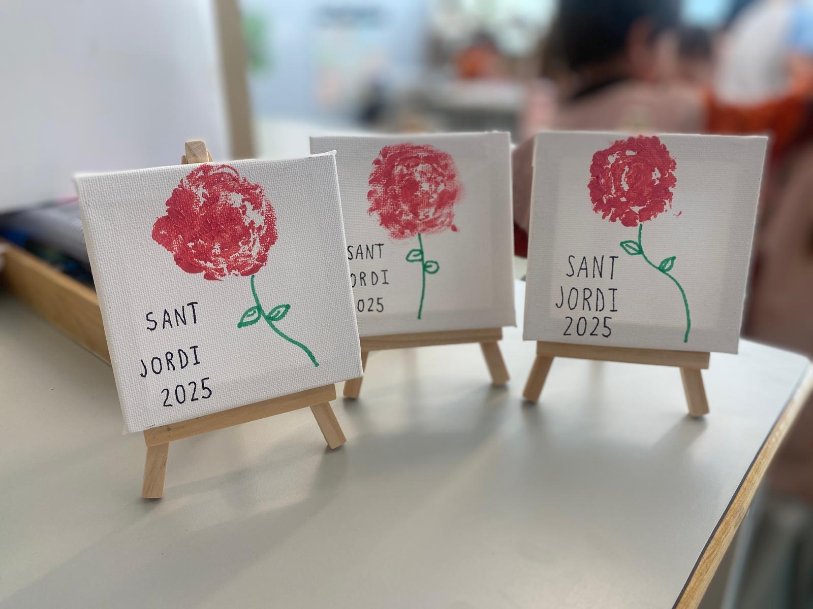 Per celebrar la diada de Sant Jordi a l’etapa d’Educació Infantil, els infants van confeccionar el seu quadre per emportar-se’l a casa.