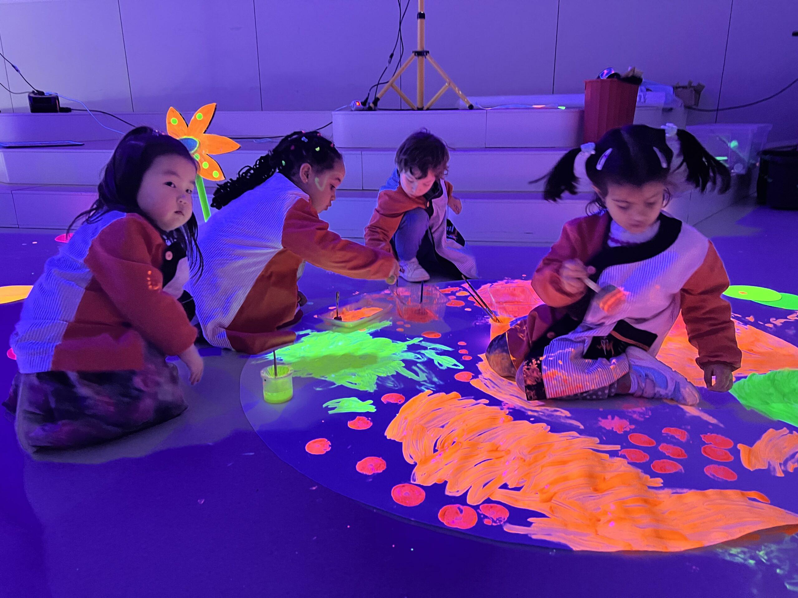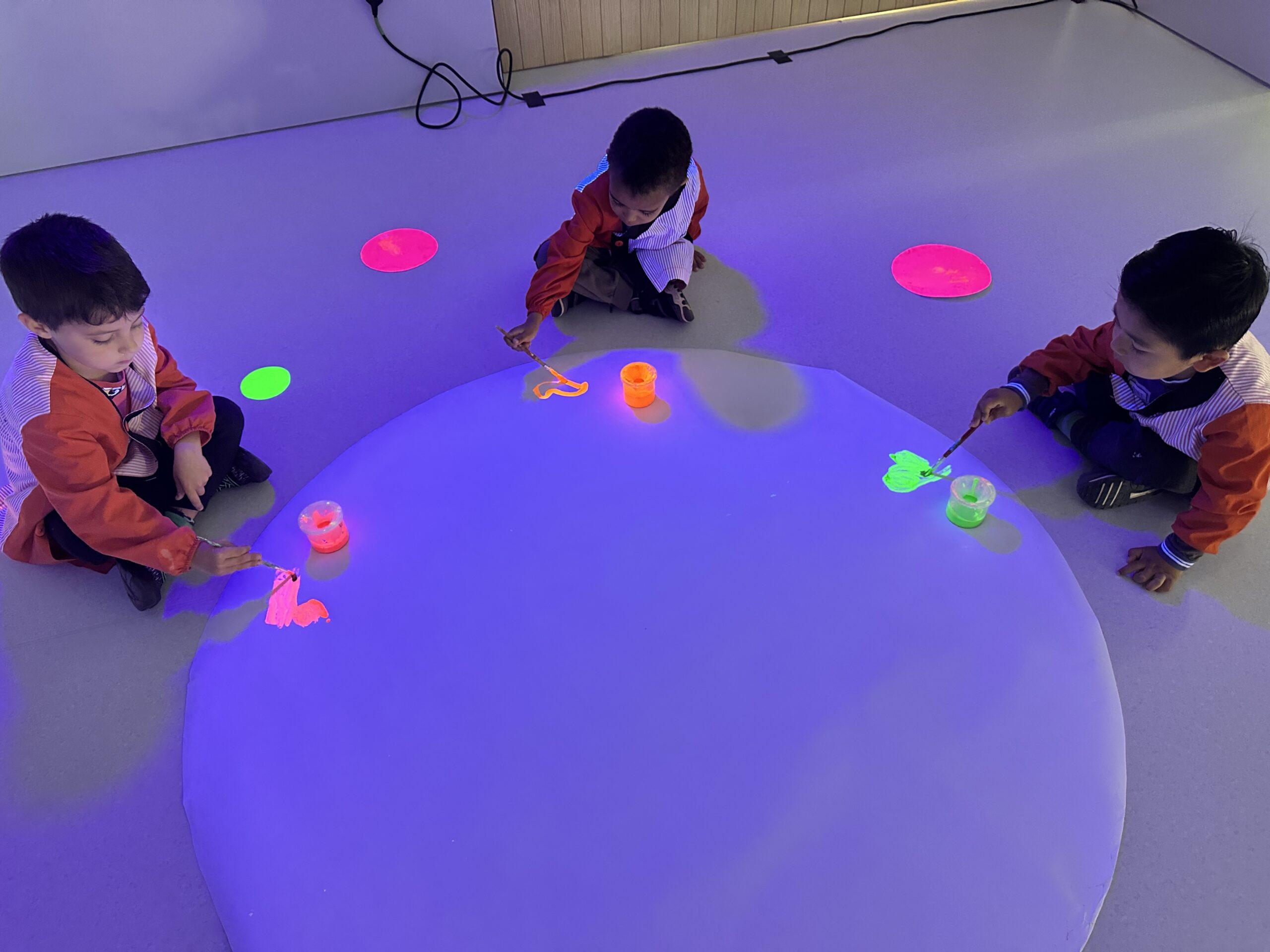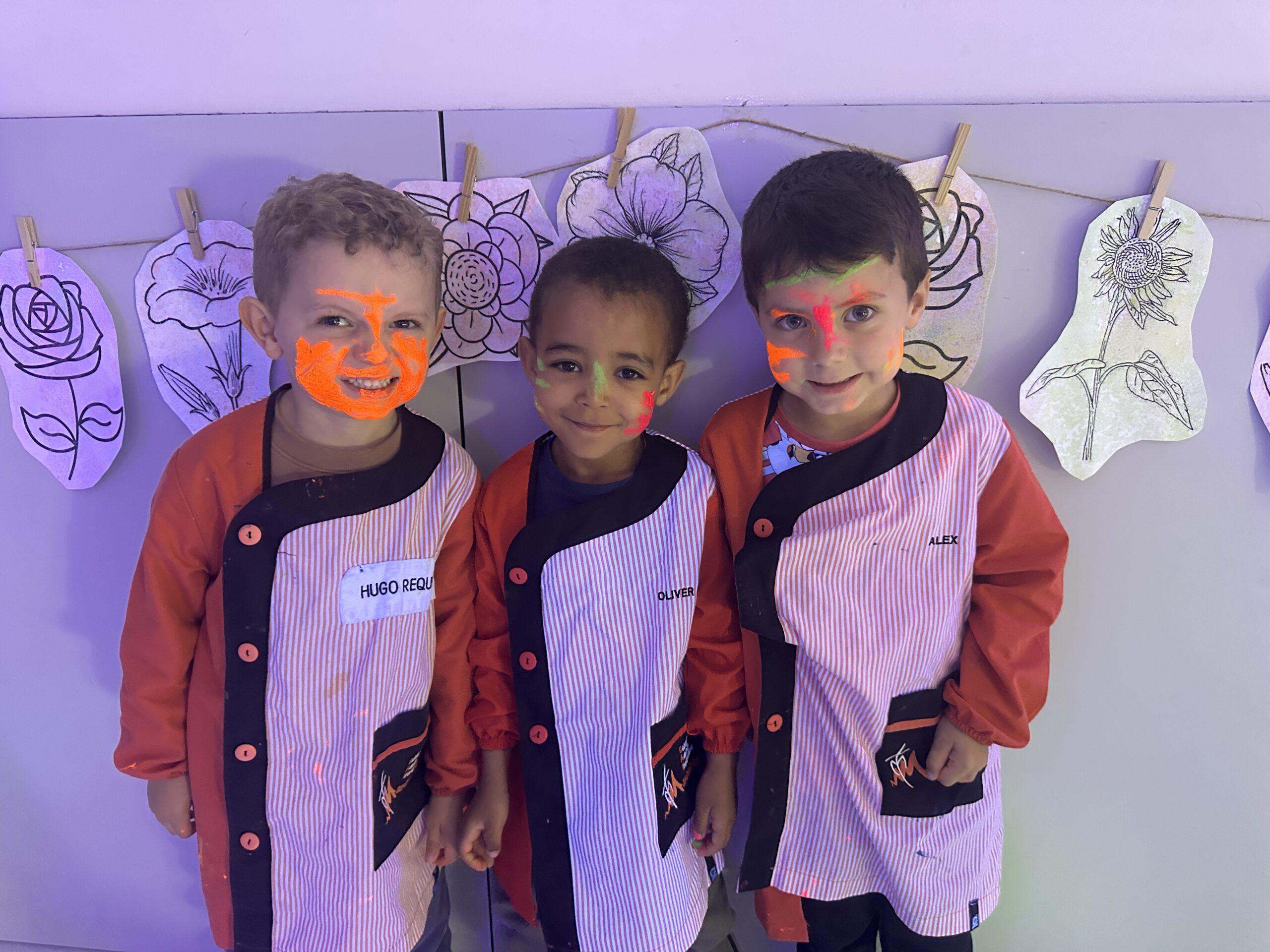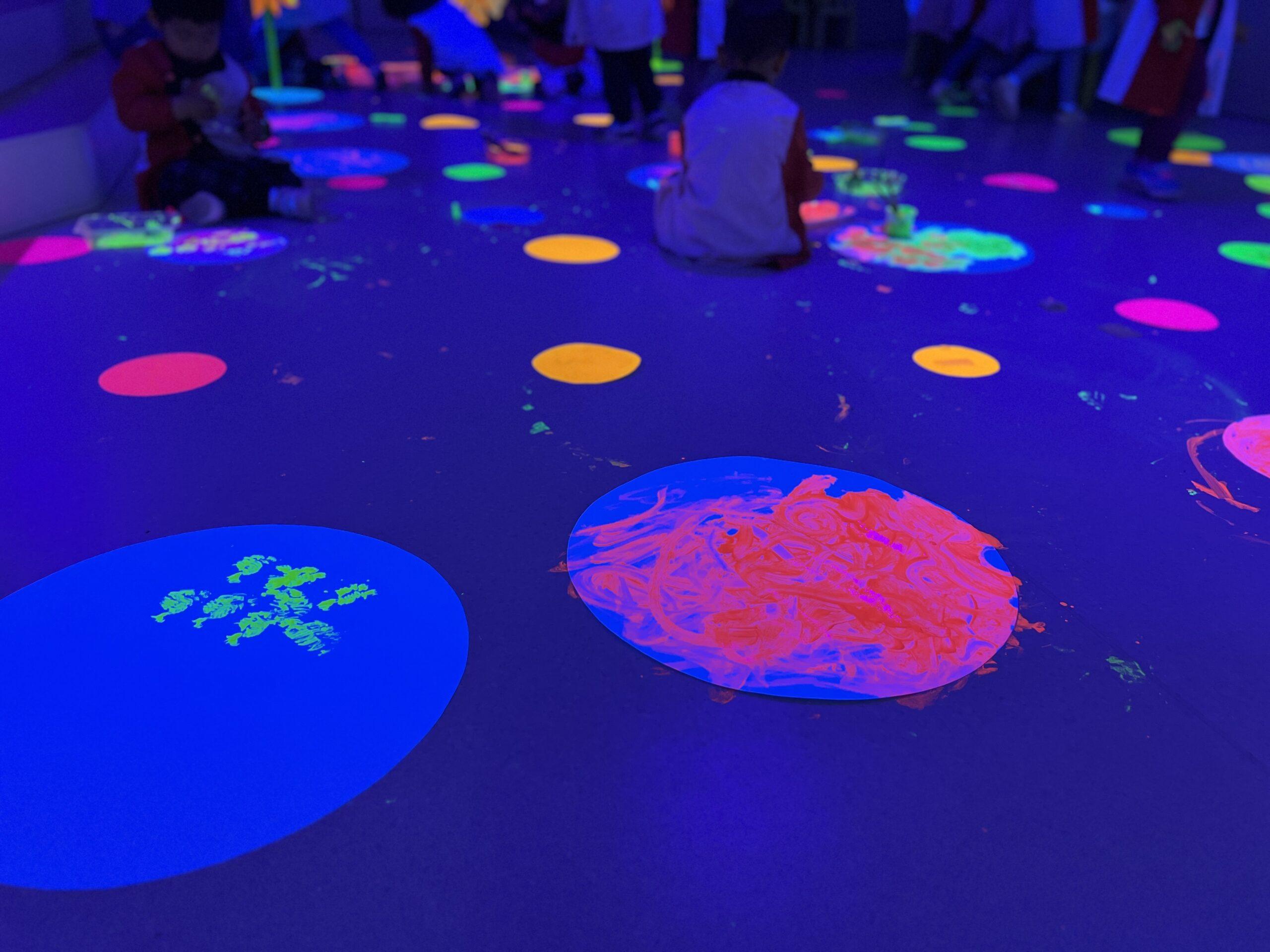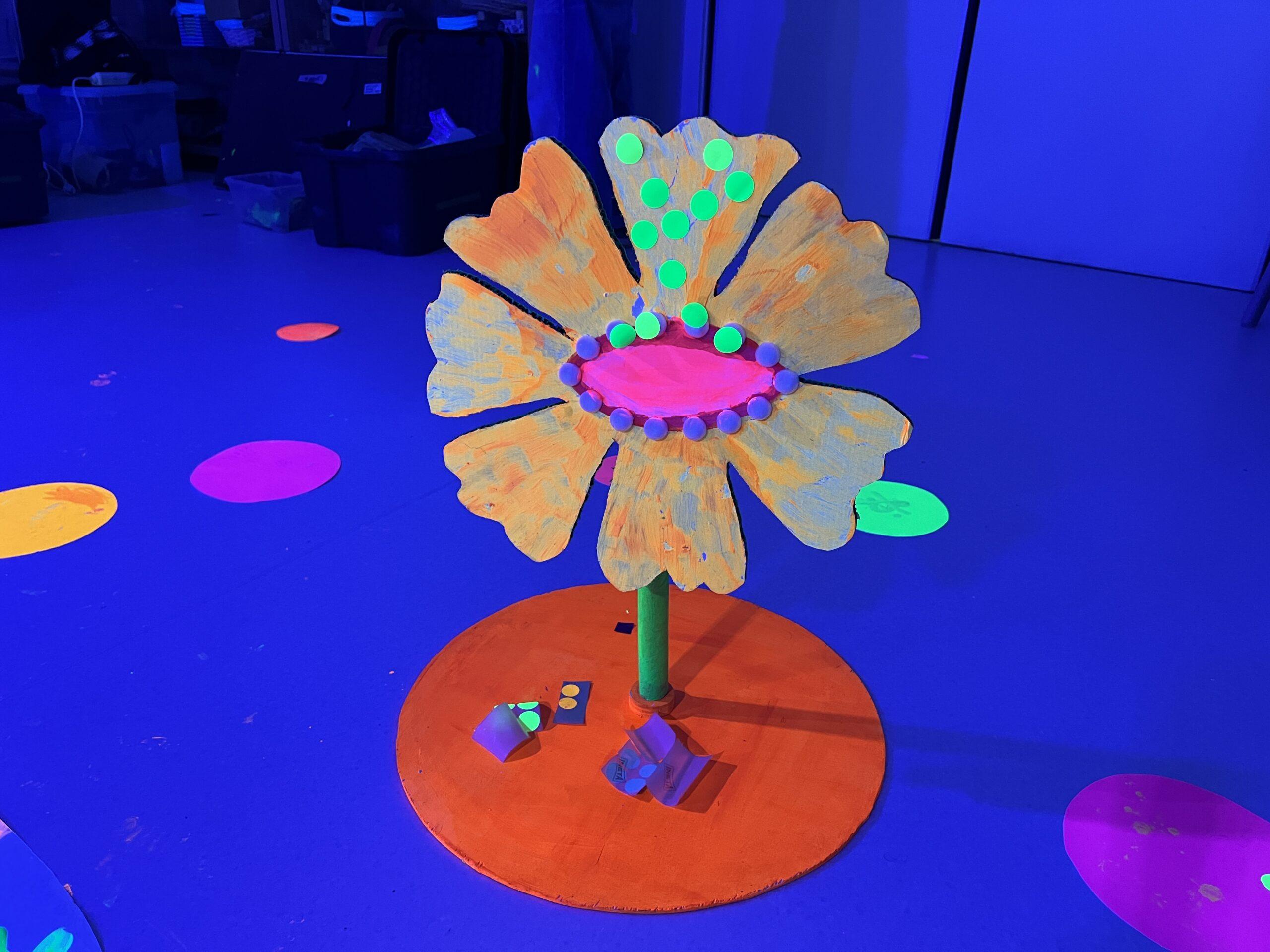 Així doncs, les noies de Koala For Kids ens han ajudat a profunditzar i continuar treballant la Yayoi. Ens van fer una recreació de l’univers creatiu de l’artista a través de tot l’espai. Mitjançant un focus de llum ultraviolada, flors, com les que feia la Yayoi, i cercles de colors, van convidar els nens i a les nenes a entrar dins de la instal·lació artística creada simbolitzant l’entrada a una de les obres d’aquesta artista. Dins d’aquest espai, els infants van poder pintar, dibuixar i maquillar-se amb pintura fluorescent tal com feia l’artista. Va ser una experiència molt divertida i mireu quines imatges més boniques van quedar!