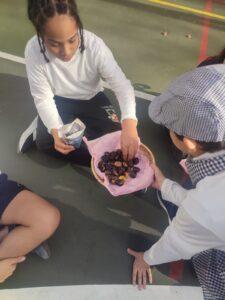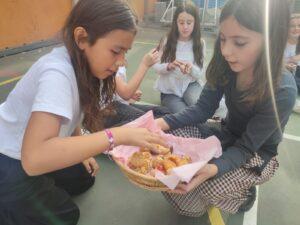Divendres passat, l’alumnat d’educació primària, va gaudir de la festa de La Castanyada. Qui va voler, va venir disfressat de castanyer o castanyera… també hi havia algun marrameu i marrameua!! Per començar, els alumnes de 5è van donar pas a la celebració. Després, vam escoltar cançons de la tardor i la Castanyada mentre els castanyers i castanyeres de cada grup ens repartien panellets i castanyes per berenar! Finalment, vam baixar al gimnàs per lluir les nostres danses de Castanyada preparades des de les sessions de música. Ens ho vam passar molt bé i vam gaudir plegats d’aquesta tradició!