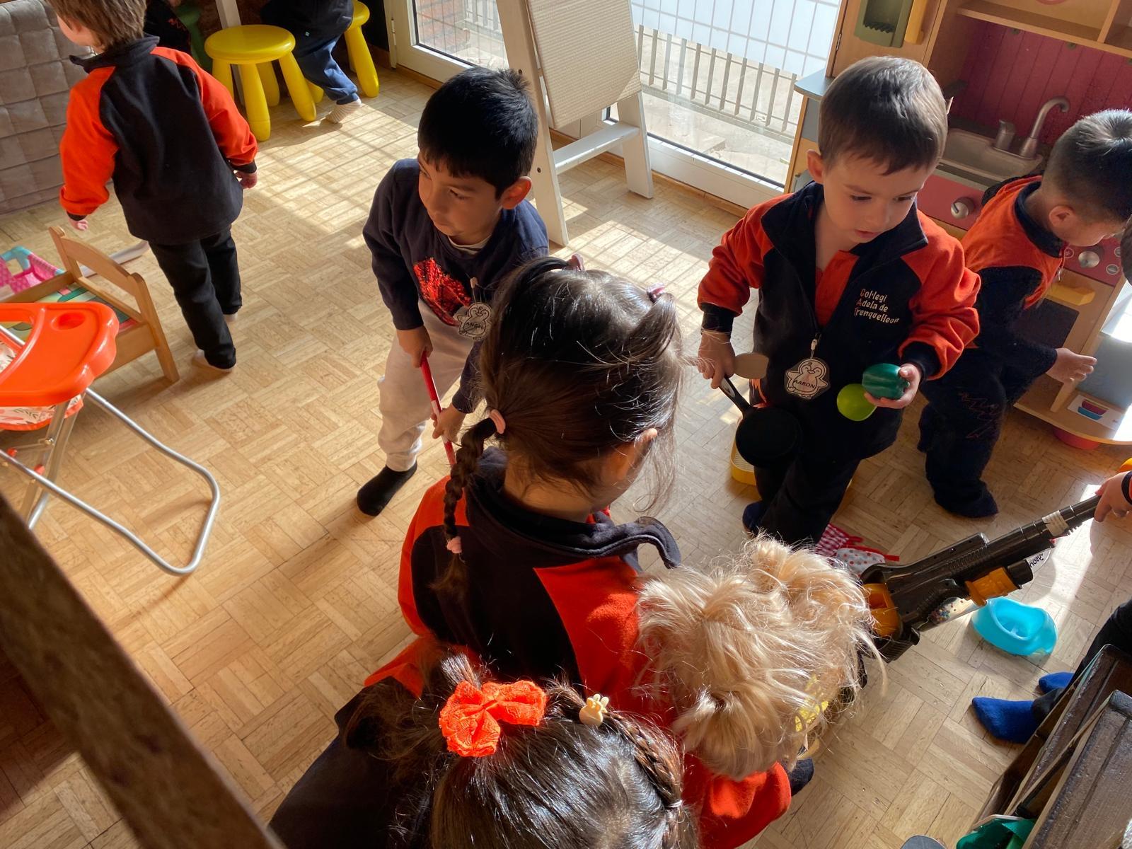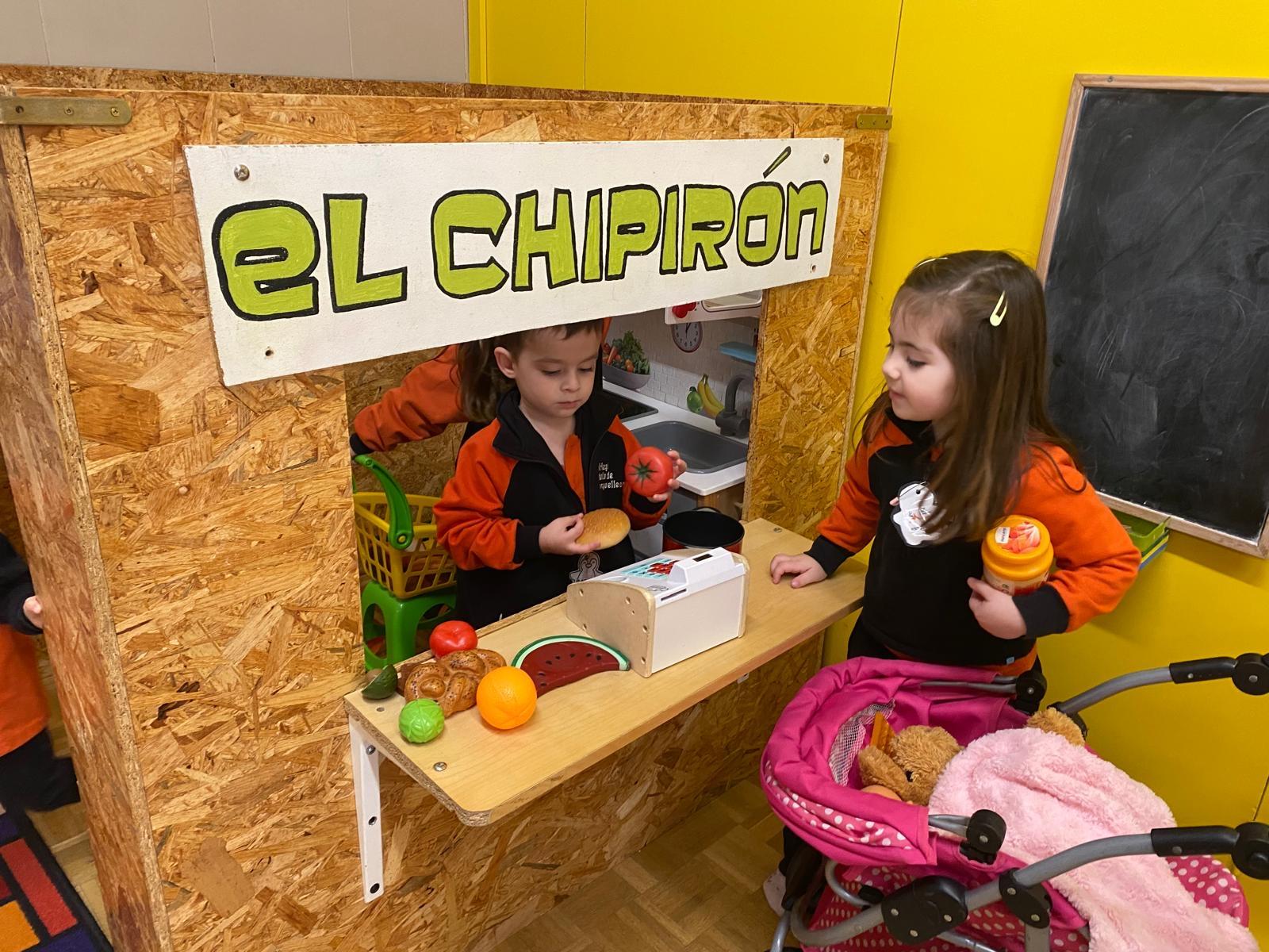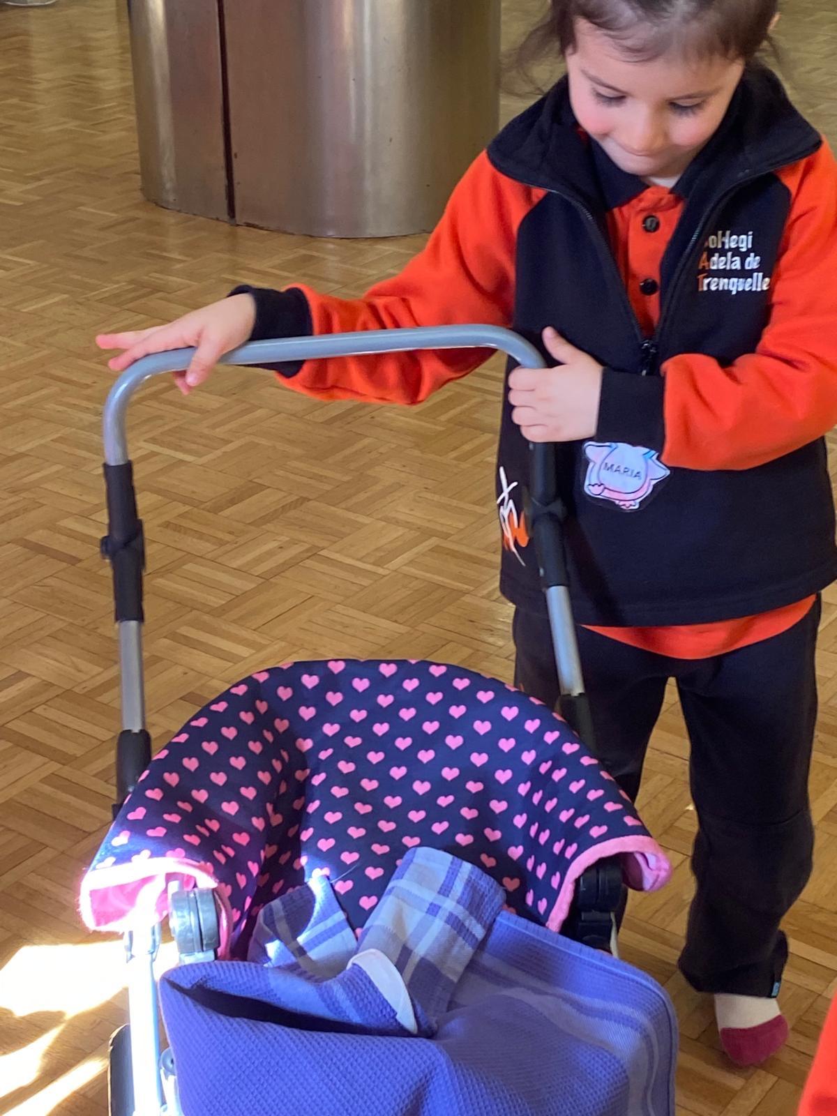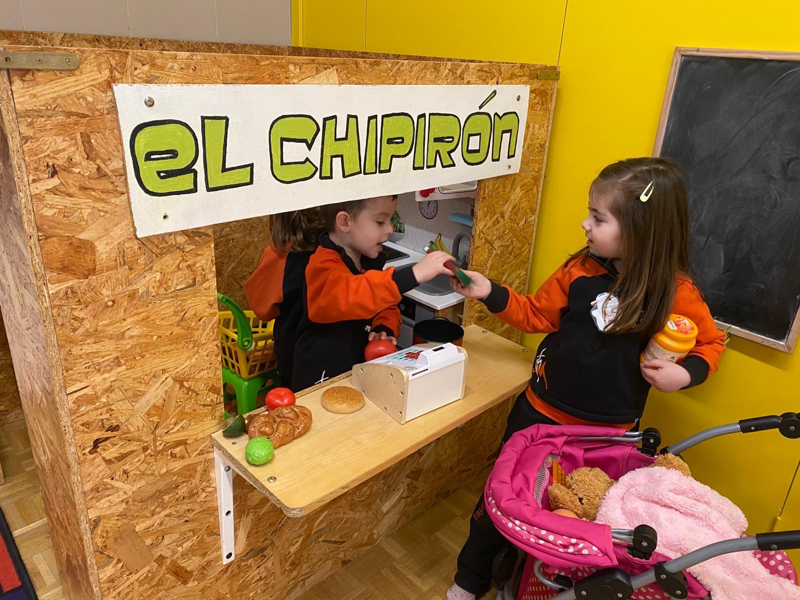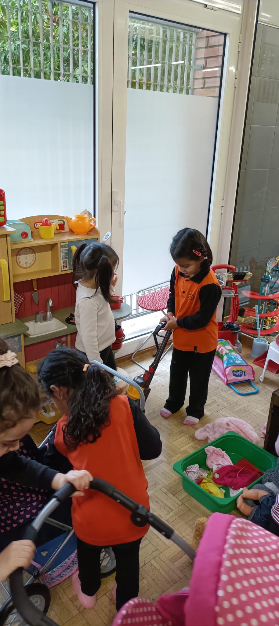 Allà van trobar-hi propostes molt variades. Van poder endinsar-se en el joc simbòlic amb la botigueta, la cuineta, la perruqueria i l’espai de metges. També van jugar a fer veure que treballaven en una oficina amb ordinadors i telèfons. Amb l’ajuda de les disfresses van acabar de donar vida a totes aquestes històries.