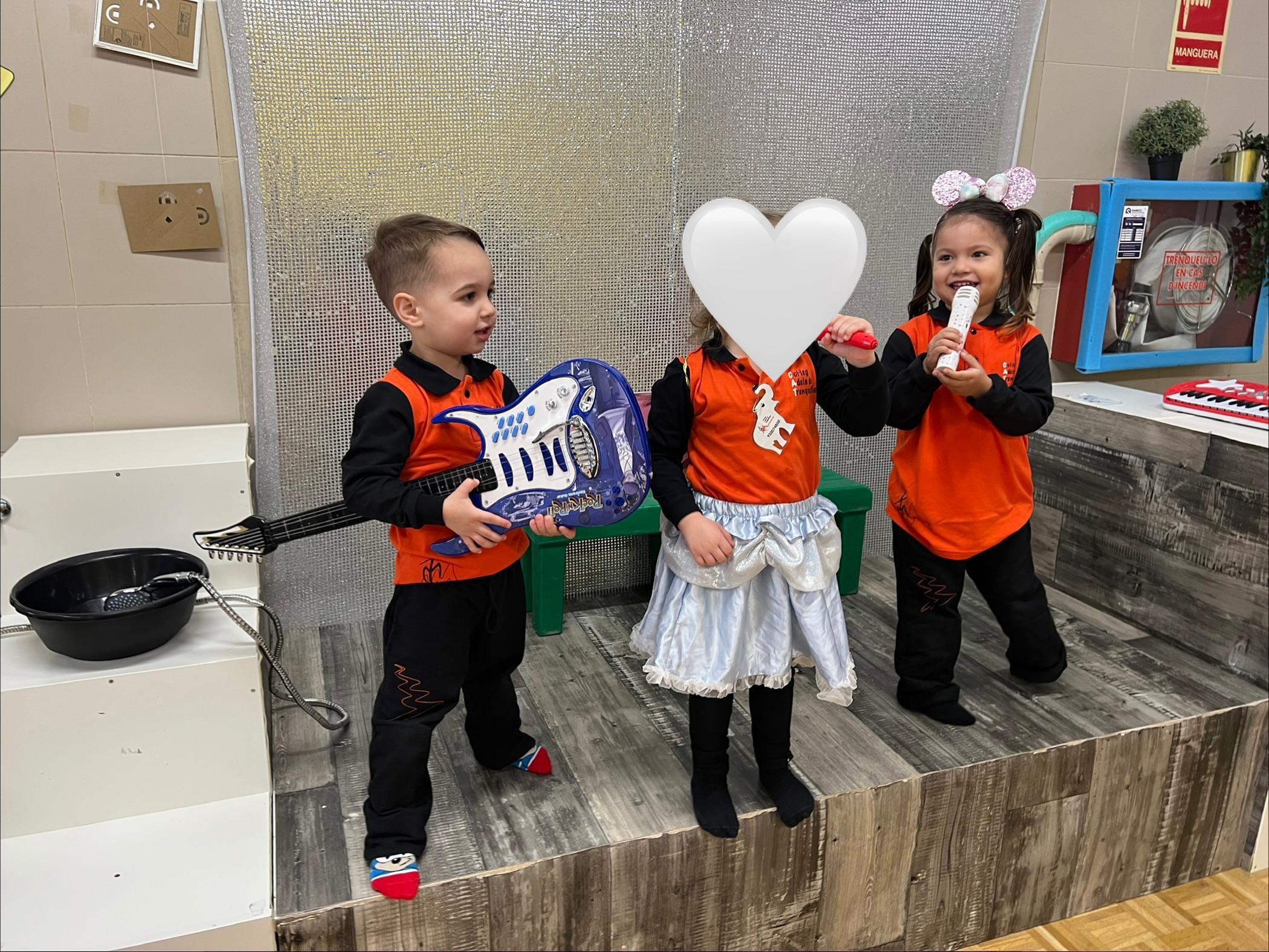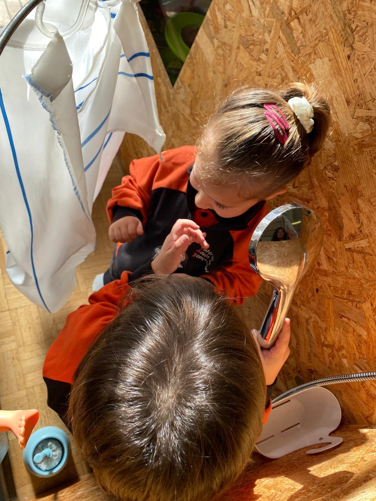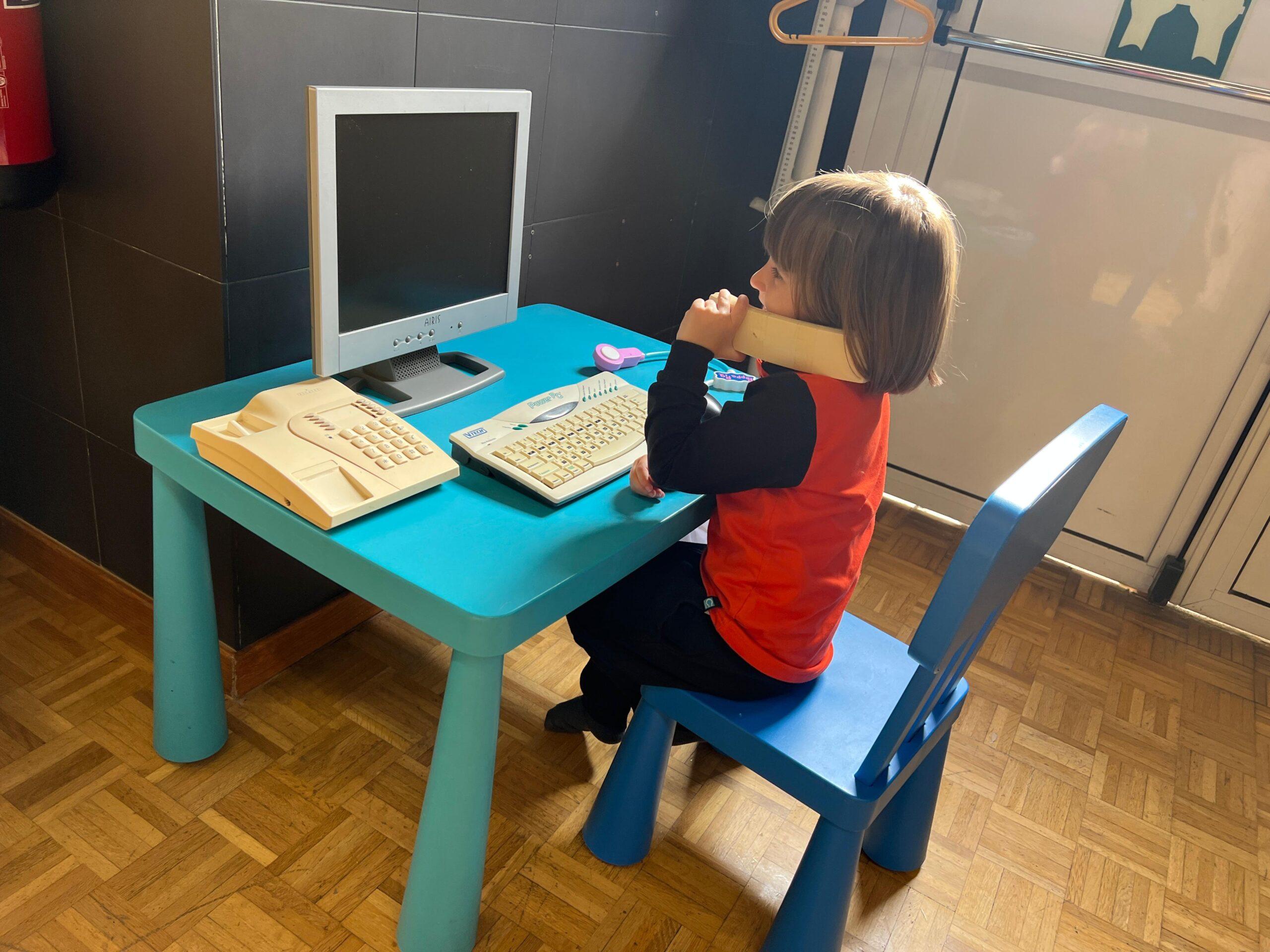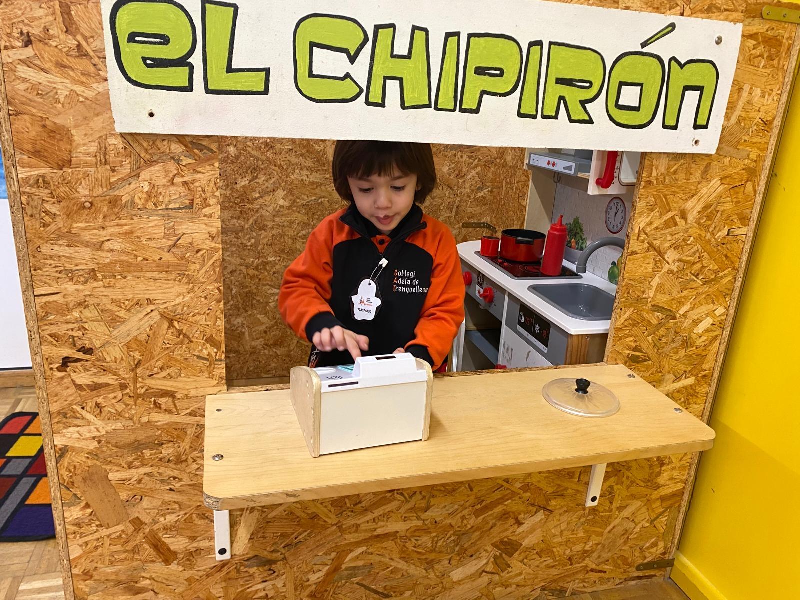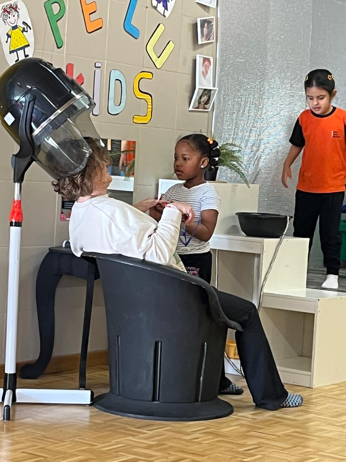 Allà van trobar-hi propostes molt variades. Van poder endinsar-se en el joc simbòlic amb la botigueta, la cuineta, la perruqueria i l’espai de metges. També van jugar a fer veure que treballaven en una oficina amb ordinadors i telèfons. Amb l’ajuda de les disfresses van acabar de donar vida a totes aquestes històries.