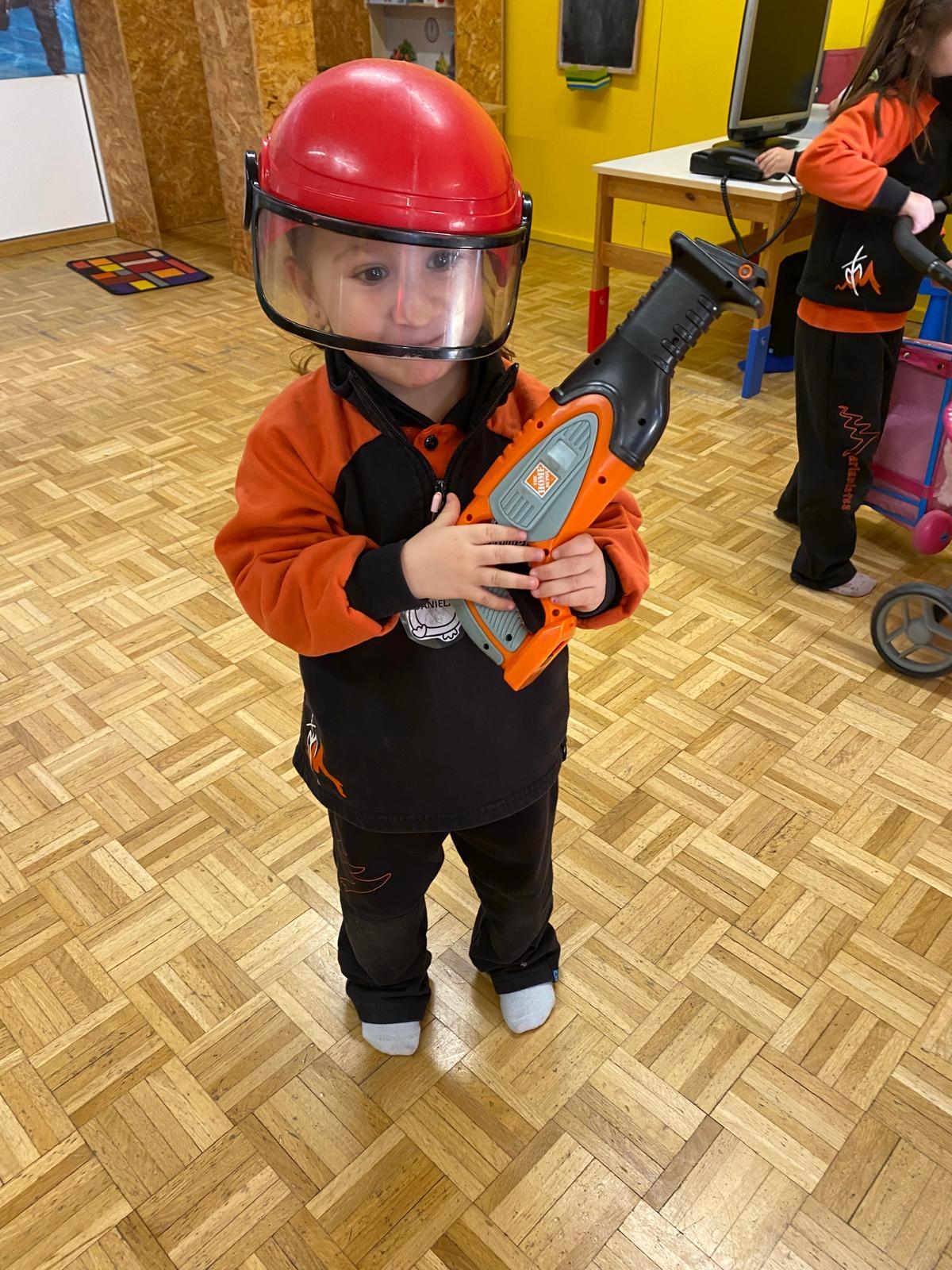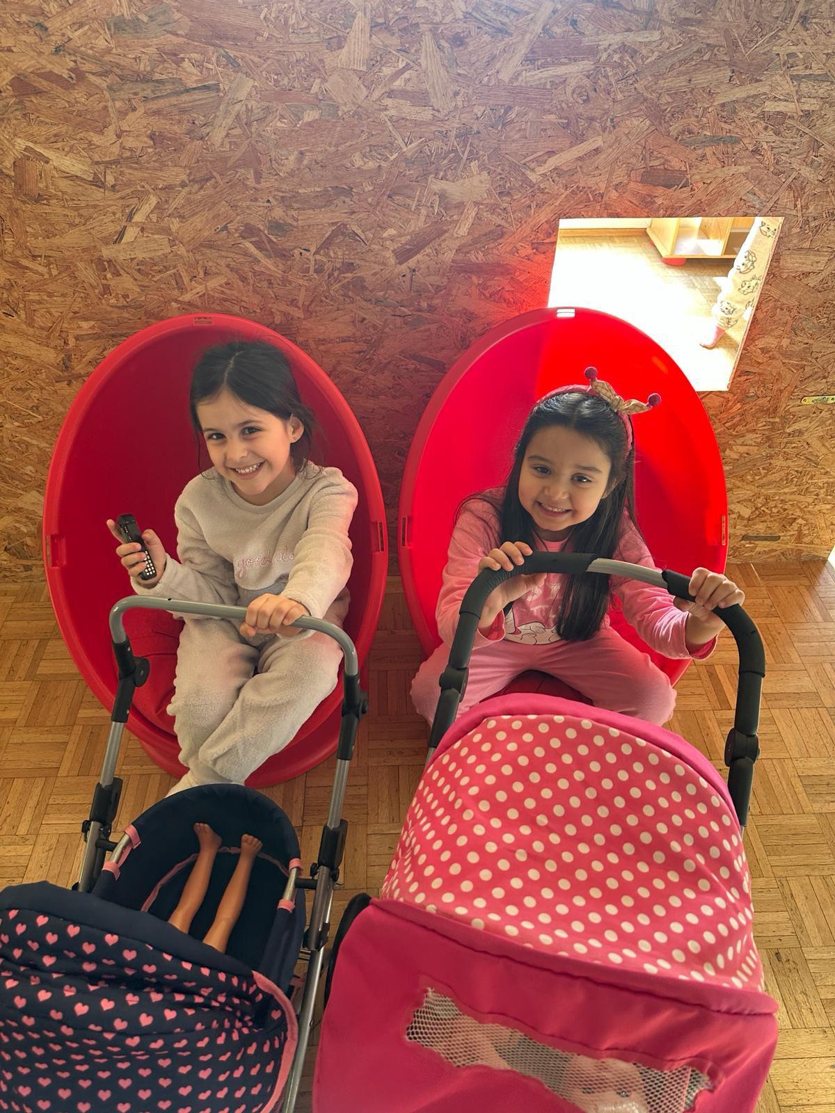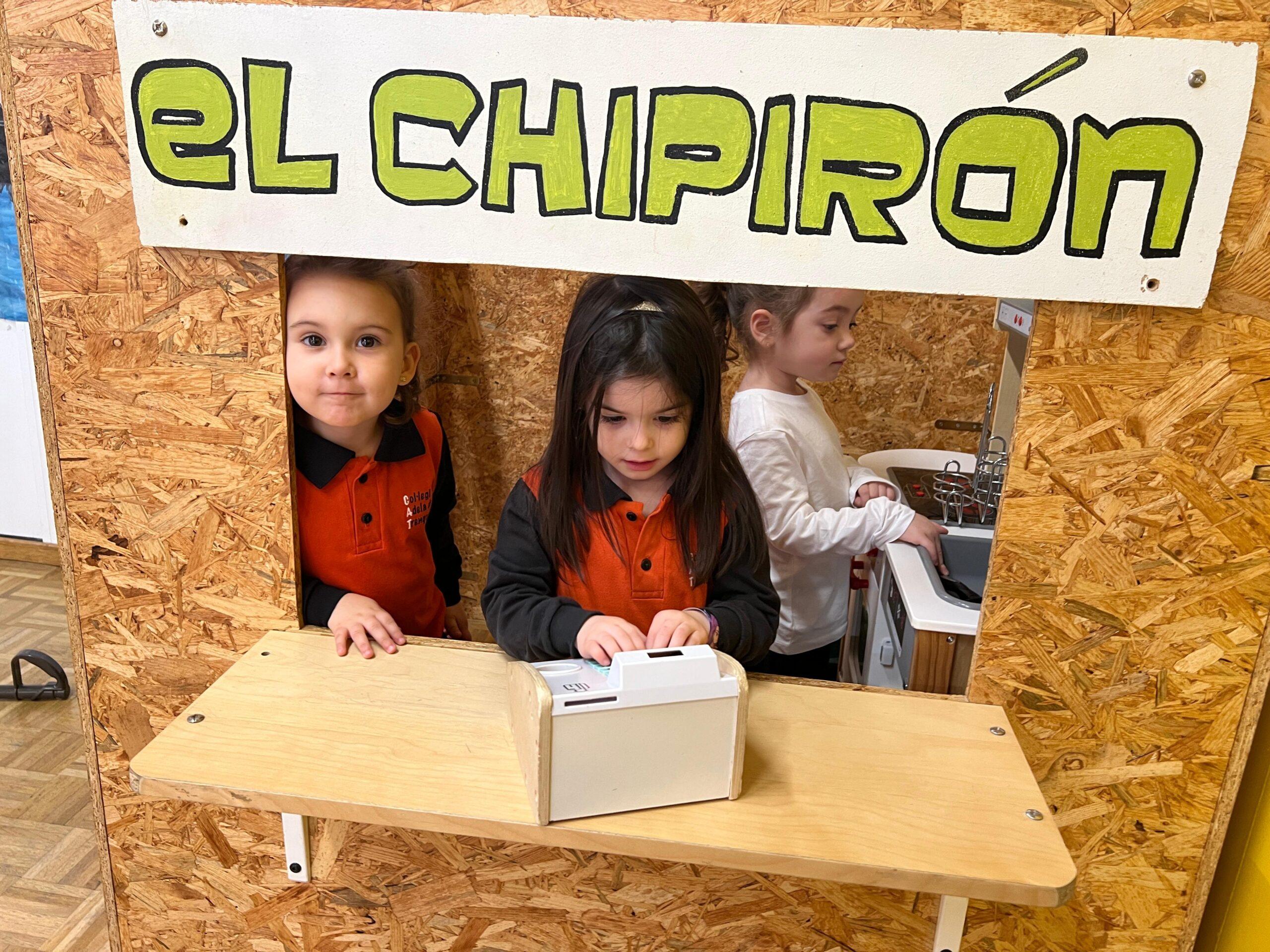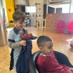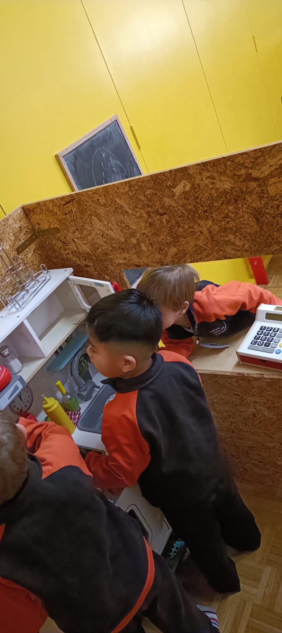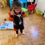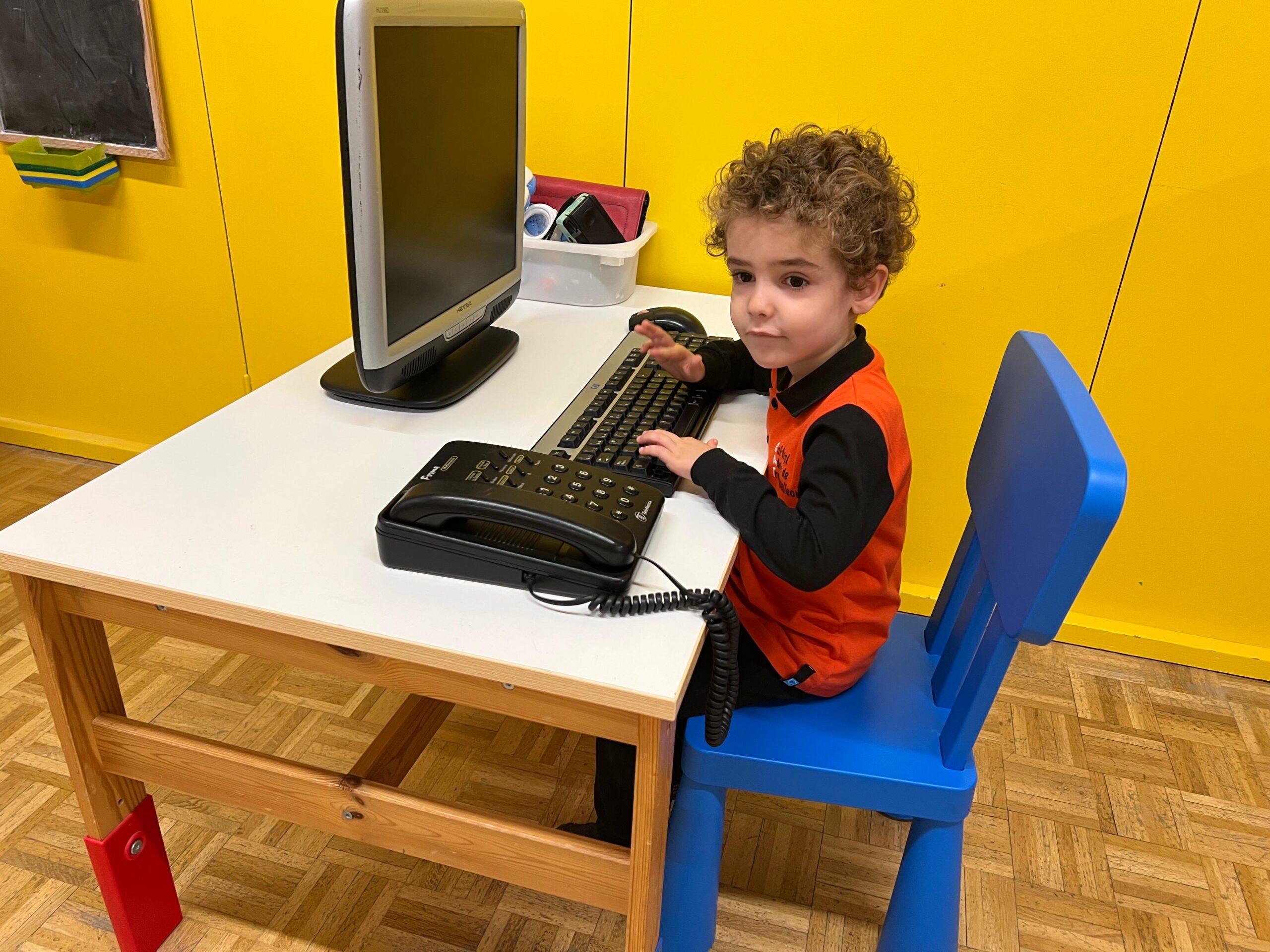 Allà van trobar-hi propostes molt variades. Van poder endinsar-se en el joc simbòlic amb la botigueta, la cuineta, la perruqueria i l’espai de metges. També van jugar a fer veure que treballaven en una oficina amb ordinadors i telèfons. Amb l’ajuda de les disfresses van acabar de donar vida a totes aquestes històries.
