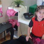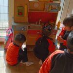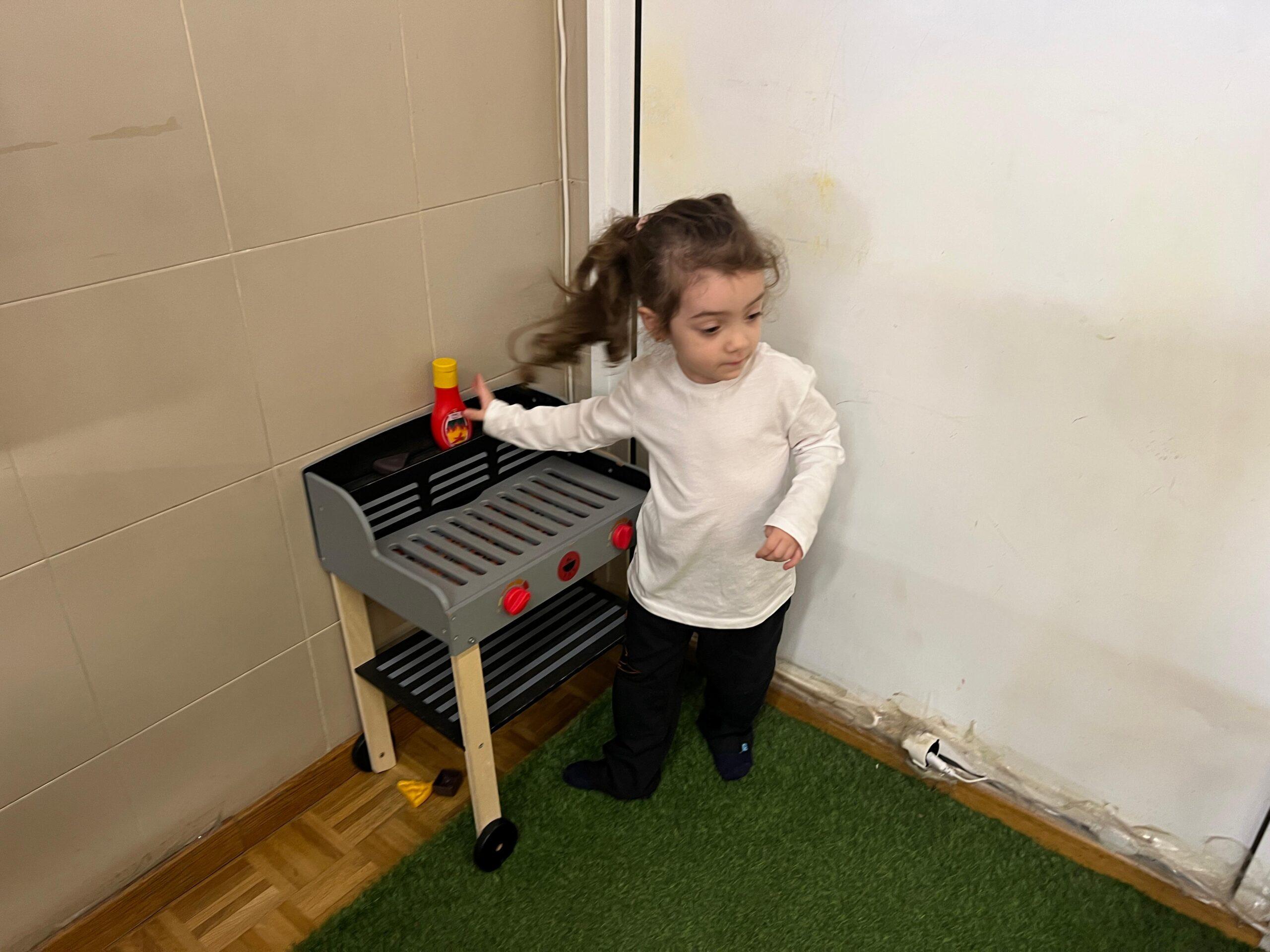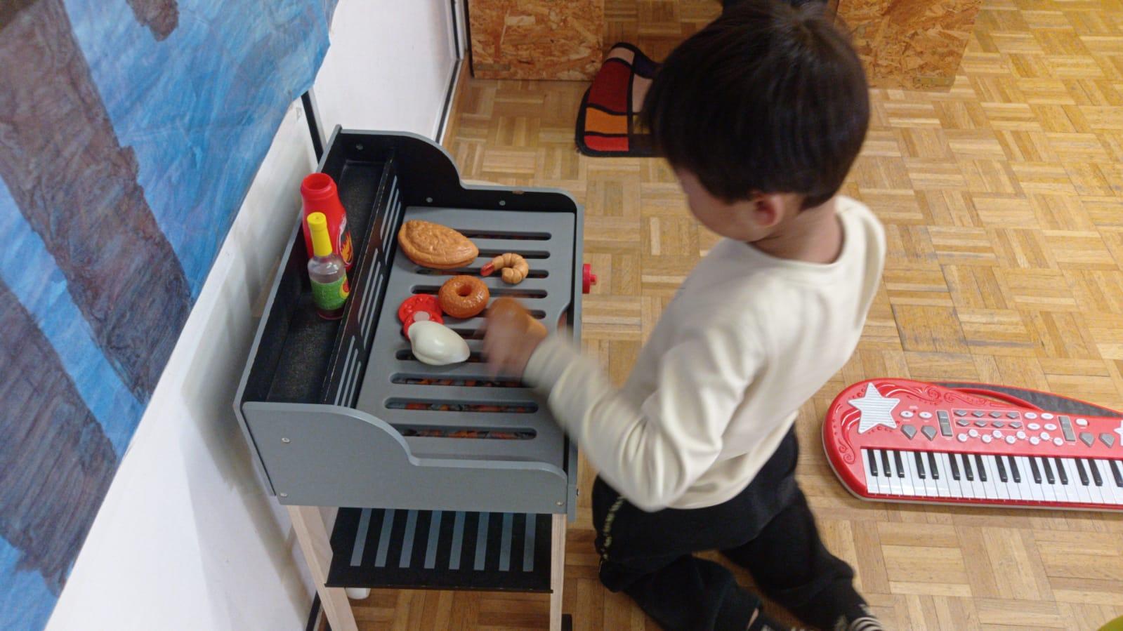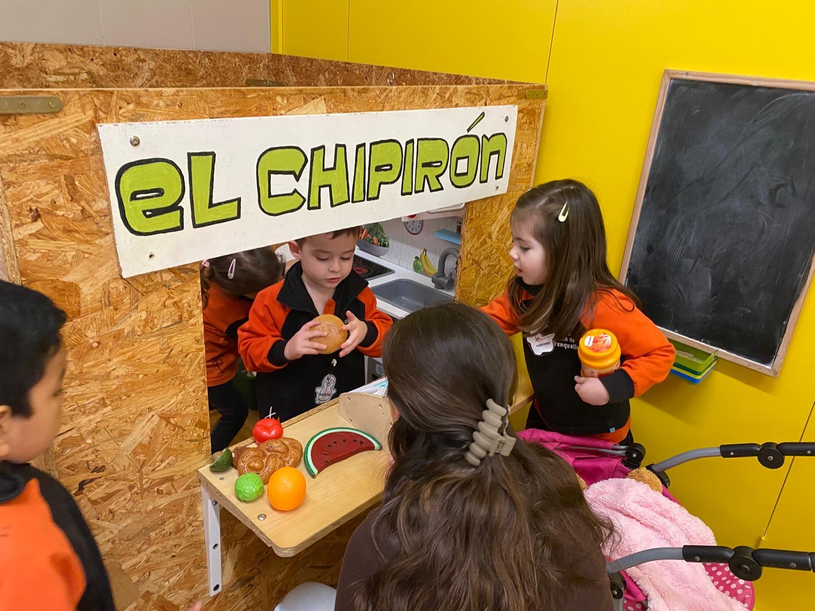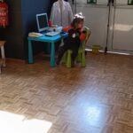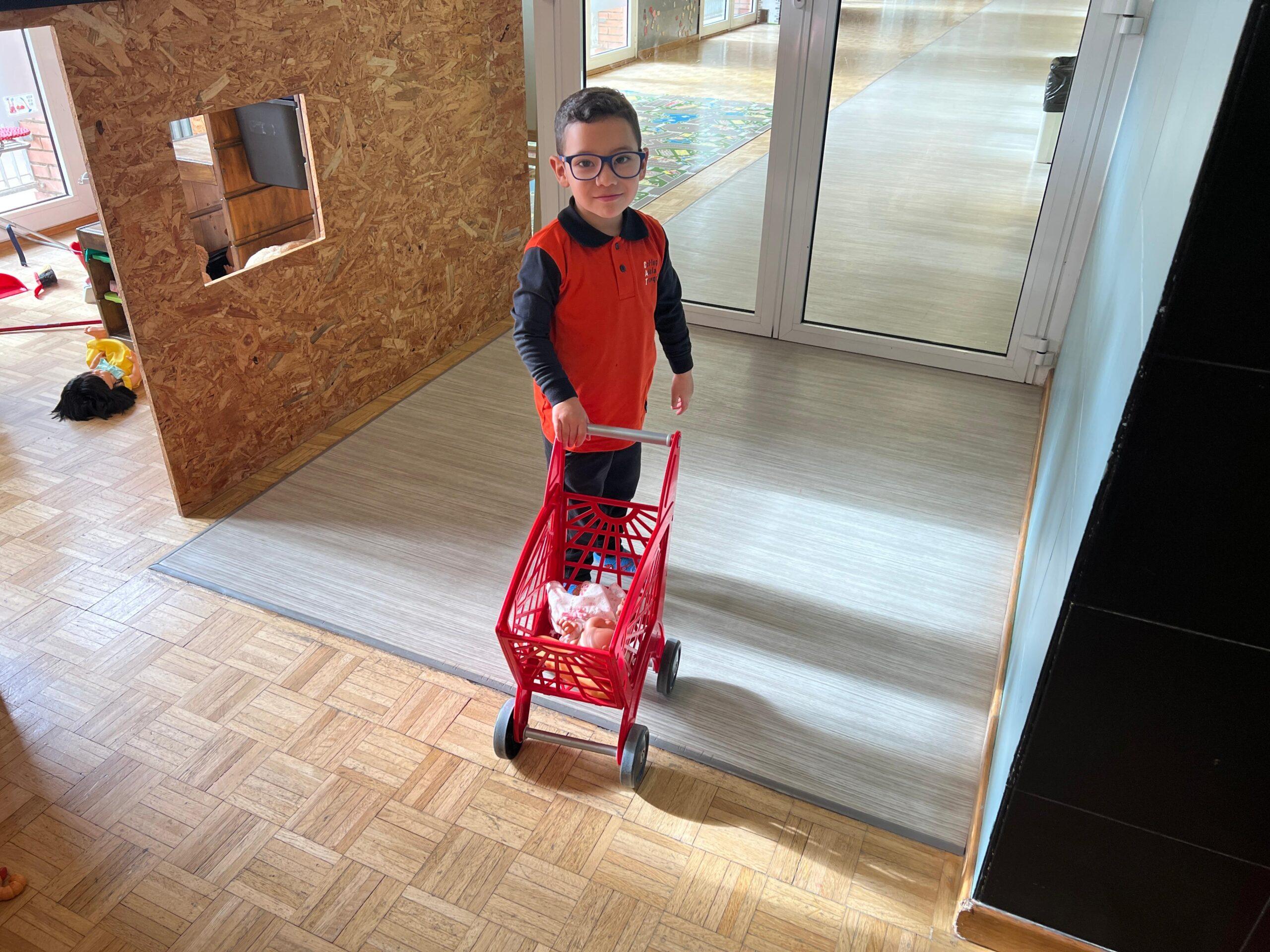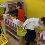 Allà van trobar-hi propostes molt variades. Van poder endinsar-se en el joc simbòlic amb la botigueta, la cuineta, la perruqueria i l’espai de metges. També van jugar a fer veure que treballaven en una oficina amb ordinadors i telèfons. Amb l’ajuda de les disfresses van acabar de donar vida a totes aquestes històries.