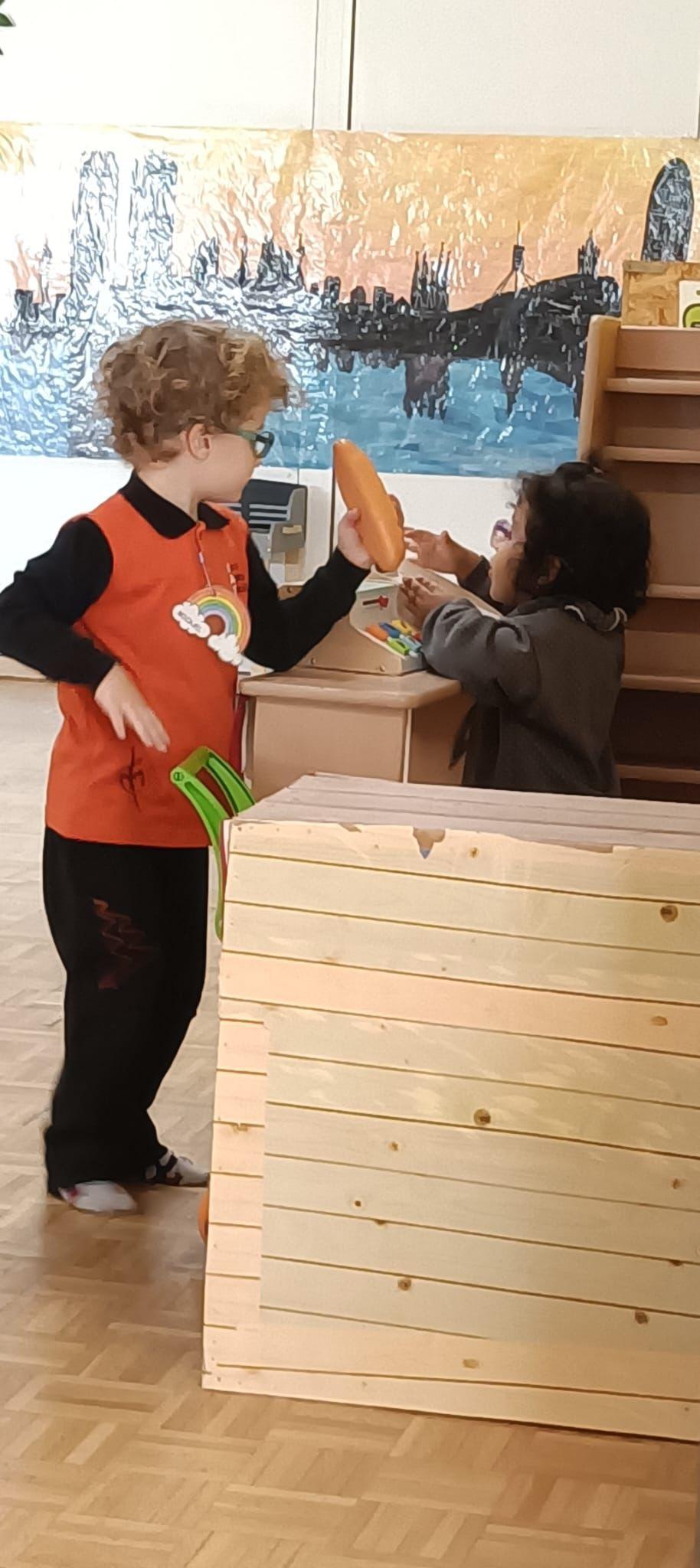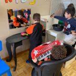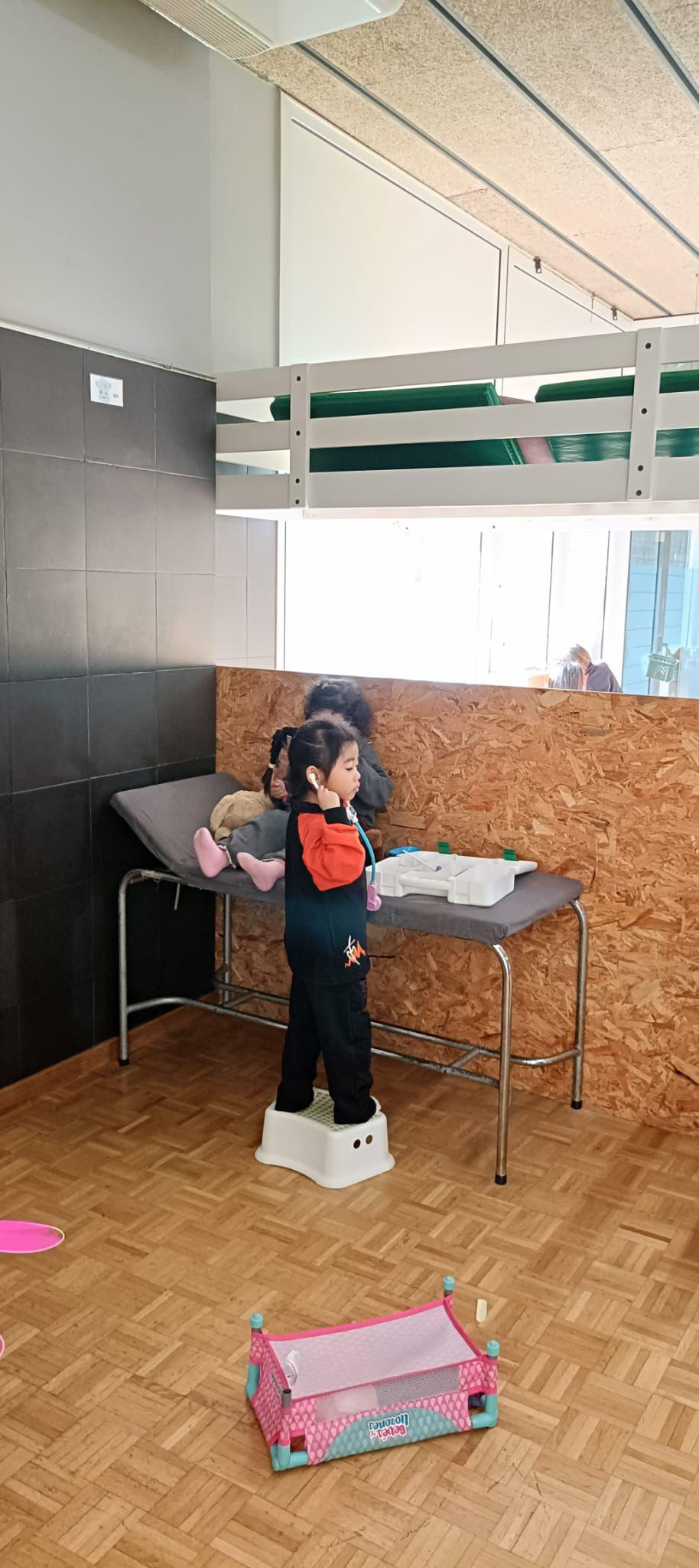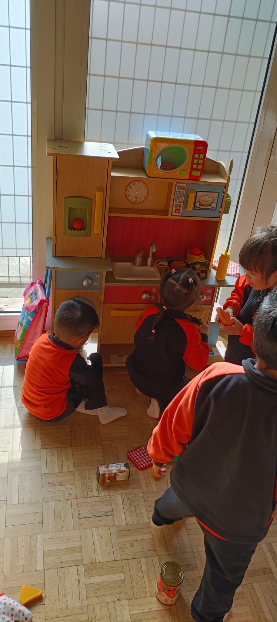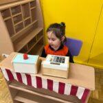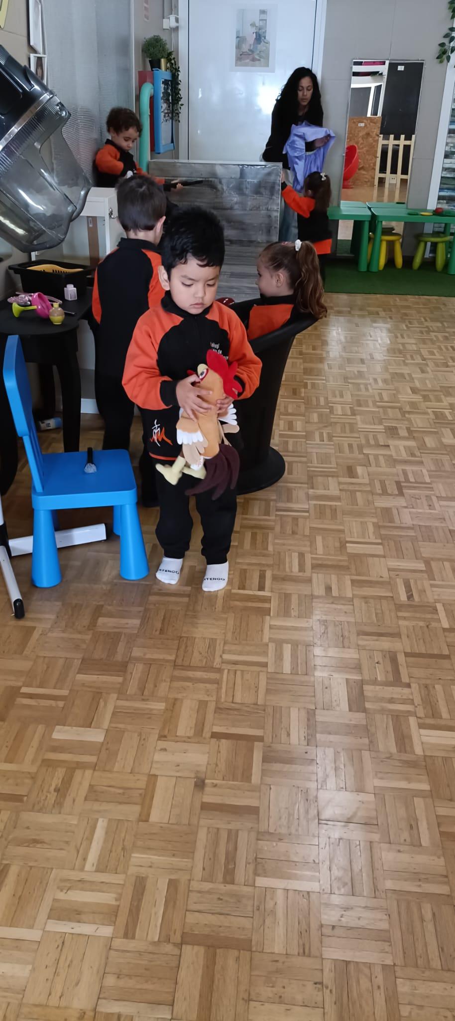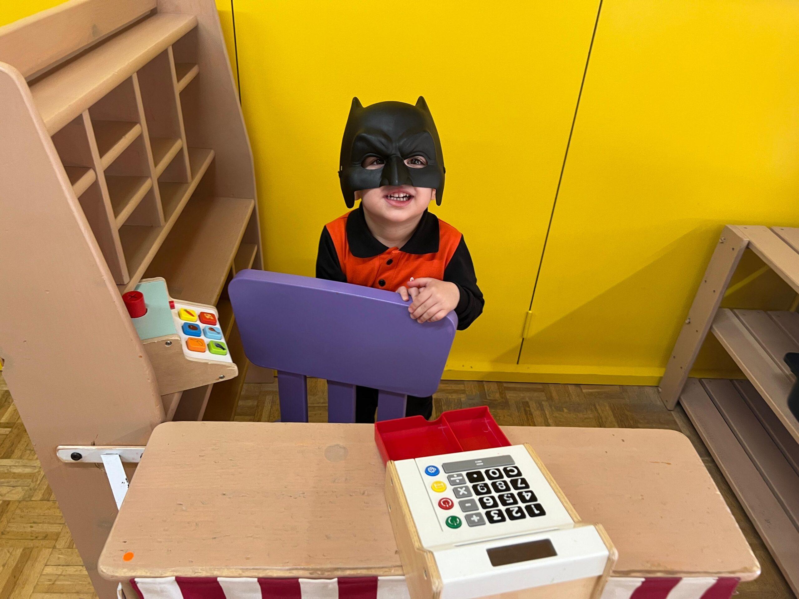 Allà van trobar-hi propostes molt variades. Van poder endinsar-se en el joc simbòlic amb la botigueta, la cuineta, la perruqueria i l’espai de metges. També van jugar a fer veure que treballaven en una oficina amb ordinadors i telèfons. Amb l’ajuda de les disfresses van acabar de donar vida a totes aquestes històries.