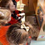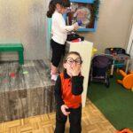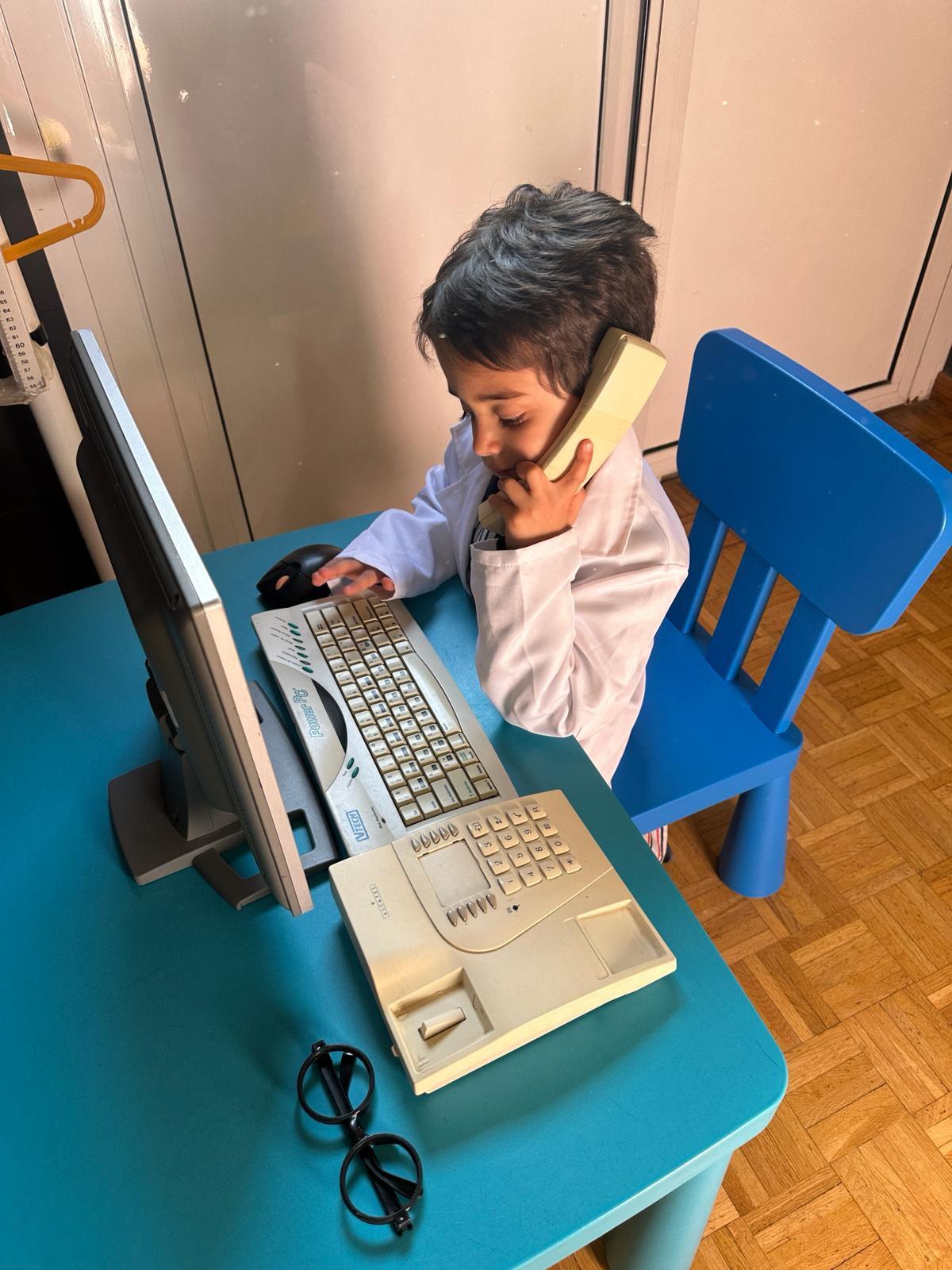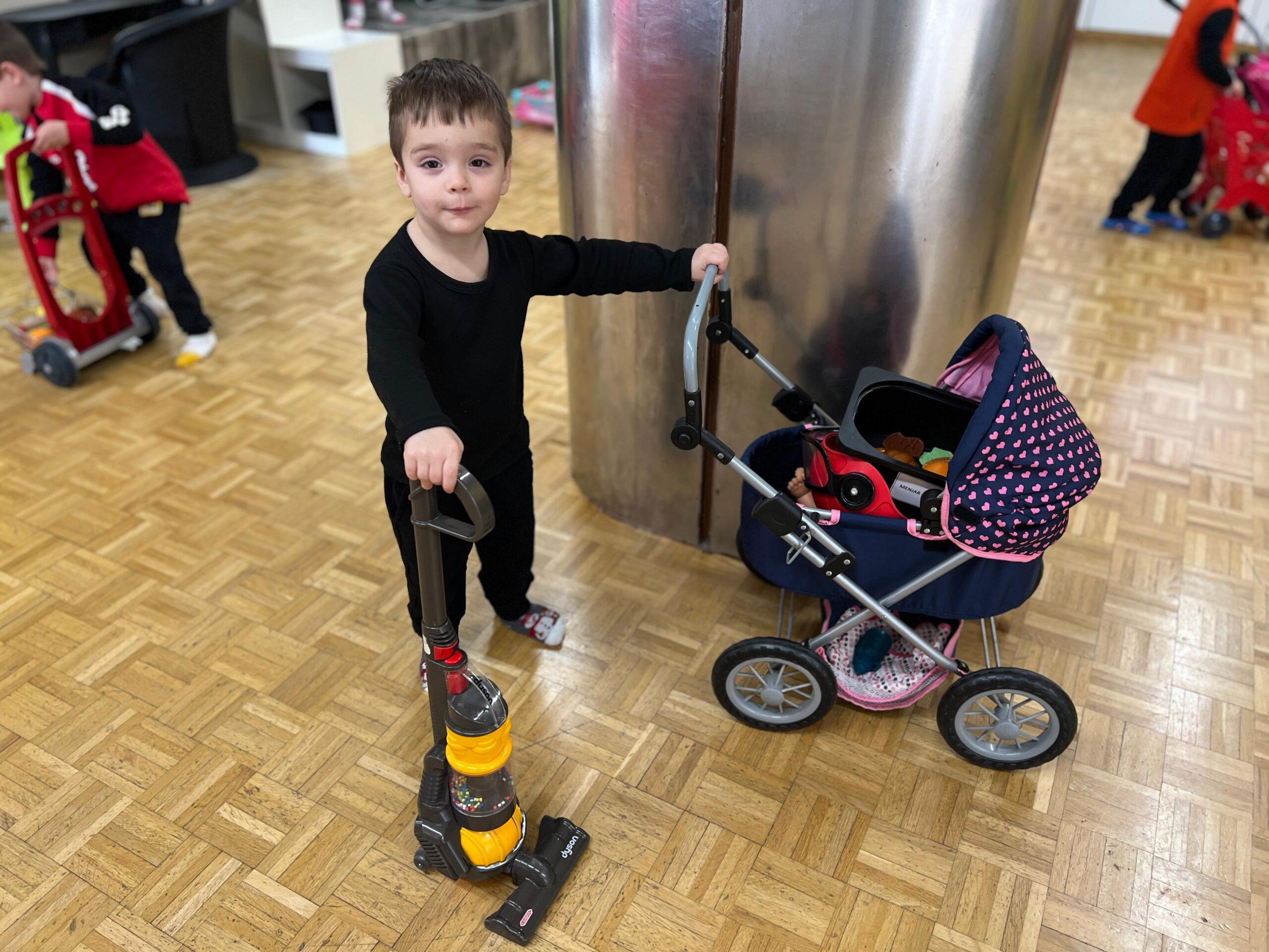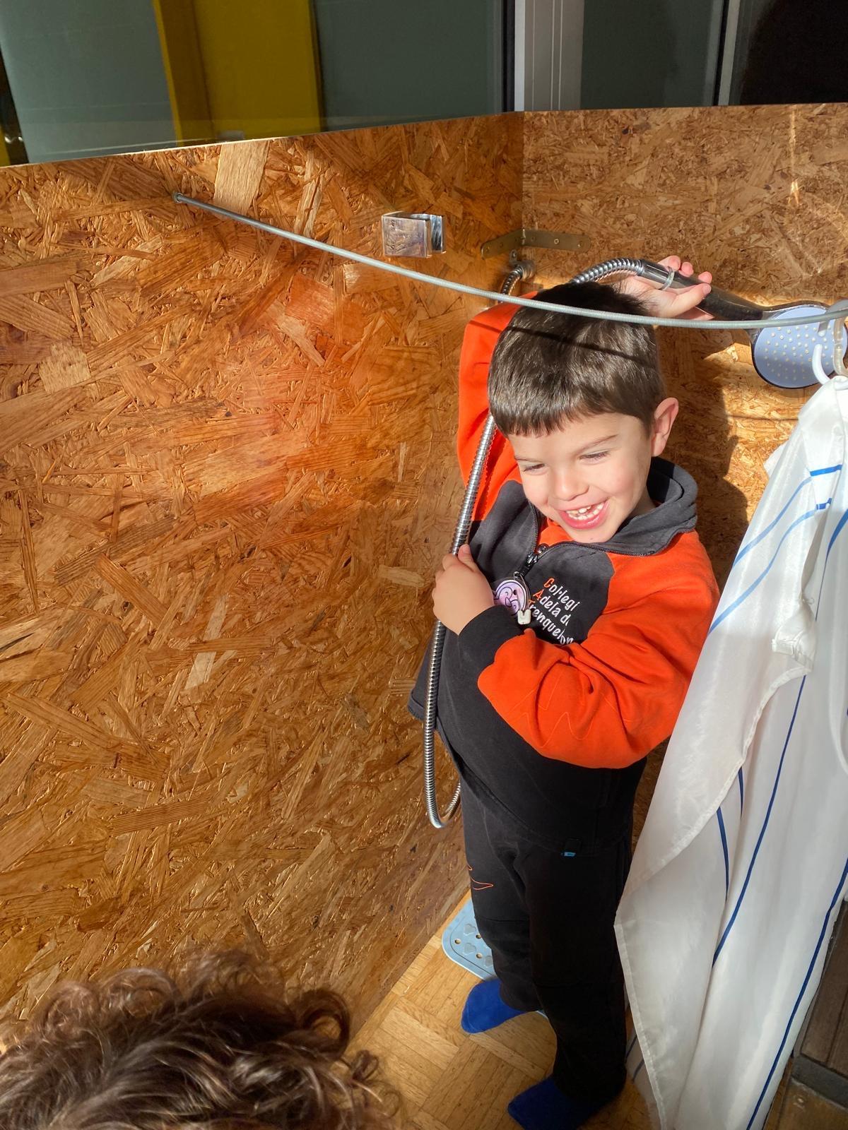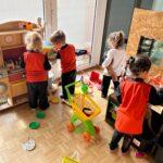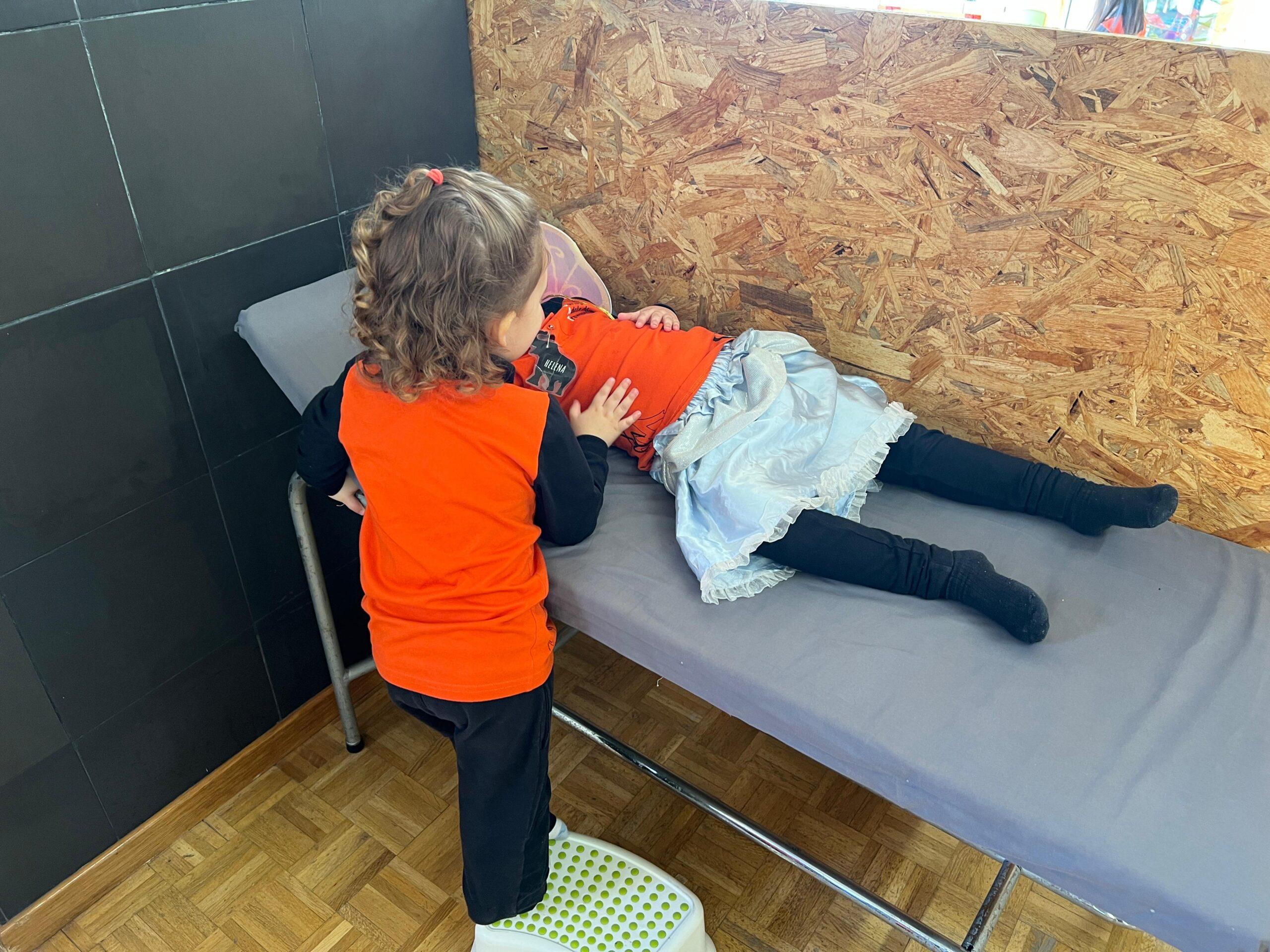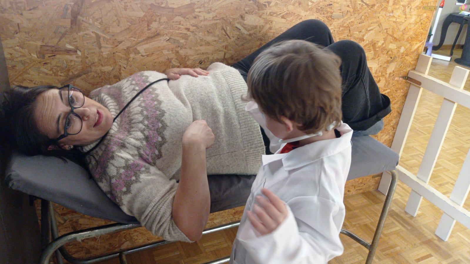 Allà van trobar-hi propostes molt variades. Van poder endinsar-se en el joc simbòlic amb la botigueta, la cuineta, la perruqueria i l’espai de metges. També van jugar a fer veure que treballaven en una oficina amb ordinadors i telèfons. Amb l’ajuda de les disfresses van acabar de donar vida a totes aquestes històries.