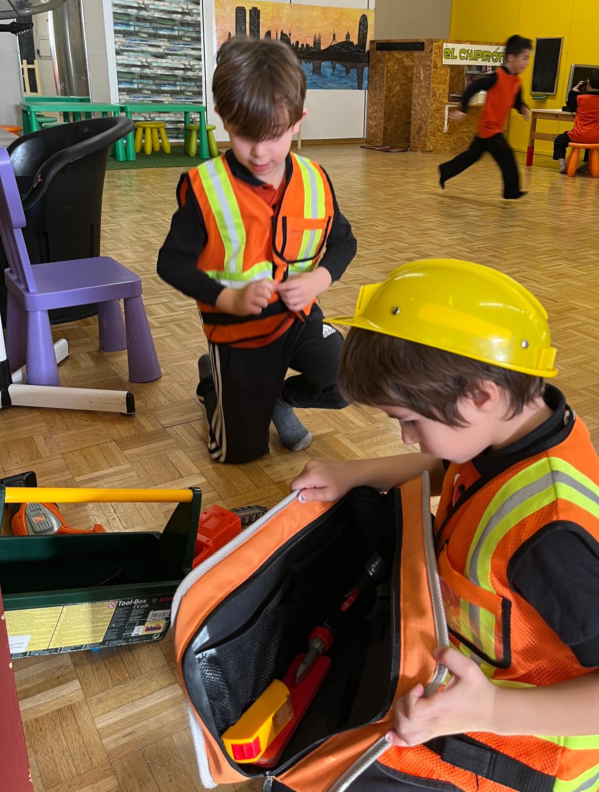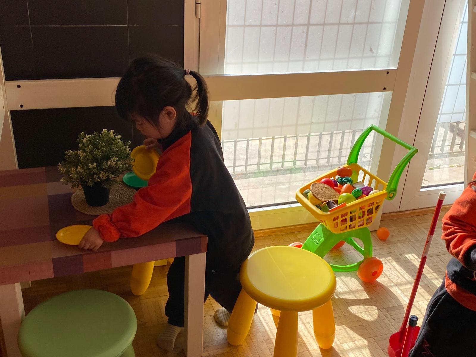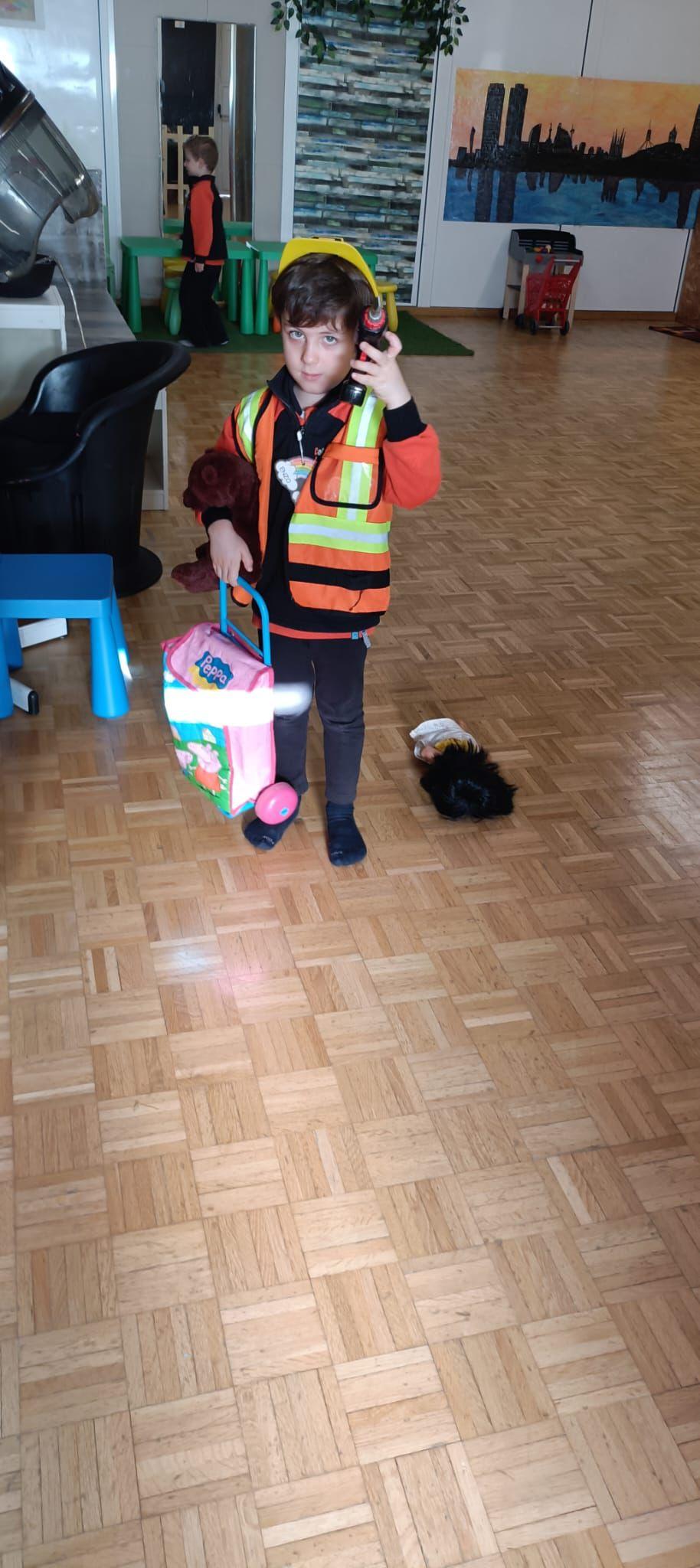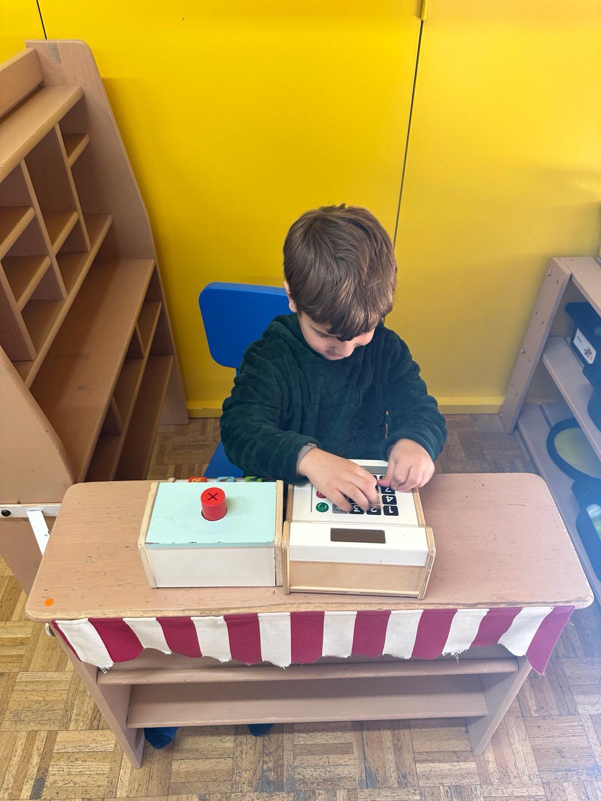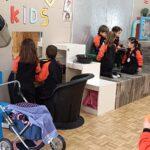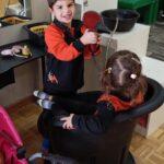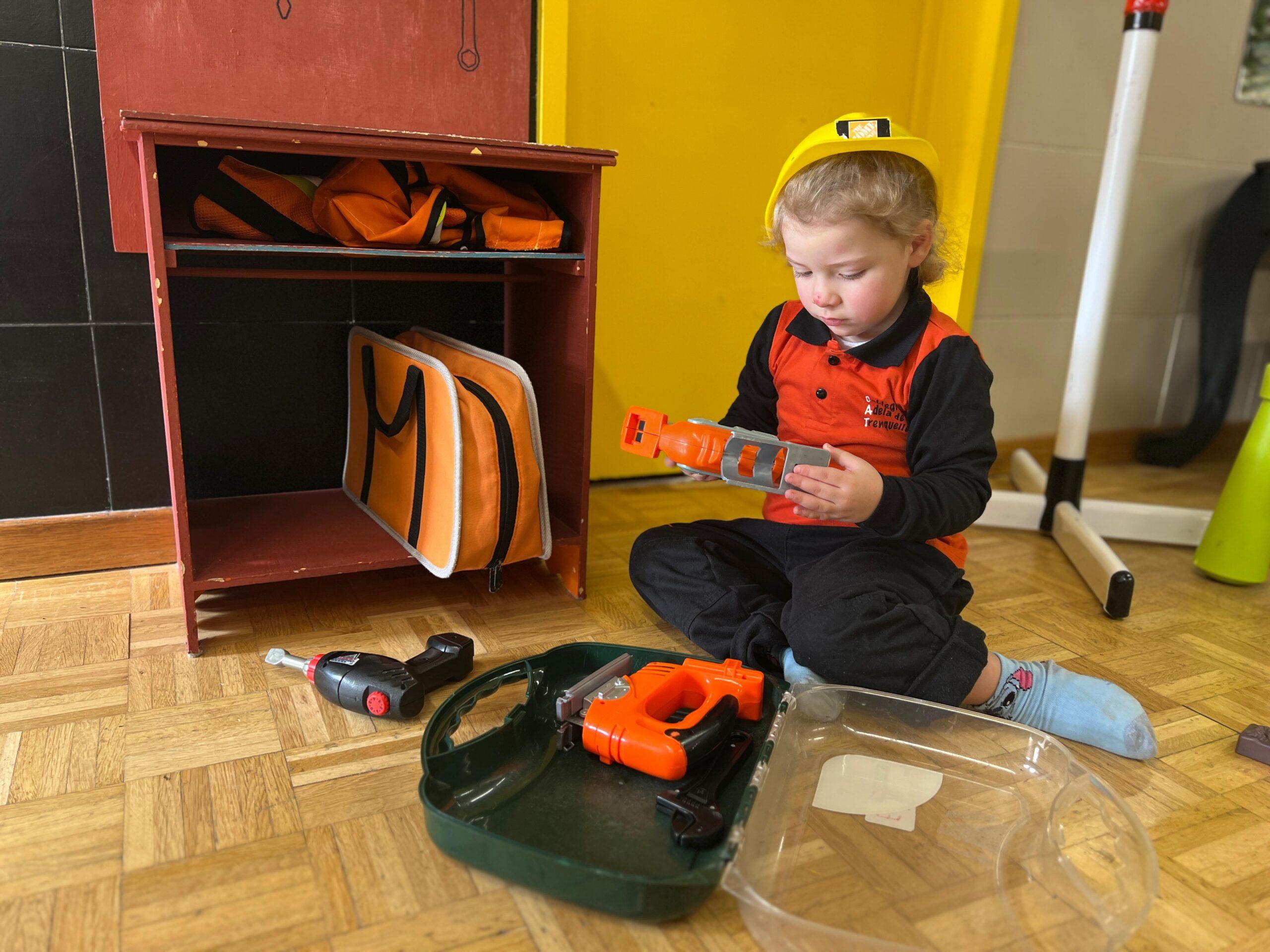 Allà van trobar-hi propostes molt variades. Van poder endinsar-se en el joc simbòlic amb la botigueta, la cuineta, la perruqueria i l’espai de metges. També van jugar a fer veure que treballaven en una oficina amb ordinadors i telèfons. Amb l’ajuda de les disfresses van acabar de donar vida a totes aquestes històries.
