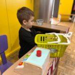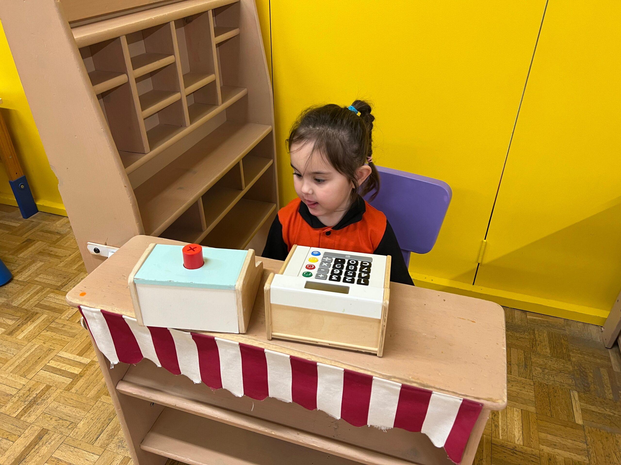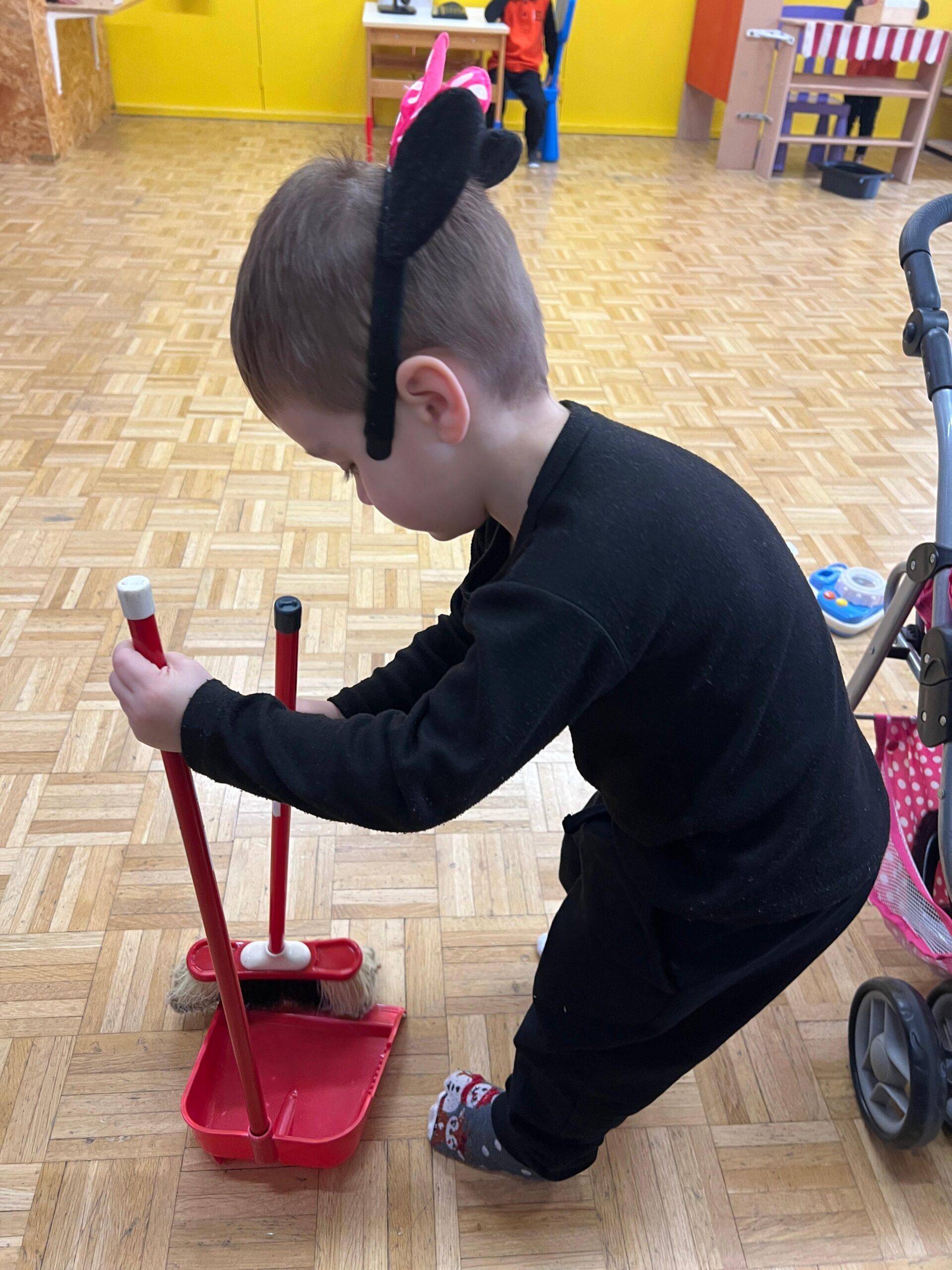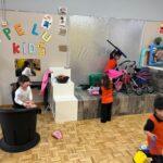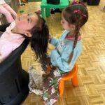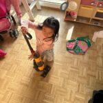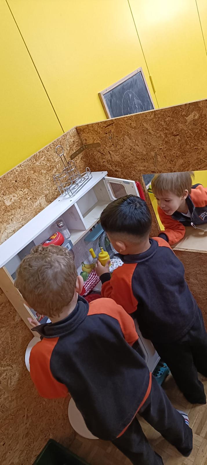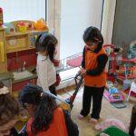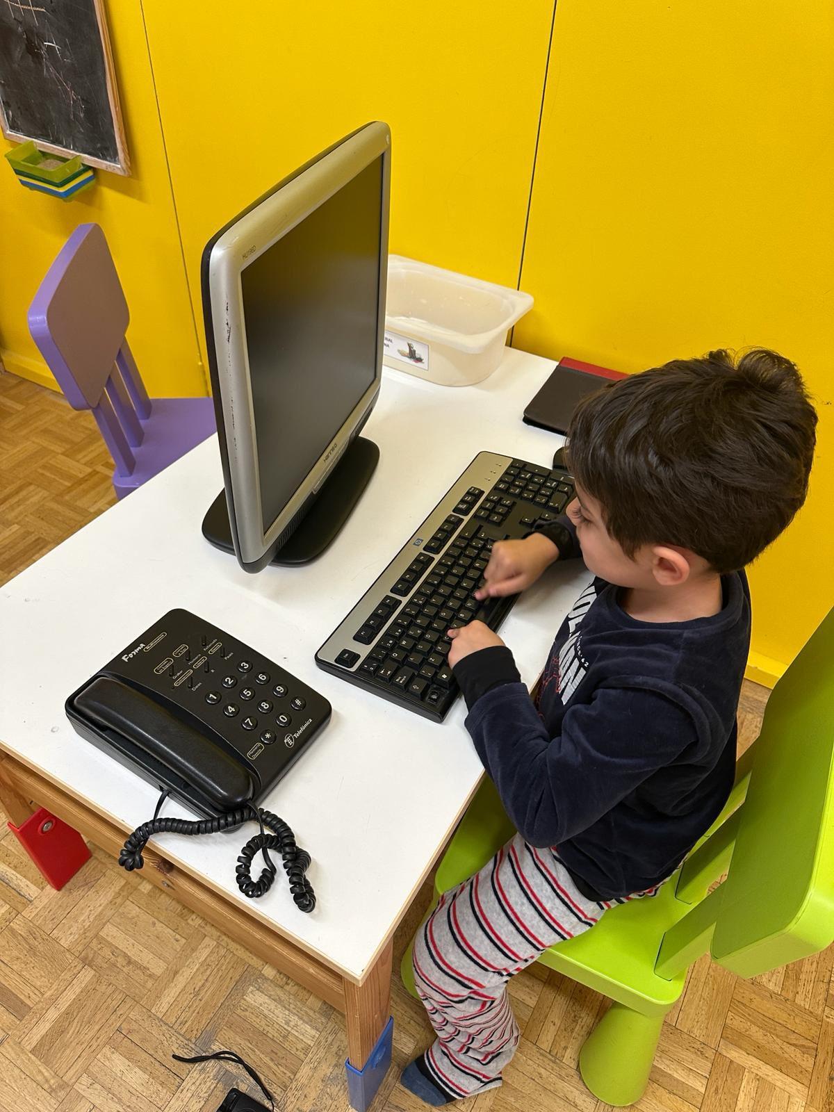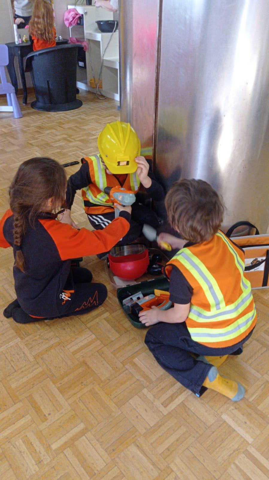 Allà van trobar-hi propostes molt variades. Van poder endinsar-se en el joc simbòlic amb la botigueta, la cuineta, la perruqueria i l’espai de metges. També van jugar a fer veure que treballaven en una oficina amb ordinadors i telèfons. Amb l’ajuda de les disfresses van acabar de donar vida a totes aquestes històries.