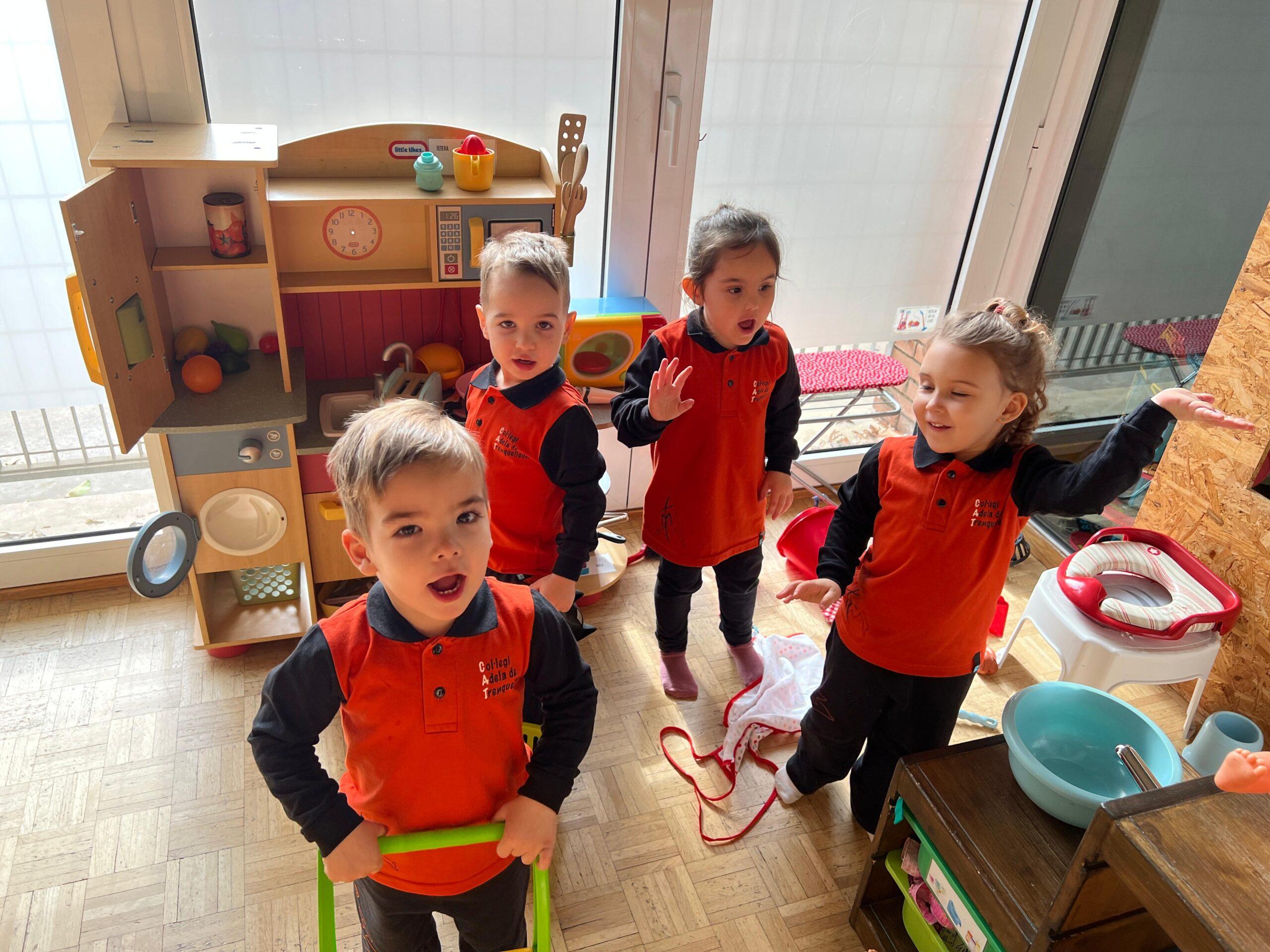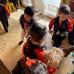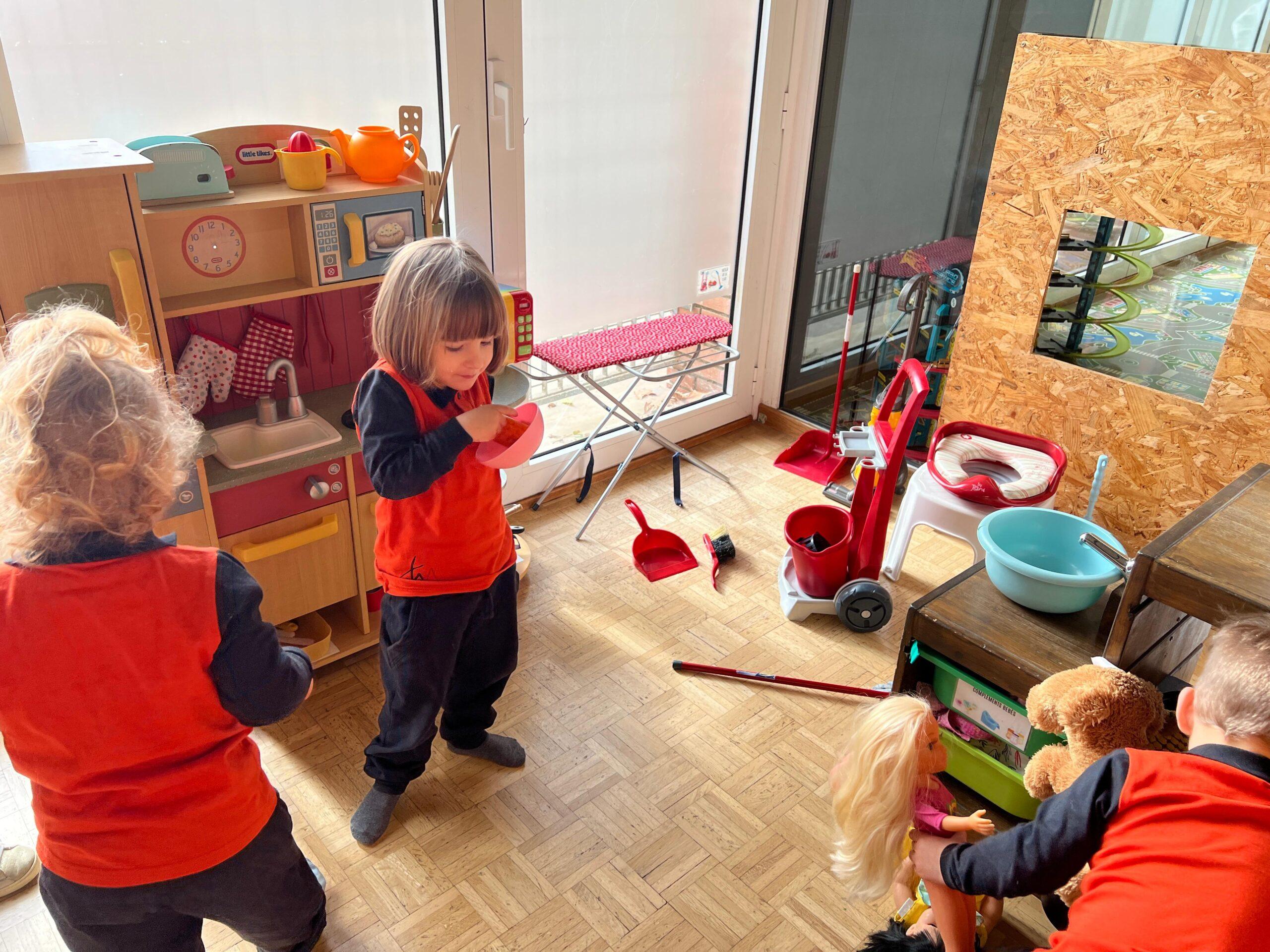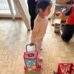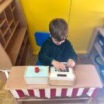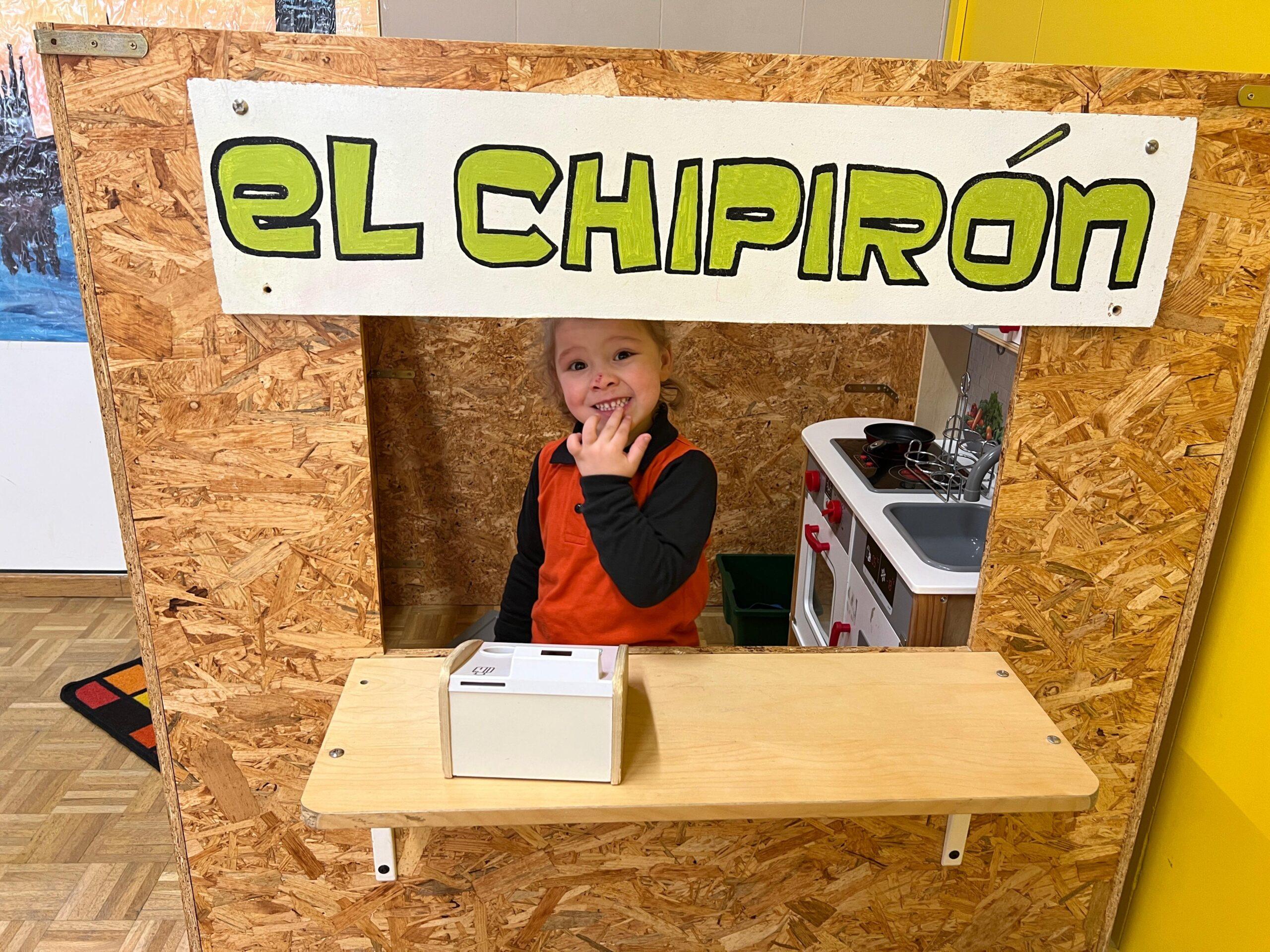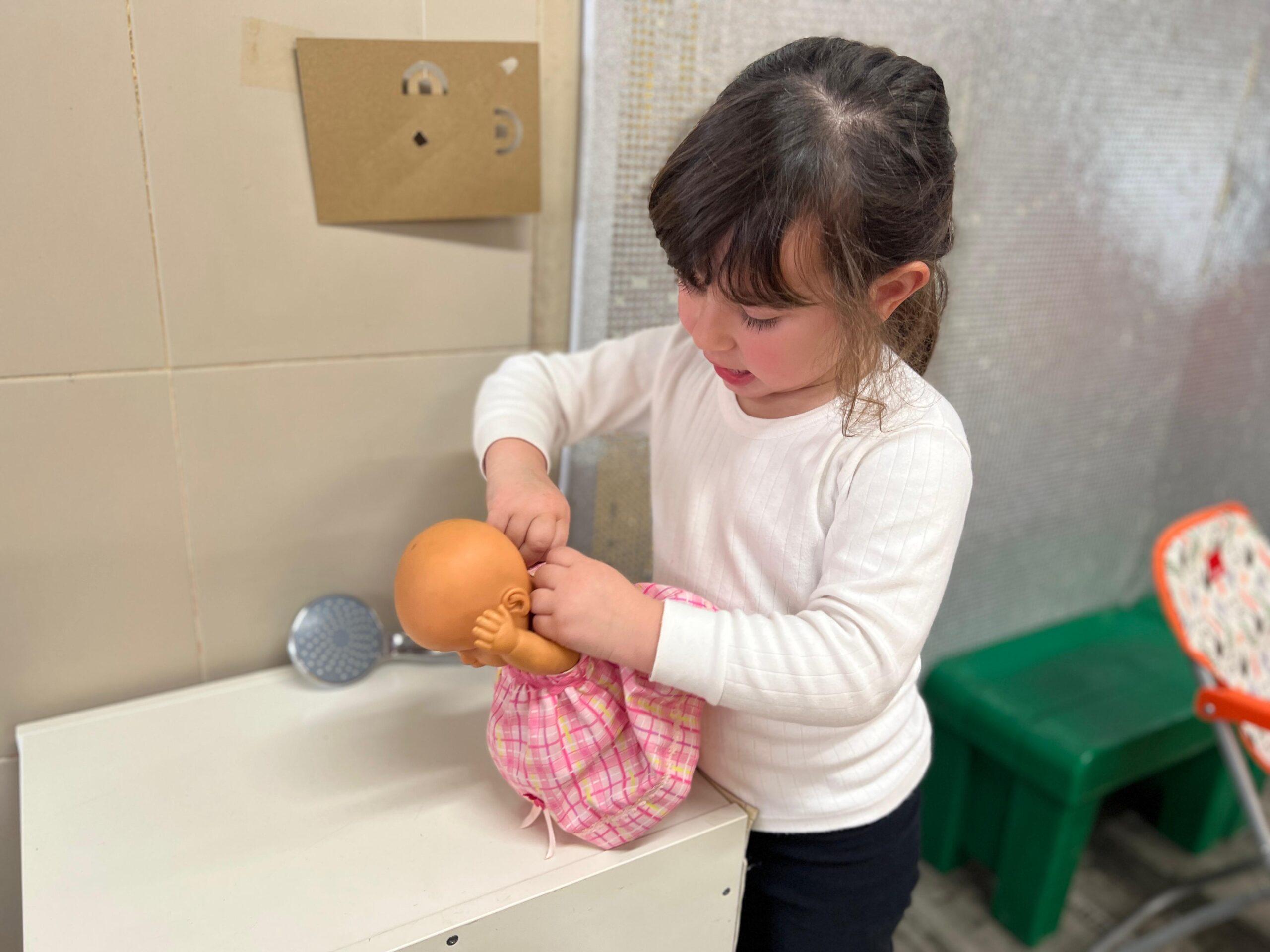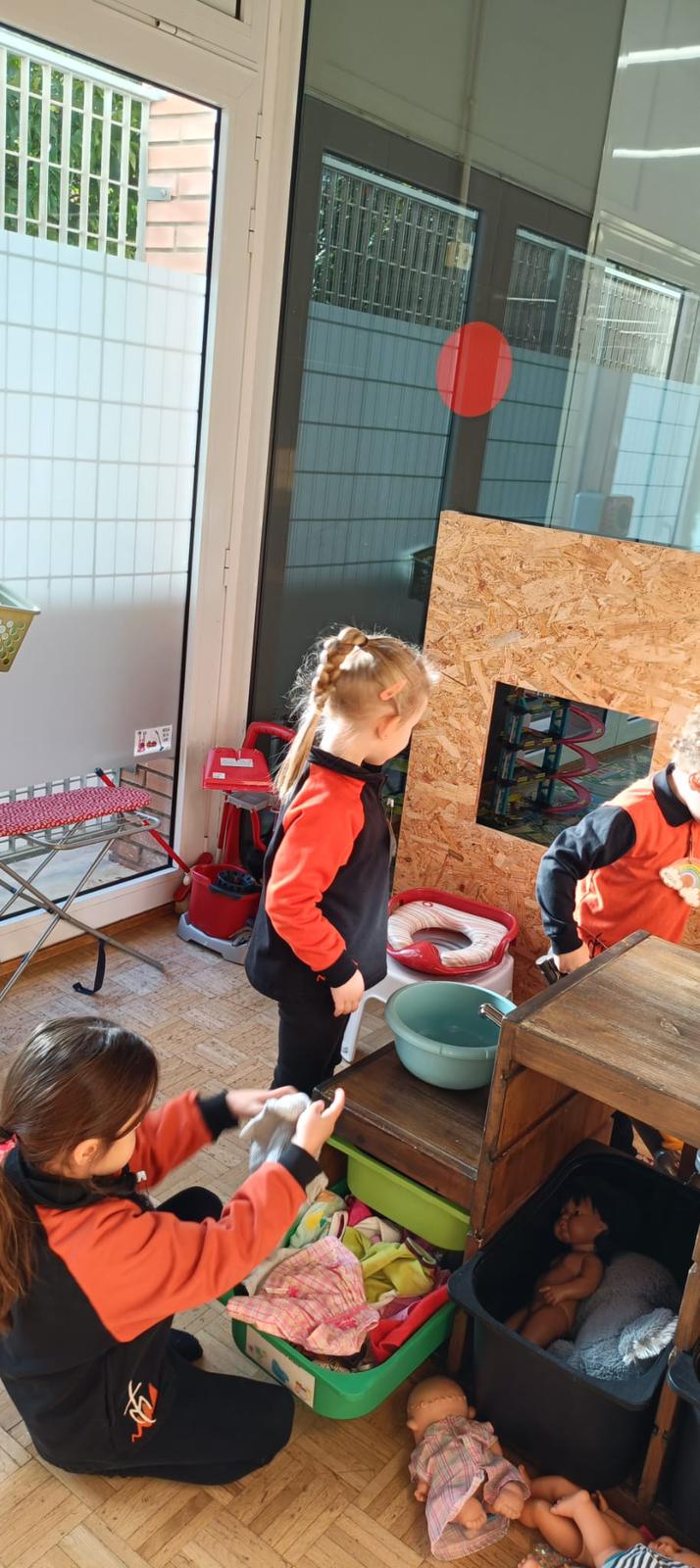 Allà van trobar-hi propostes molt variades. Van poder endinsar-se en el joc simbòlic amb la botigueta, la cuineta, la perruqueria i l’espai de metges. També van jugar a fer veure que treballaven en una oficina amb ordinadors i telèfons. Amb l’ajuda de les disfresses van acabar de donar vida a totes aquestes històries.