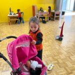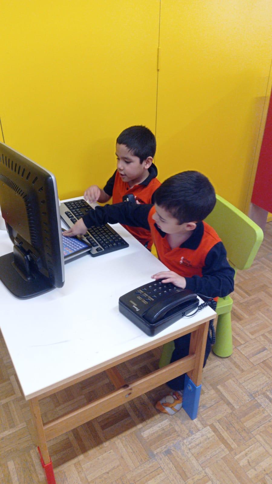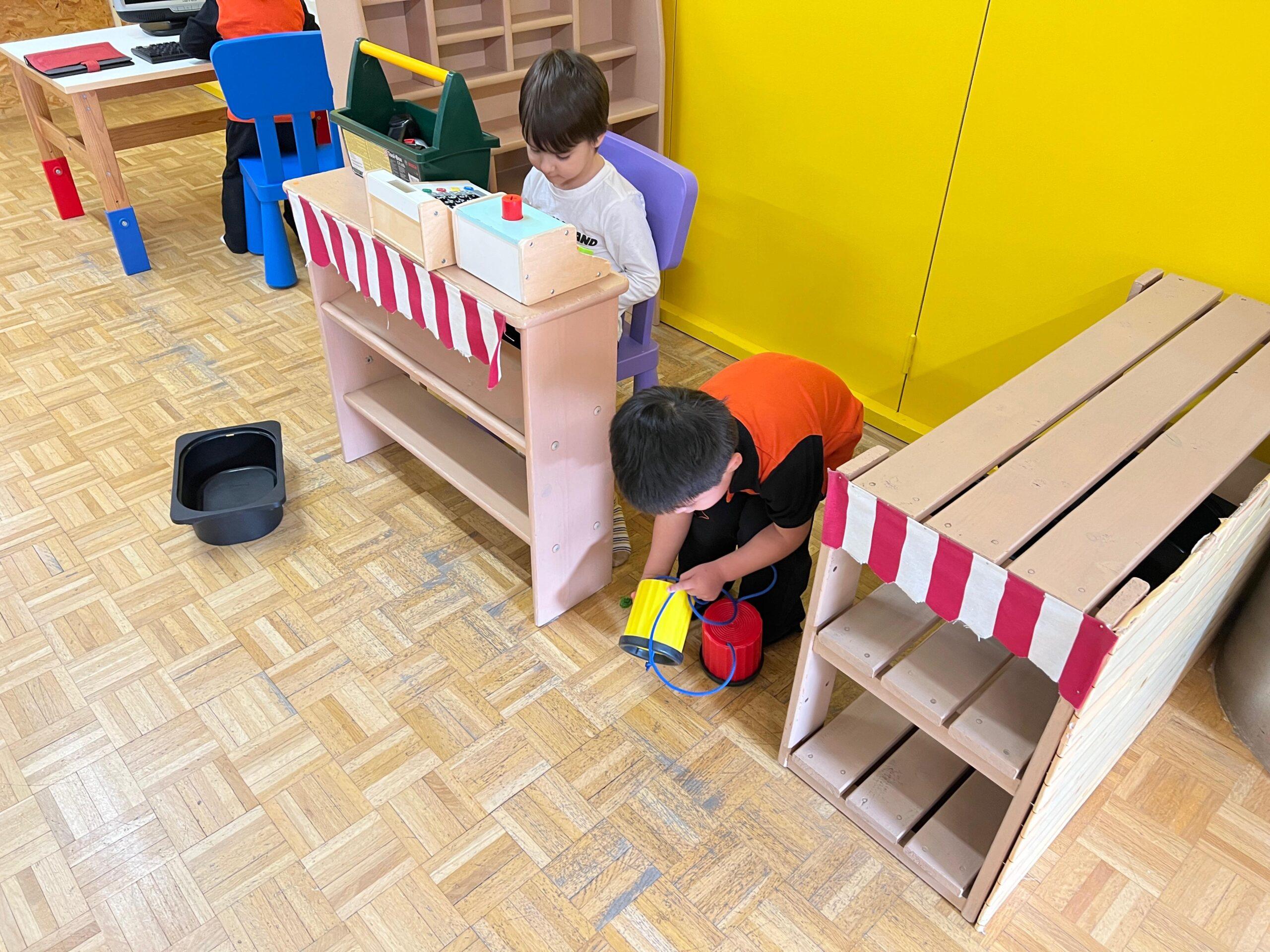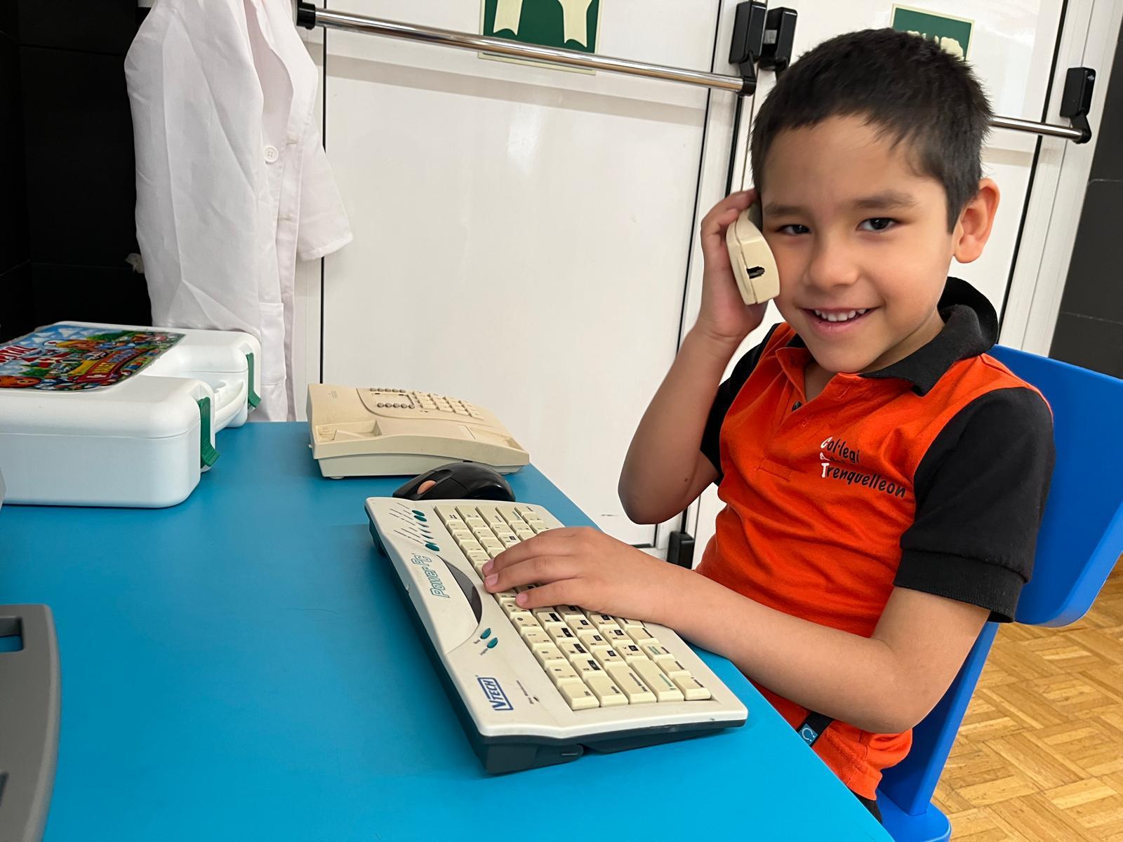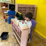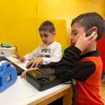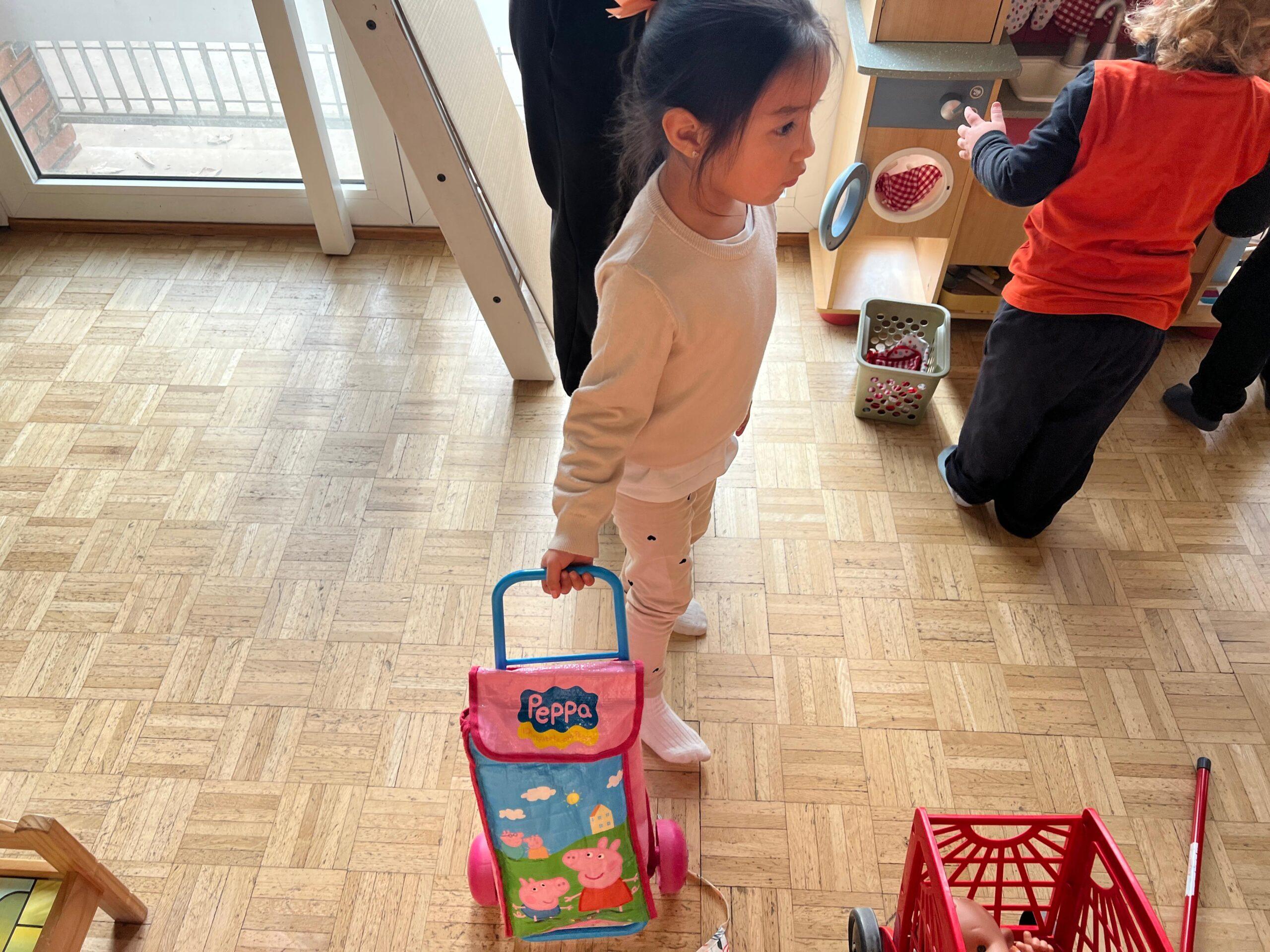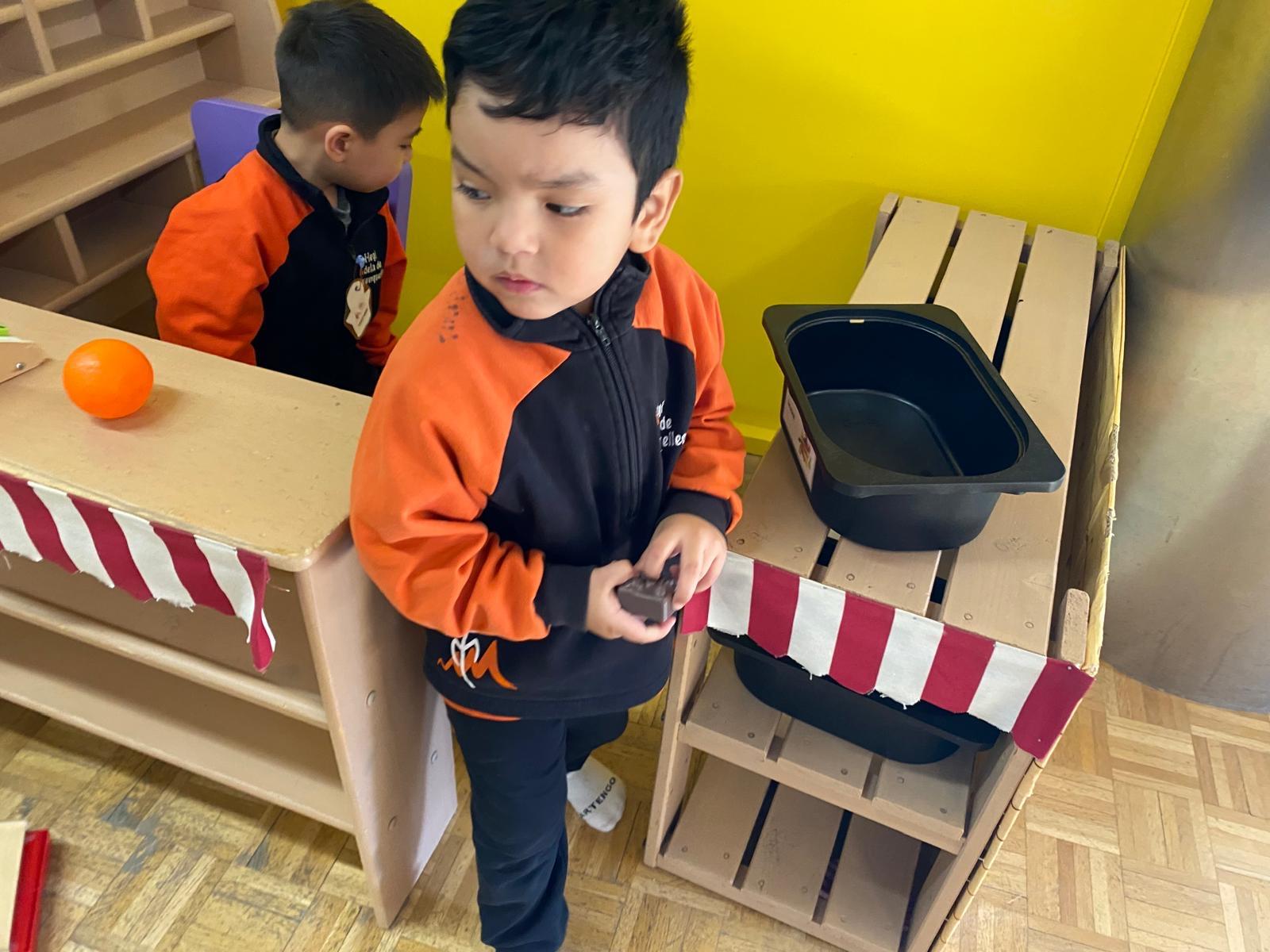 Allà van trobar-hi propostes molt variades. Van poder endinsar-se en el joc simbòlic amb la botigueta, la cuineta, la perruqueria i l’espai de metges. També van jugar a fer veure que treballaven en una oficina amb ordinadors i telèfons. Amb l’ajuda de les disfresses van acabar de donar vida a totes aquestes històries.