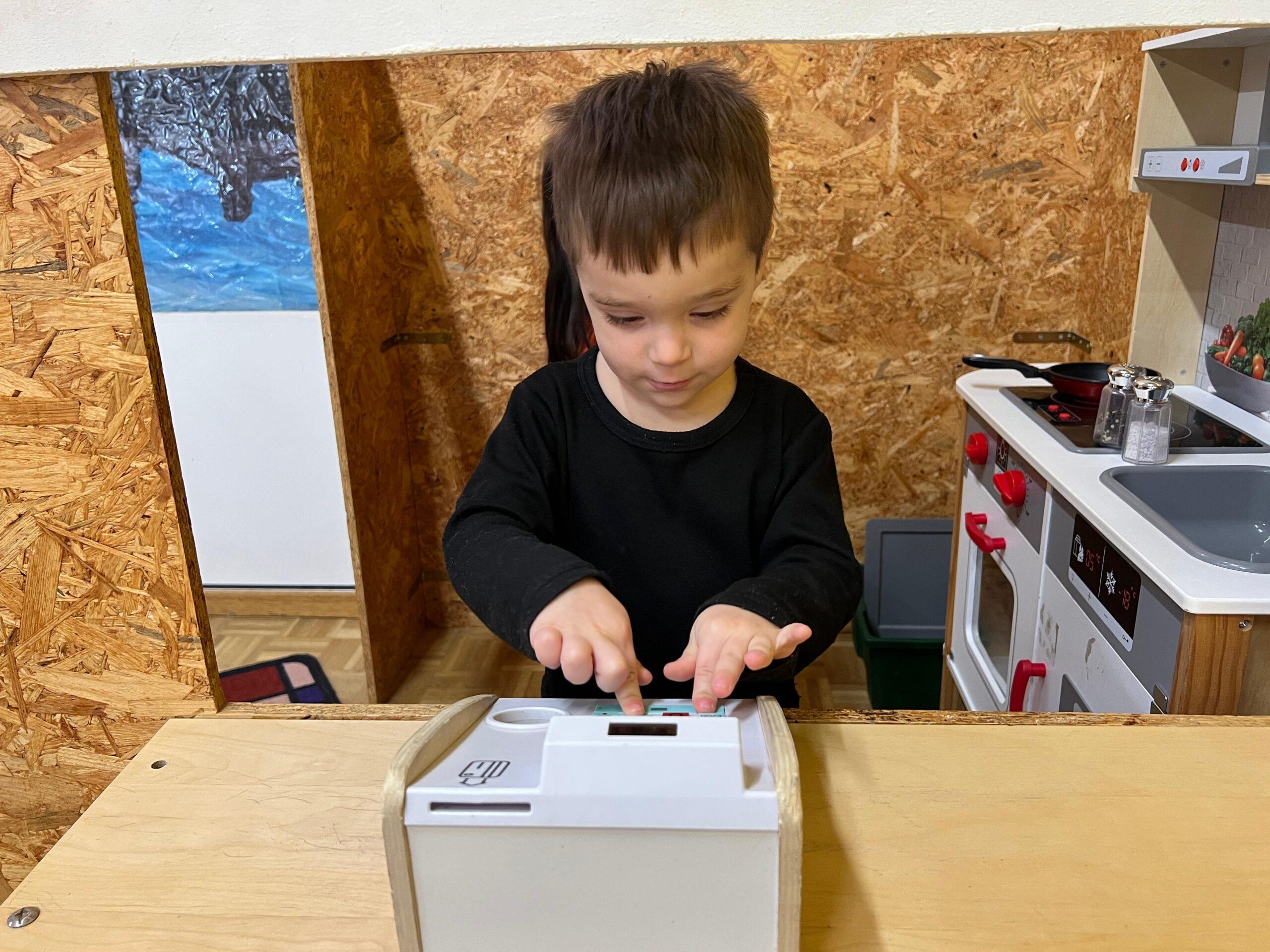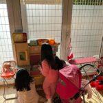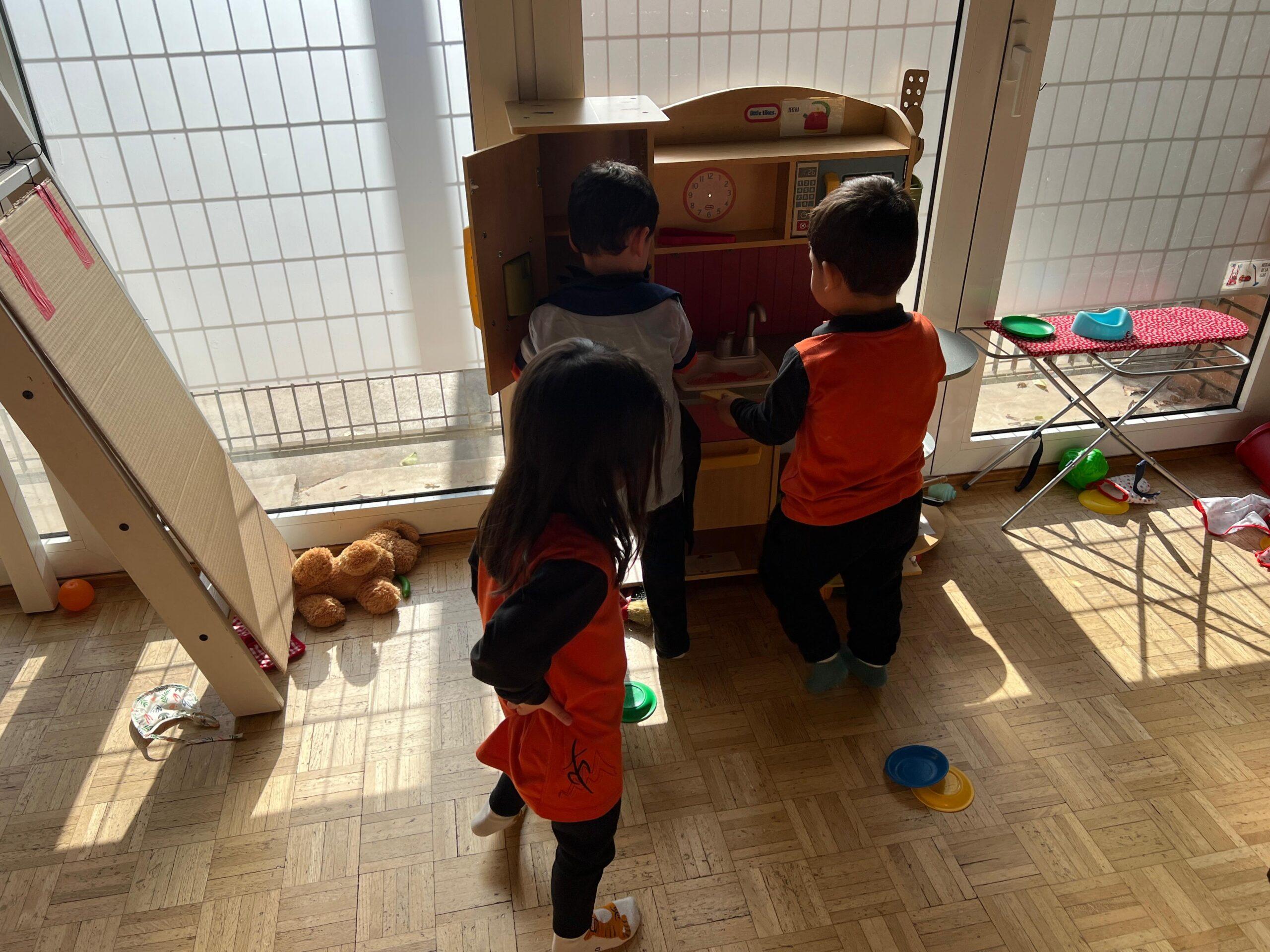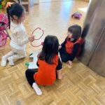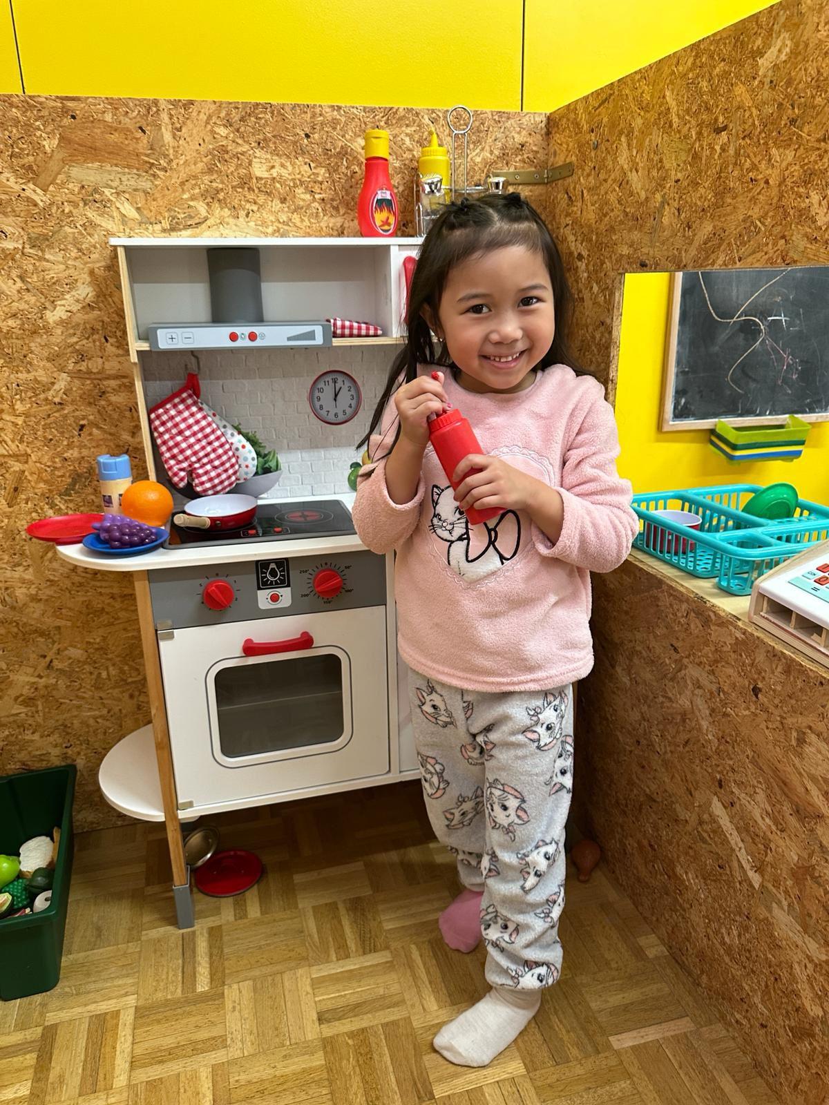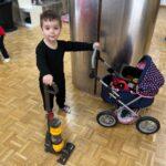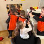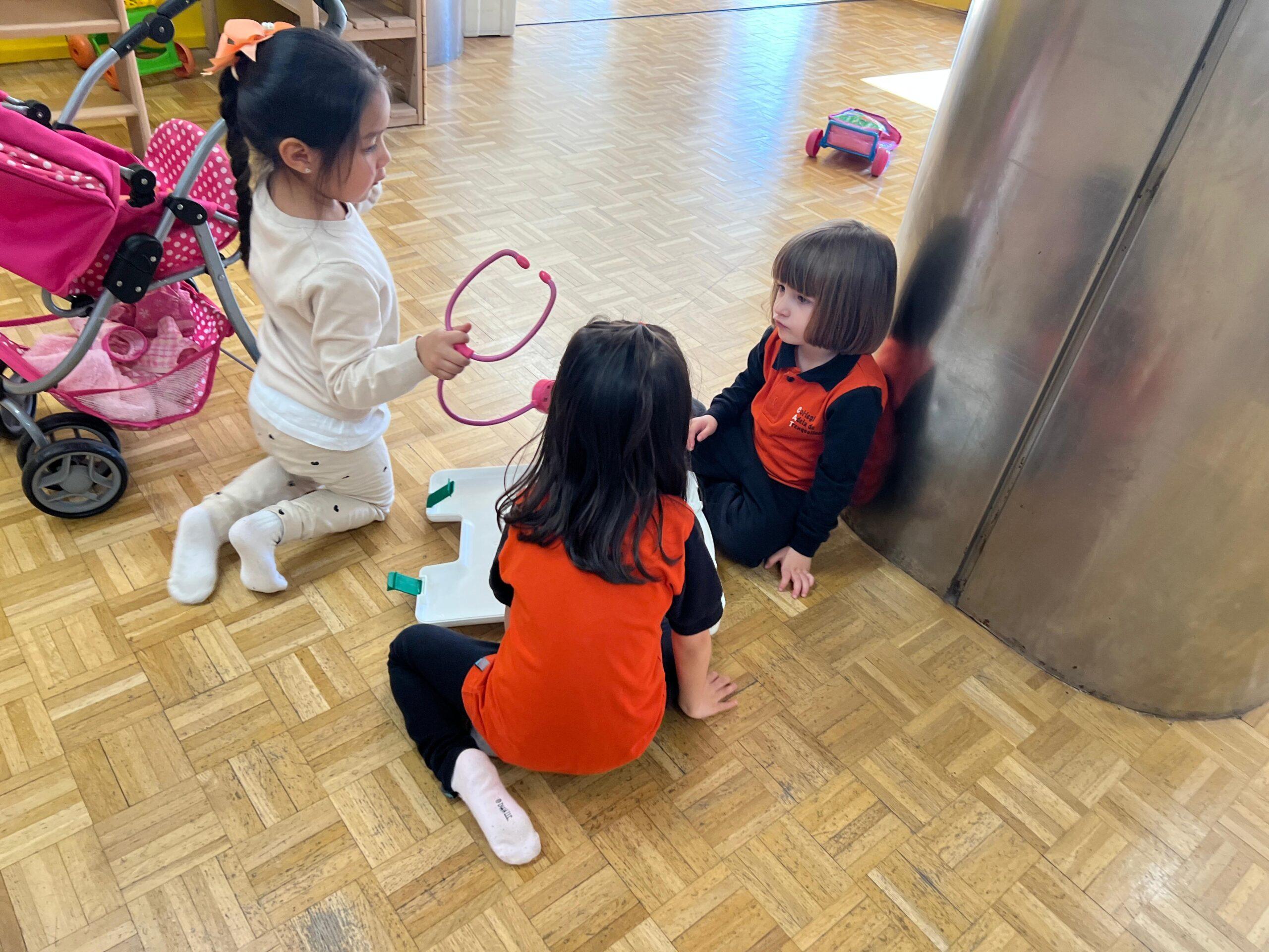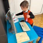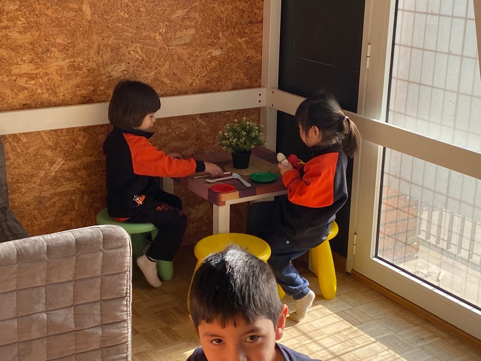 Allà van trobar-hi propostes molt variades. Van poder endinsar-se en el joc simbòlic amb la botigueta, la cuineta, la perruqueria i l’espai de metges. També van jugar a fer veure que treballaven en una oficina amb ordinadors i telèfons. Amb l’ajuda de les disfresses van acabar de donar vida a totes aquestes històries.
