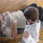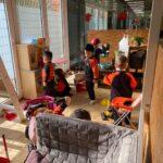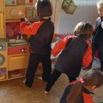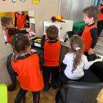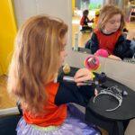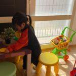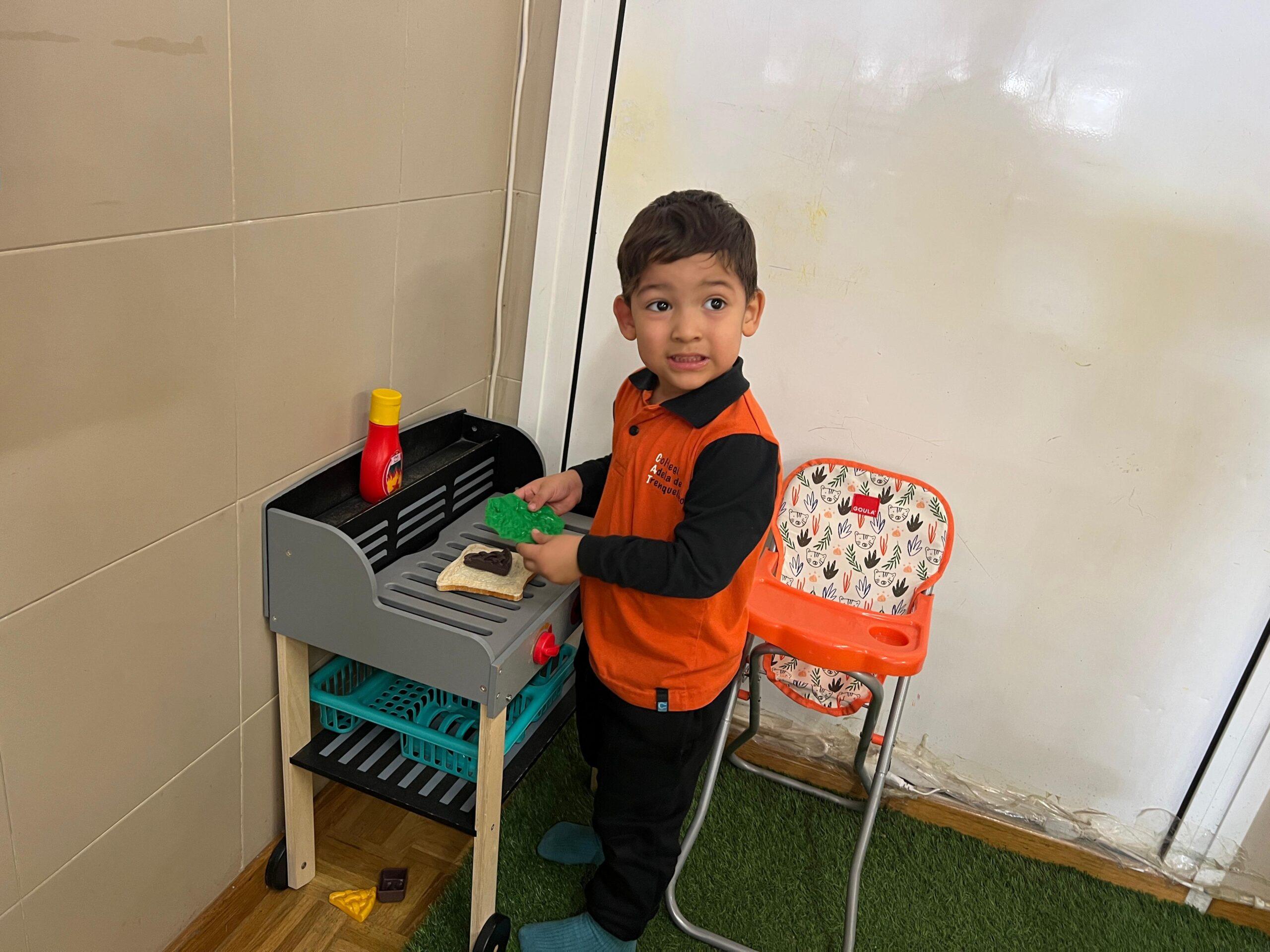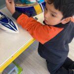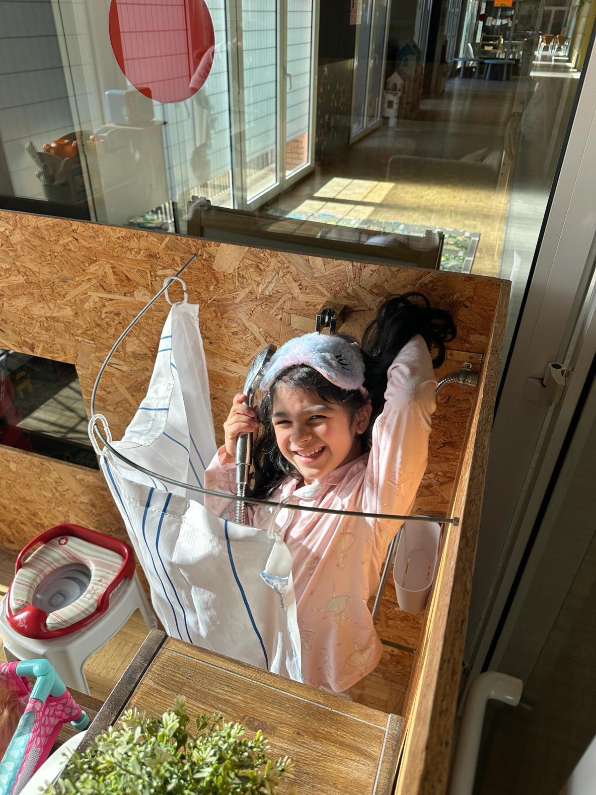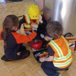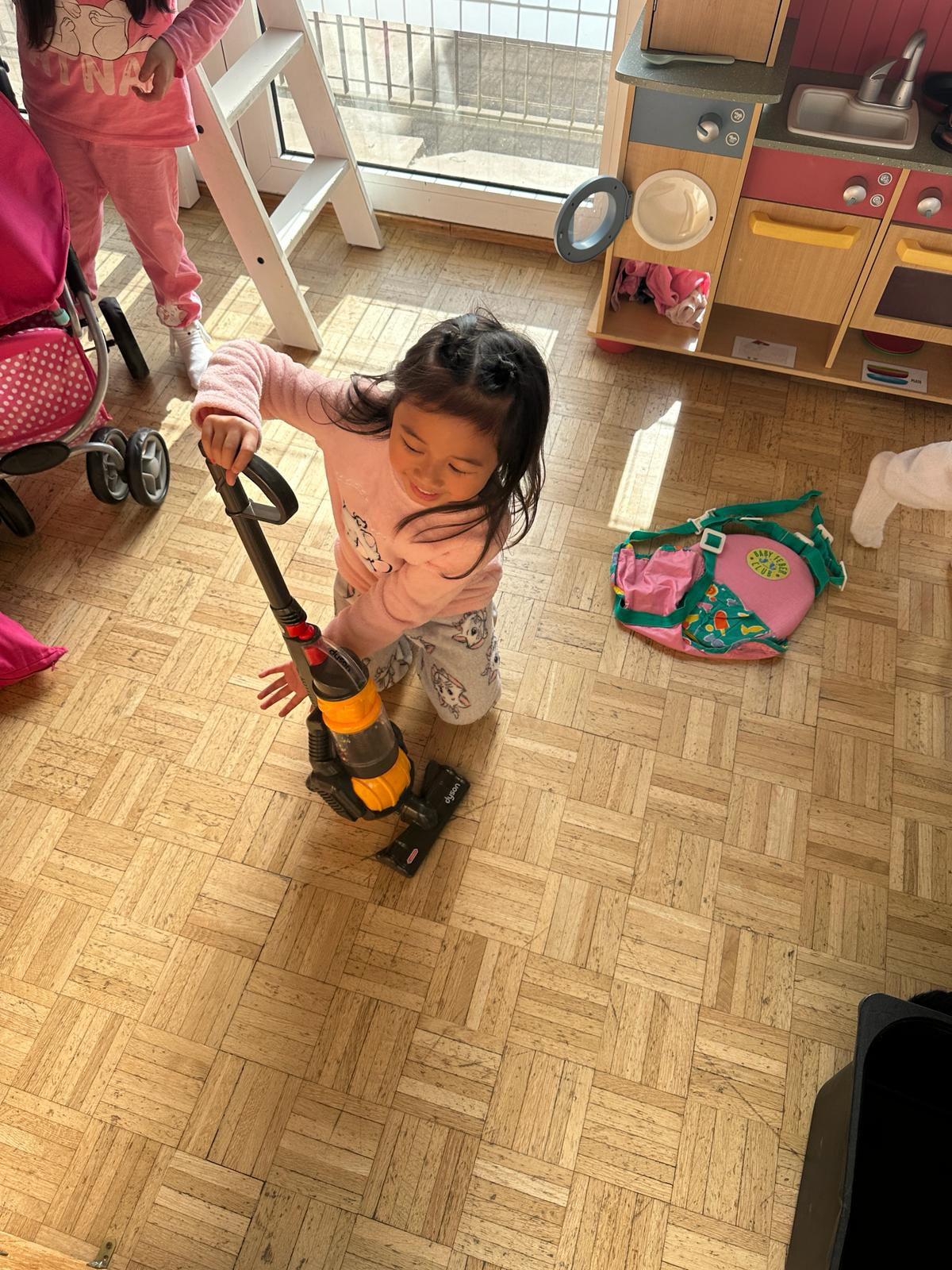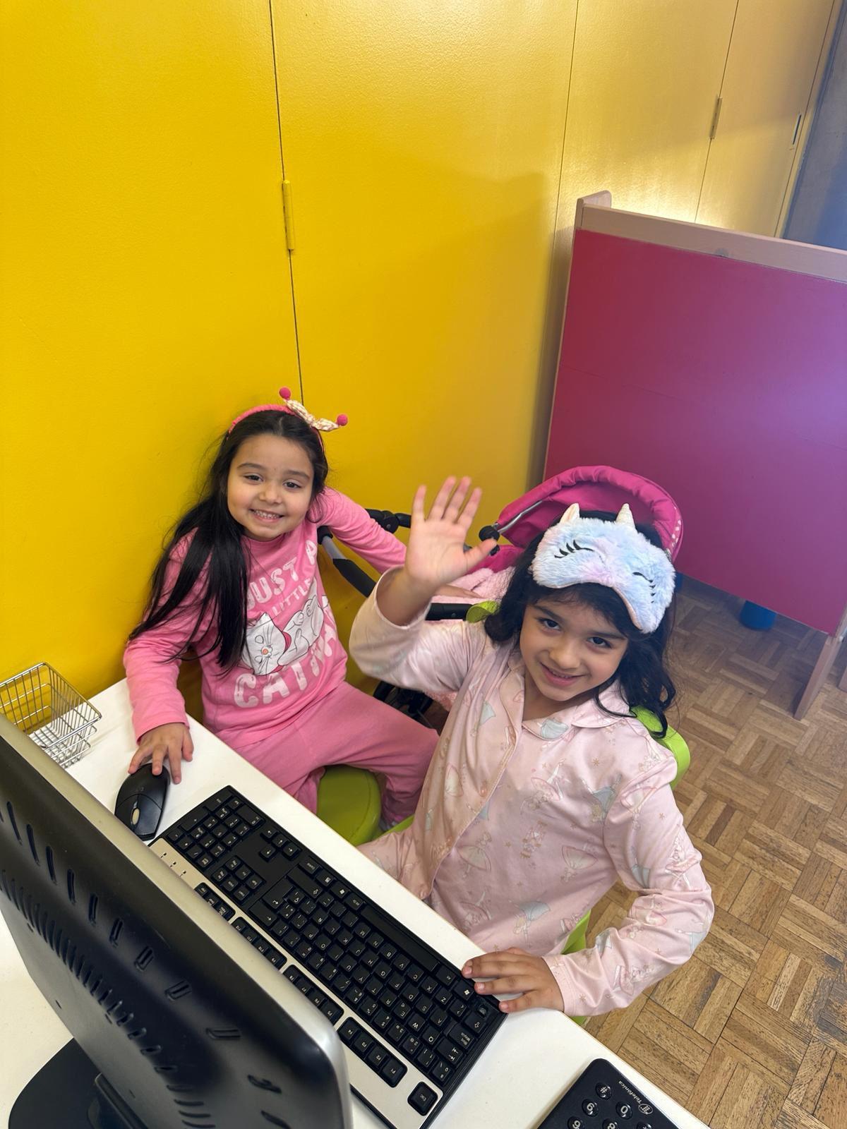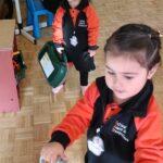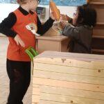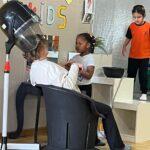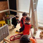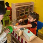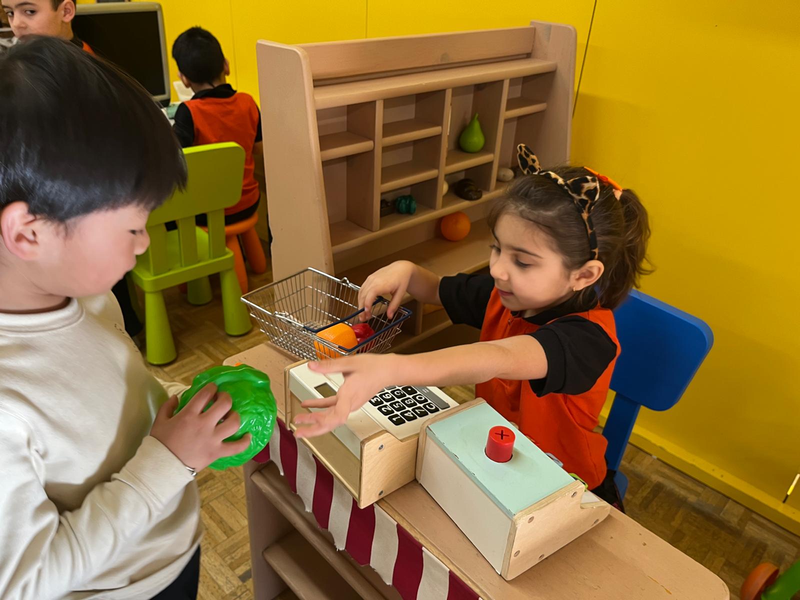 Allà van trobar-hi propostes molt variades. Van poder endinsar-se en el joc simbòlic amb la botigueta, la cuineta, la perruqueria i l’espai de metges. També van jugar a fer veure que treballaven en una oficina amb ordinadors i telèfons. Amb l’ajuda de les disfresses van acabar de donar vida a totes aquestes històries.