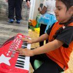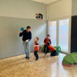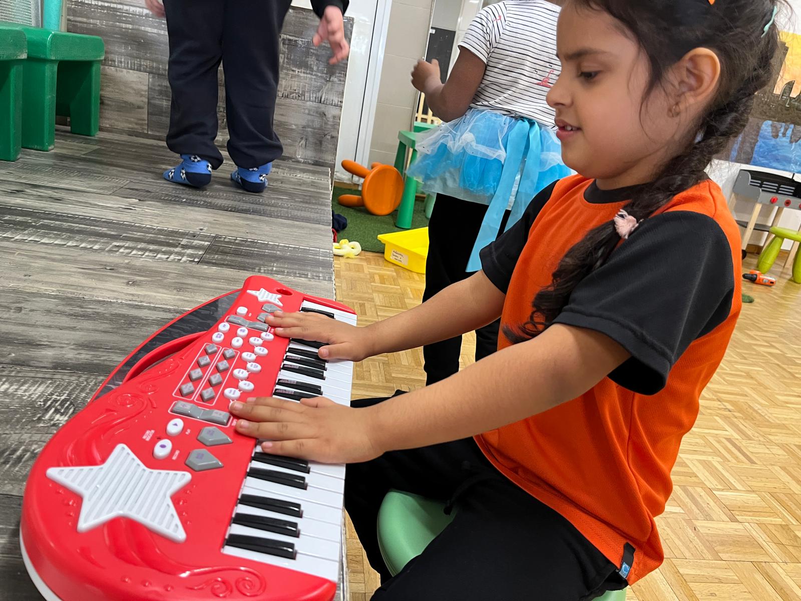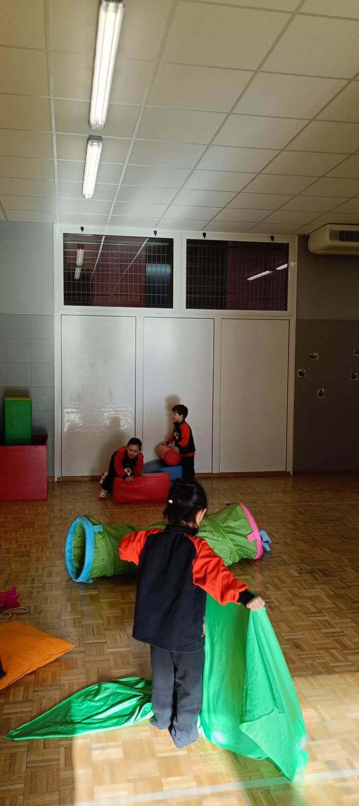 Els qui tenien més ganes de moure’s van gaudir del material de psicomotricitat i de l’espai per jugar a bàsquet. L’escenari i els instruments van donar peu a petits concerts improvisats.