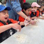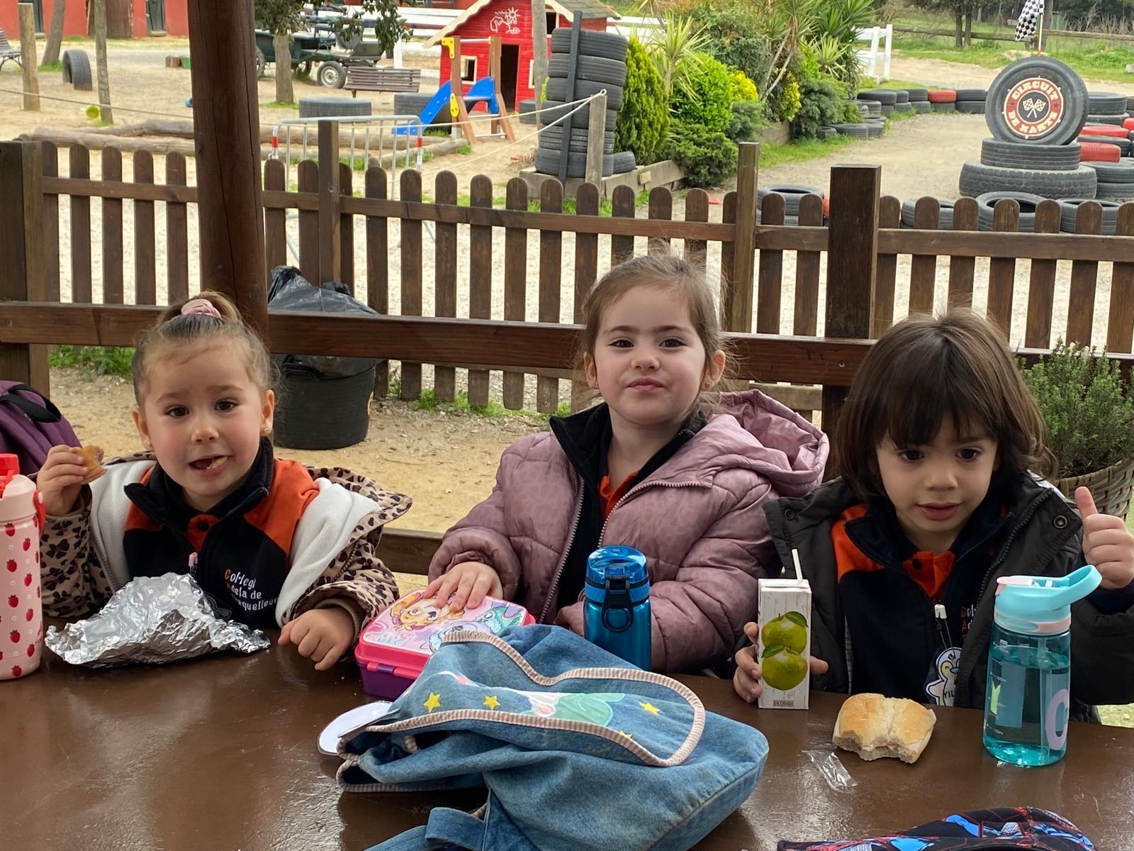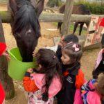 Van poder veure i tocar els animals, i cada curs va fer una activitat diferent: I3 va muntar a poni, I4 va fer bosses d’olors i I5 va fer pa amb les seves pròpies mans!
